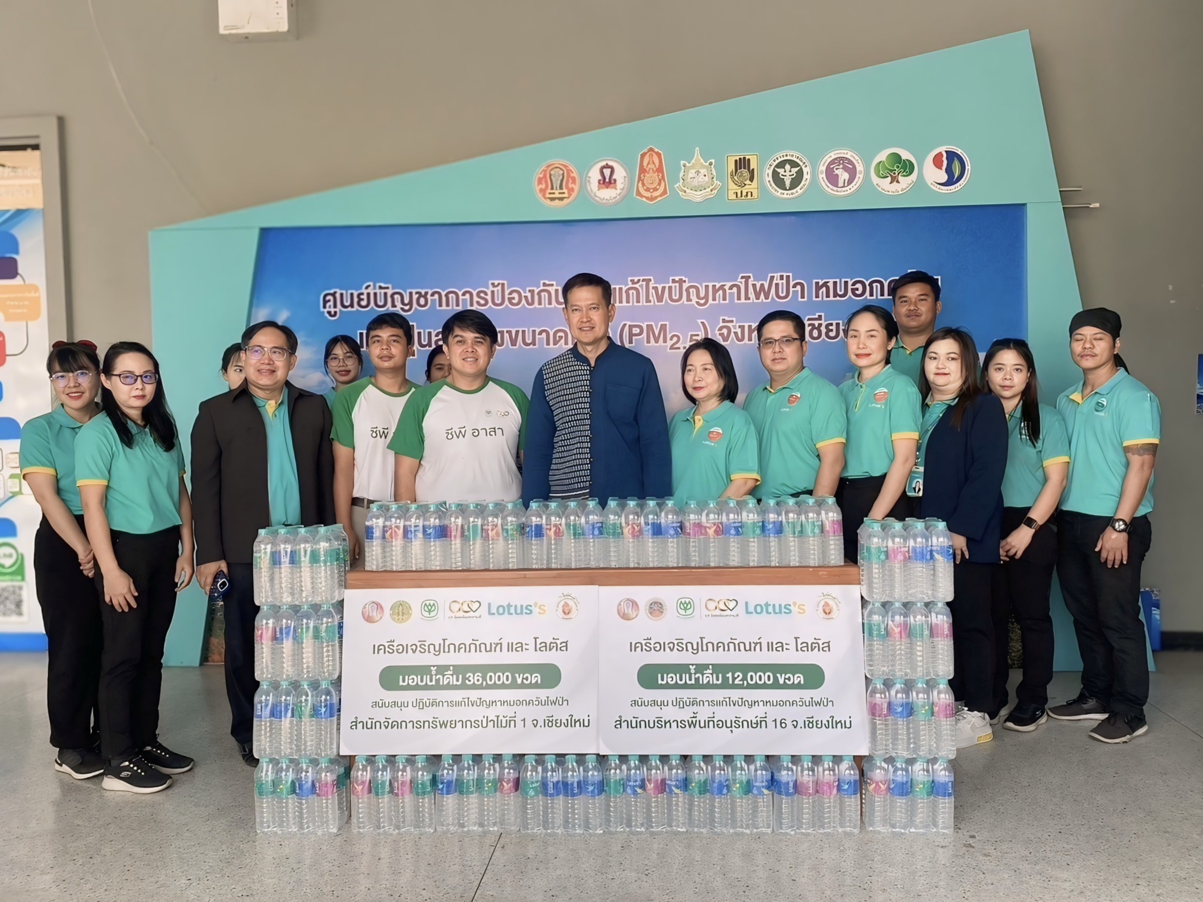 นายสัมพันธ์ พุฒด้วง ผู้แทนผู้อำนวยการสำนักจัดการทรัพยากรป่าไม้ ที่ 1 (เชียงใหม่) และ นายสมนึก ท้าวพา ผู้แทนผู้อำนวยการสำนักบริหารพื้นที่อนุรักษ์ที่ 16 (เชียงใหม่) กล่าวว่า “ปัญหาหมอกควันไฟป่าพื้นที่จังหวัดเชียงใหม่ และจังหวัดใกล้เคียง ถือเป็นยุทธศาสตร์ที่ผู้บริหารกรมป่าไม้และกรมอุทยานแห่งชาติ สัตว์ป่าและพันธุ์พืช ให้ความสำคัญและสั่งการให้ดำเนินการอย่างเร่งด่วน โดยปัจจุบันเจ้าหน้าที่ชุดปฏิบัติการดับไฟป่า ยังคงปฏิบัติการป้องกันและดับไฟป่าในพื้นที่อย่างต่อเนื่อง” พร้อมทั้งได้กล่าวขอบคุณเครือเจริญโภคภัณฑ์และโลตัส ที่ให้ความสำคัญและมีส่วนสร้างกำลังใจให้กับเจ้าหน้าที่ในช่วงสถานการณ์วิกฤติในครั้งนี้ โดยหลังจากนี้จะทำการกระจายน้ำดื่มให้แก่เจ้าหน้าที่ชุดปฏิบัติการที่ประจำในพื้นที่ต่างๆ ต่อไป