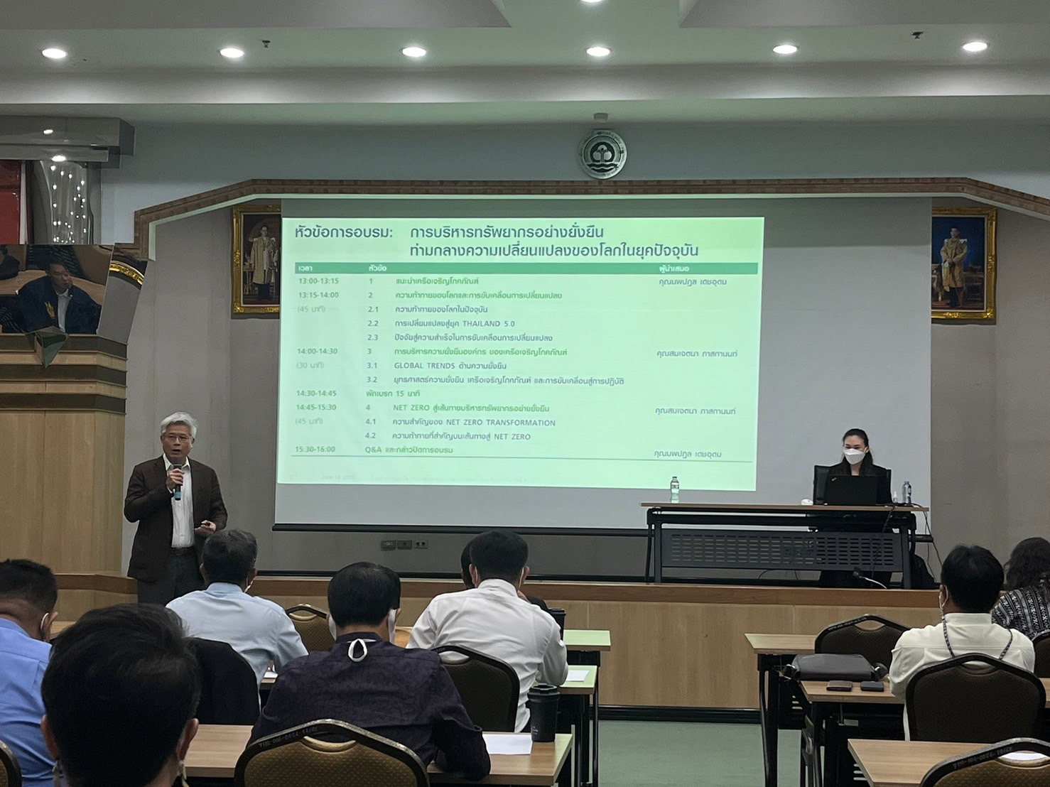 เมื่อเร็ว ๆนี้ คุณนพปฎล เดชอุดม ประธานคณะผู้บริหารด้านความยั่งยืนองค์กร เครือเจริญโภคภัณฑ์ พร้อมด้วยคุณสมเจตนา ภาสกานนท์ ผู้อำนวยการด้านพัฒนาความยั่งยืน และทีมงานด้านพัฒนาความยั่งยืน สำนักบริหารความยั่งยืน ธรรมาภิบาลและสื่อสารองค์กร ร่วมเป็นวิทยากรในหลักสูตร นักบริหารระดับสูงกระทรวงทรัพยากรธรรมชาติและสิ่งแวดล้อม (นบส.ทส.) รุ่นที่ 1 ในหัวข้อ “การบริหารทรัพยากรอย่างยั่งยืนท่ามกลางความเปลี่ยนแปลงของโลกในยุคปัจจุบัน”