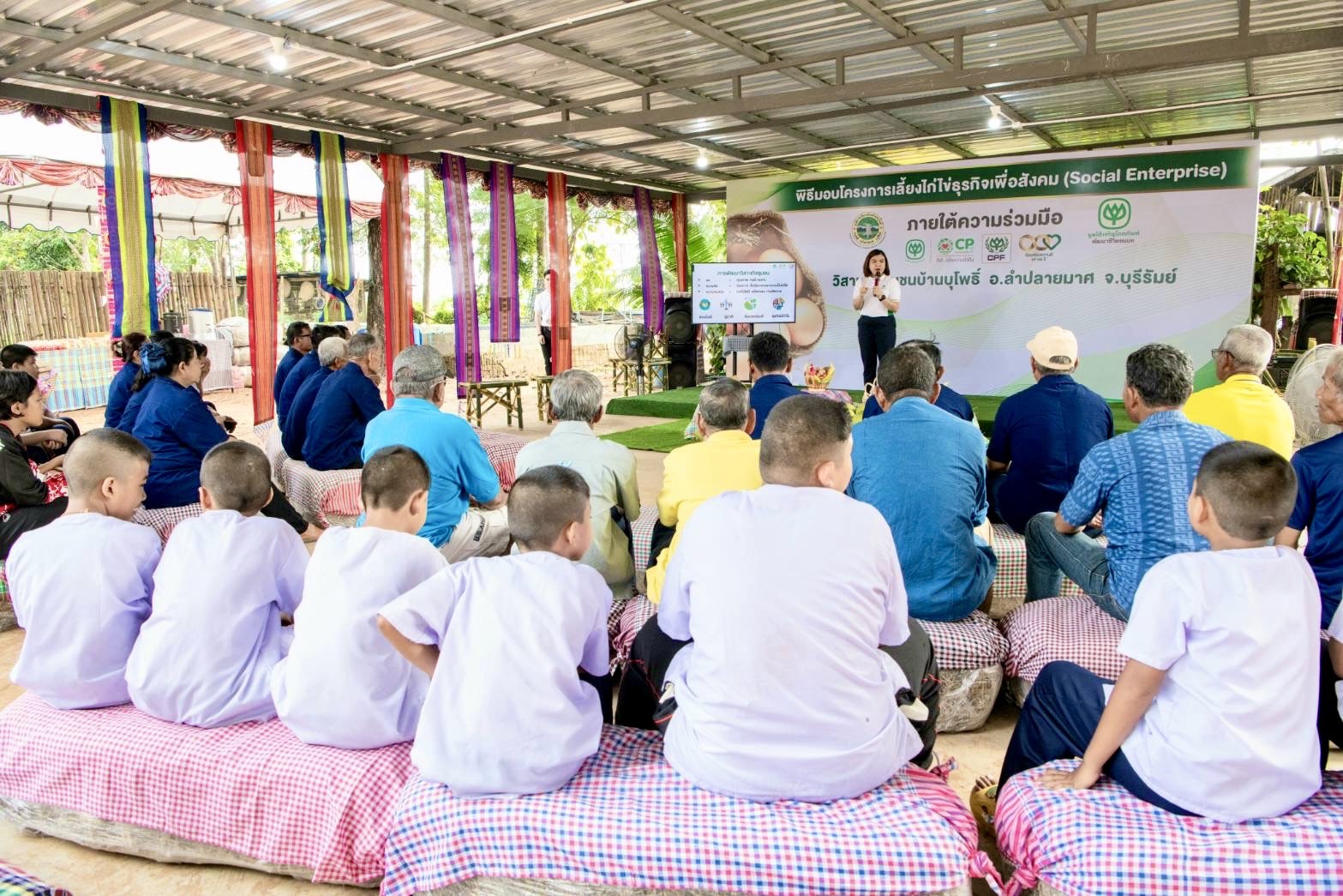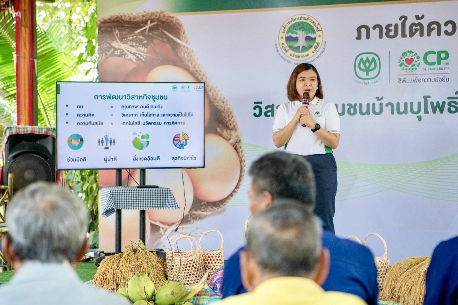 เมื่อเร็ว ๆ นี้ เครือซีพี และ มูลนิธิเจริญโภคภัณฑ์พัฒนาชีวิตชนบท จัดอบรมความรู้ให้กับวิสาหกิจชุมชนบ้านบุโพธิ์โมเดล ในโครงการเกษตรผสมผสานตามแนวพระราชดำริ จ.บุรีรัมย์ เพื่อพัฒนาศักยภาพเกษตรกรและยกระดับสู่วิสาหกิจชุมชนเพื่อสังคมต้นแบบอย่างยั่งยืน ณ โรงเรือนเลี้ยงไก่ไข่วิสาหกิจชุมชนบ้านบุโพธิ์โมเดล อ.ลำปลายมาศ จ.บุรีรัมย์