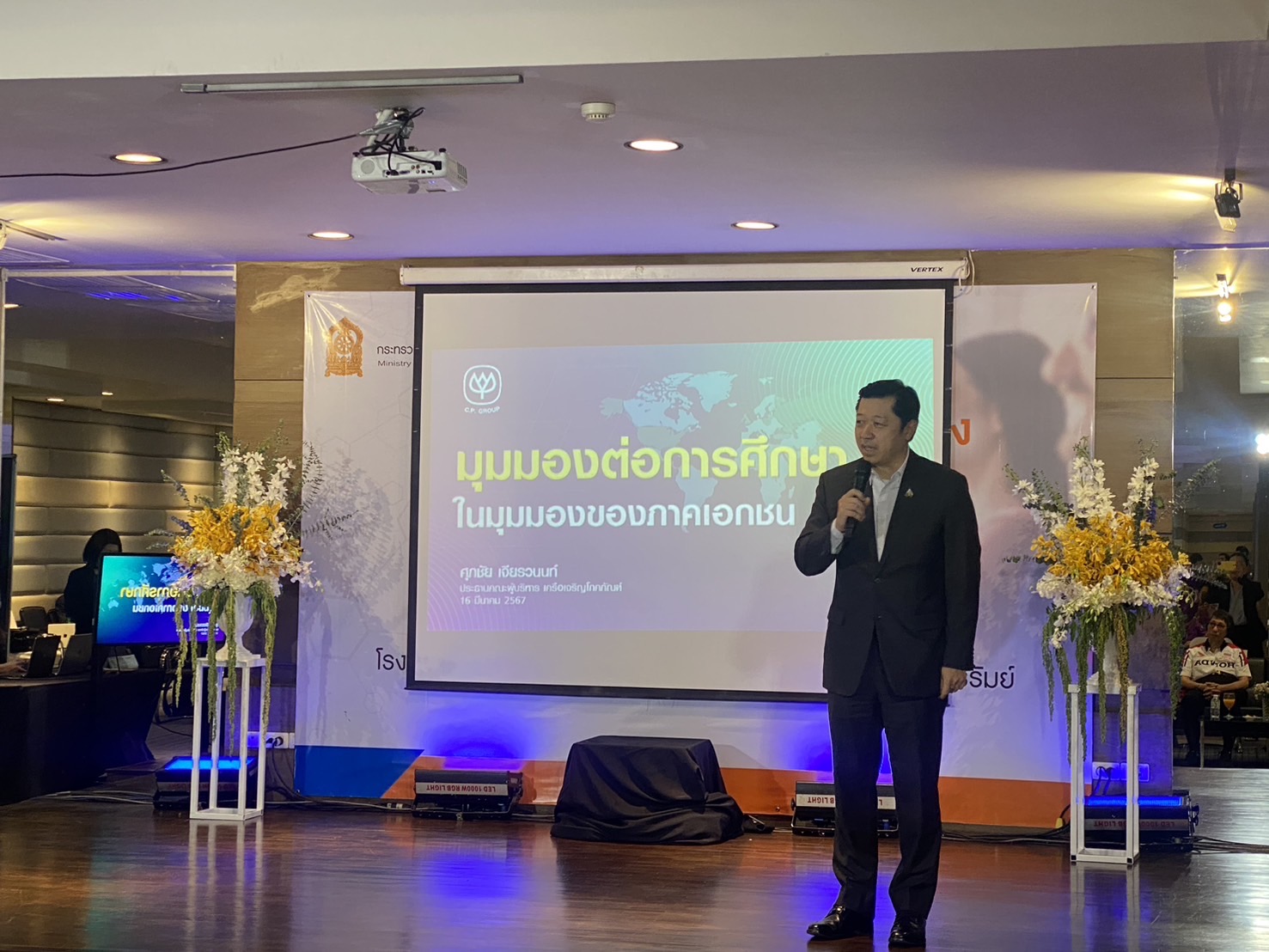 16 มีนาคม 2567 กระทรวงการศึกษาธิการ จัดโครงการสัมมนาผู้บริหารระดับสูงของกระทรวงศึกษาธิการ ระหว่างวันที่ 15 – 17 มีนาคม 2567 ณ จังหวัดบุรีรัมย์ ซึ่งจัดขึ้น โดยมี พลตำรวจเอก เพิ่มพูน ชิดชอบ รัฐมนตรีว่าการกระทรวงศึกษาธิการ เป็นประธานเปิดสัมมนาครั้งสำคัญนี้ เพื่อพัฒนาผู้บริหารระดับสูงของกระทรวงศึกษาธิการ และองค์กรในกำกับ สามารถขับเคลื่อนนโยบายการศึกษา กำหนดทิศทางแนวทางการทำงาน แลกเปลี่ยนความคิดเห็นร่วมกัน มีการบูรณาการและสร้างภาคีเครือข่ายทางการบริหารจัดการศึกษาของกระทรวงศึกษาธิการ ตามนโยบาย “เรียนดี มีความสุข” ภายใต้แนวทางการทำงาน “จับมือไว้ แล้วไปด้วยกัน” ในการนี้ คุณศุภชัย เจียรวนนท์ ประธานคณะผู้บริหาร เครือเจริญโภคภัณฑ์ ได้รับเชิญให้นำเสนอมุมมองด้านการศึกษาในฐานะภาคเอกชน นอกจากนี้ยังมีตัวแทนองค์กรเอกชนร่วมเสนอแนวคิดในหัวข้อการมีส่วนร่วมในการจัดการศึกษาของภาคเอกชนอีกด้วย ได้แก่ คุณศุภกร รัตนวราหะ รองกรรมการผู้จัดการใหญ่ บริษัท โตโยต้า มอเตอร์ ประเทศไทย จำกัด คุณอุกฤษณ์ ภาควิวรรธ รองผู้จัดการใหญ่ ด้านวางแผนการตลาด บริษัท ไทยยามาฮ่ามอเตอร์ จำกัด คุณอารักษ์ พรประภาประธาน บริษัท ไทยฮอนด้า จำกัด ทั้งนี้เพื่อเป็นการเสริมสร้าง Mindset สำหรับนักบริหาร การเสริมสร้างความรู้เพื่อการปรับเปลี่ยนเป็นองค์กรดิจิทัลของกระทรวงศึกษาธิการ (MoE Digital Transformation)โดยมีนักบริหารระดับสูงของก.ศึกษาฯและองค์กรในกำกับ รวมทั้งสิ้น 75 คนร่วมสัมมนา