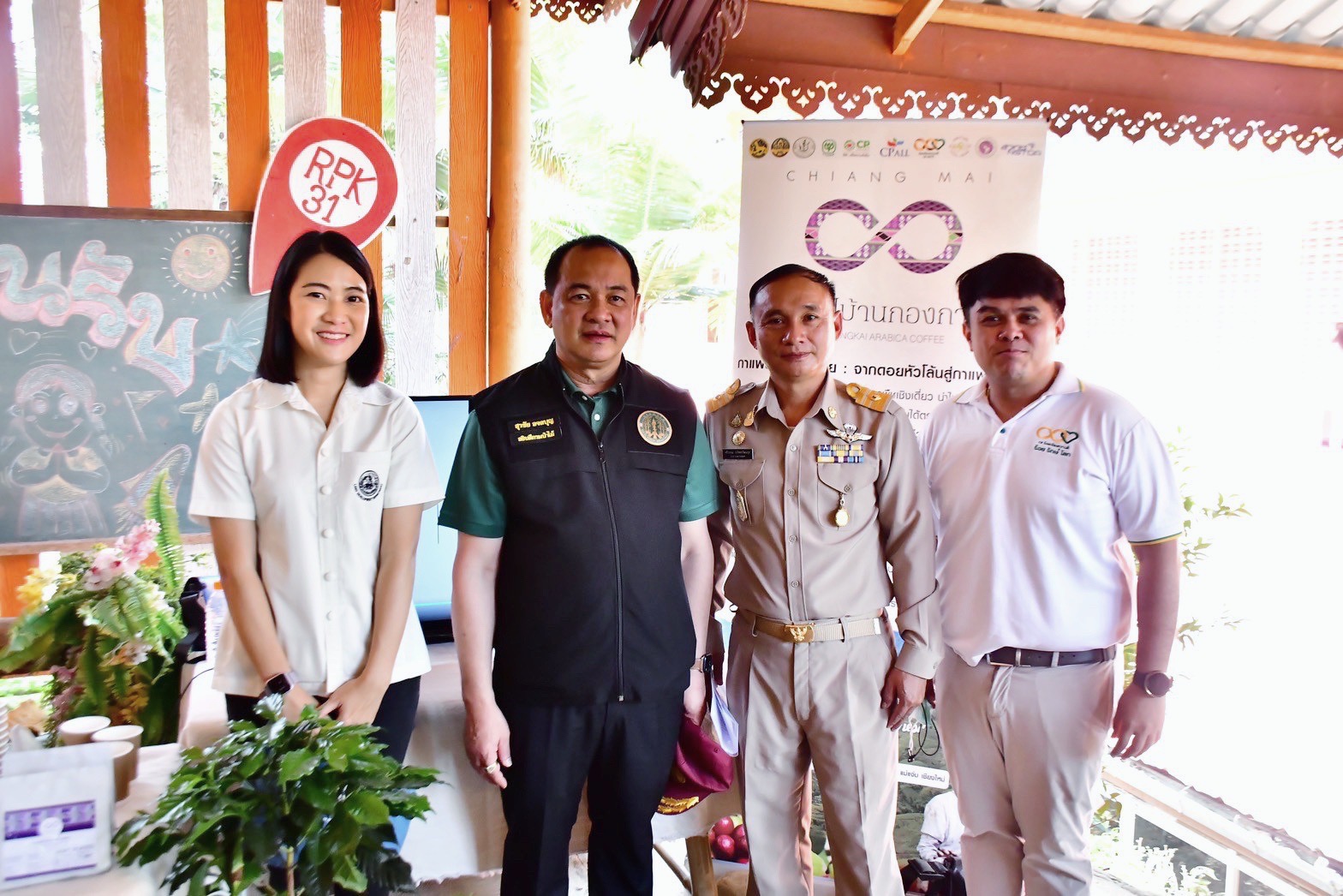 นอกจากนี้ เครือซีพียังเล็งเห็นว่า “กาแฟ” ถือเป็นพืชเศรษฐกิจมูลค่าสูงที่เป็นที่ต้องการของตลาด จึงเข้ามาส่งเสริมตลอดห่วงโซ่อุปทาน ตั้งแต่ต้นน้ำ – ปลายน้ำ ตลอดจนยกระดับการพัฒนาสู่ธุรกิจเพื่อสังคม หรือ Social Enterprise ในด้านองค์ความรู้ การสนับสนุนโรงแปรรูปกาแฟเพื่อเพิ่มมูลค่าผลผลิตกาแฟ ตลอดจนตลาดในการรับซื้อผลผลิตเมล็ดกาแฟคั่ว ภายใต้กลุ่มวิสาหกิจชุมชนวิสาหกิจชุมชนเกษตรกรผู้ปลูกกาแฟบ้านกองกาย ในแบรนด์ “กาแฟบ้านกองกาย” นอกจากนี้ ยังสนับสนุนให้ปลูกไม้ผลเมืองหนาวควบคู่กัน เพื่อเพิ่มและมีรายได้ตลอดทั้งปี สร้างชุมชนเข้มแข็ง พร้อมอนุรักษ์ทรัพยากรไปพร้อมกัน นำไปสู่การเปลี่ยนแปลงเพื่อคนรุ่นหลังอย่างยั่งยืนต่อไป