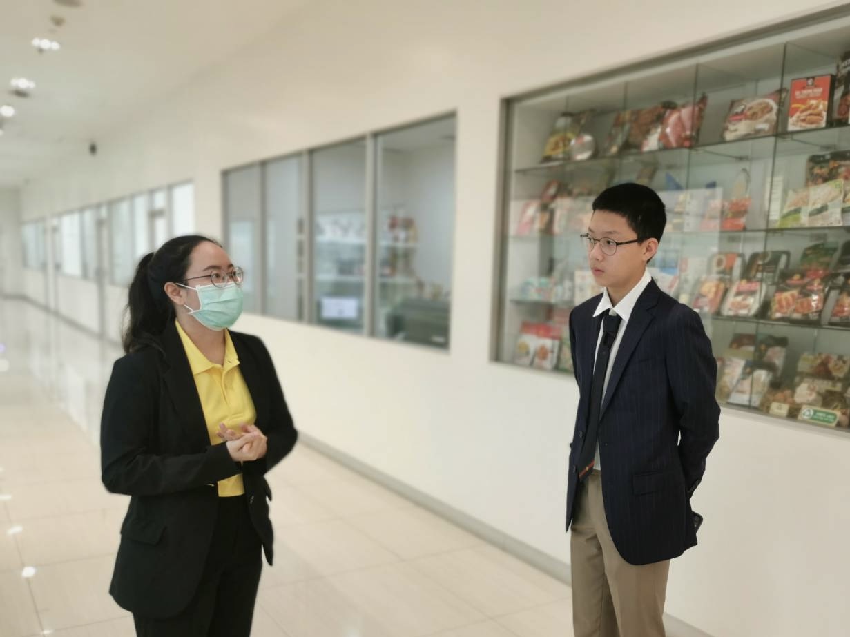 “การได้เข้ามาฝึกงานที่นี่เหมือนได้เข้ามาทำงานจริงๆ ทำให้ผมเห็นการทำงานยั่งยืนที่เป็นรูปธรรมมากขึ้น ทุกคนที่ผมได้ร่วมงานต่างก็มีน้ำใจช่วยเหลือผมในทุกเรื่อง ไม่ว่าจะมีคำถามแบบไหนพวกพี่เขาก็พร้อมจะตอบเสมอ ทำให้ผมรู้สึกผ่อนคลายและสนุกไปกับการเรียนรู้อย่างเต็มที่ครับ” แม้ว่าจะใช้เวลาเพียง 2 สัปดาห์ในการฝึกงาน แต่แอนดรูวก็มุ่งมั่นจะนำความรู้ที่ได้ไปใช้กับโครงการส่วนตัวที่ทำไว้ก่อนหน้านี้ โครงการสนับสนุนด้านอาหารเด็กในชุมชนต่างจังหวัดให้เขามีอาหารที่มีรสชาติดี มีคุณภาพและยั่งยืน “ผมตั้งใจไว้จะเอาความรู้ที่ได้ไปใช้จริง ผมว่าจะทำกะเพรานะ เพราะที่ไปเรียนรู้มาจากโรงงานซีพีแรมเขาทำอร่อยมาก ผมอยากให้เด็กๆ ได้กินของอร่อยแบบนี้บ้าง” เด็กหนุ่มกล่าวพร้อมรอยยิ้ม