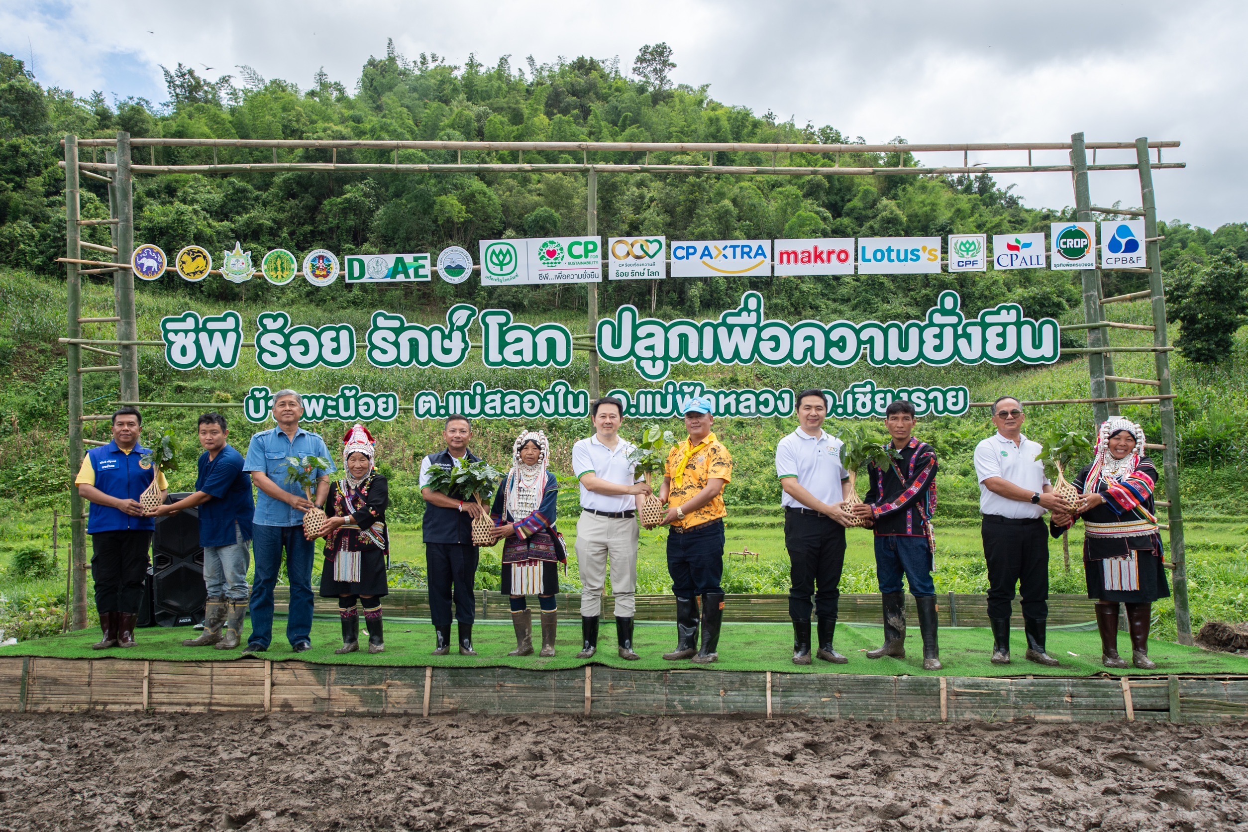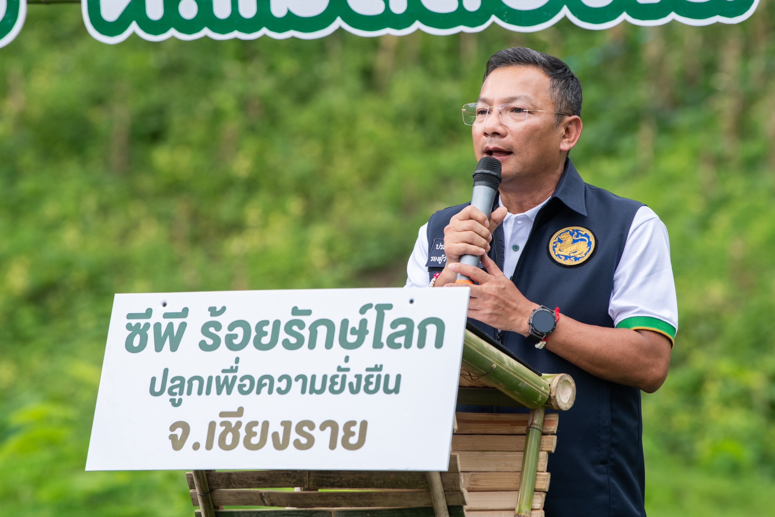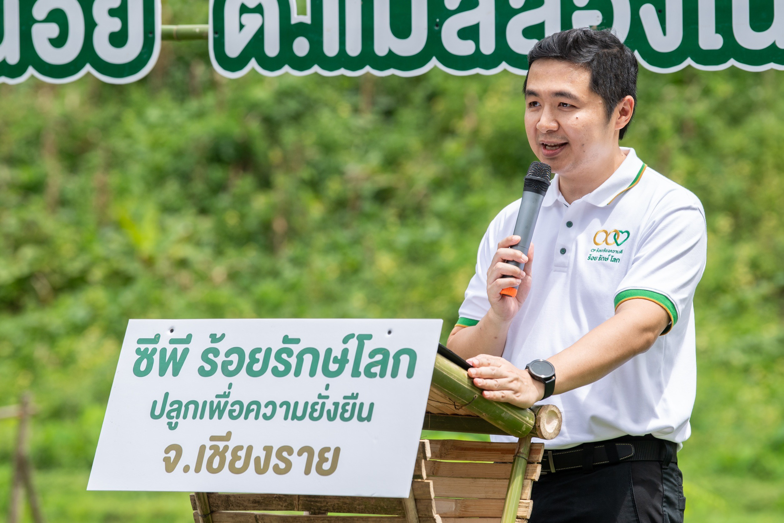 ทางด้าน คุณจอมกิตติ ศิริกุล รองกรรมการผู้จัดการใหญ่อาวุโส ด้านพัฒนาความยั่งยืนภาครัฐ และกิจการสัมพันธ์ เครือเจริญโภคภัณฑ์ เปิดเผยว่า เครือซีพี มีเป้าหมายด้านความยั่งยืนที่จะปลูกต้นไม้ เพิ่มพื้นที่สีเขียว ทั้งในกรุงเทพมหานคร และในพื้นที่ต่างจังหวัด เพื่อเป็นส่วนหนึ่งในการช่วยลดผลกระทบจากการเปลี่ยนแปลงสภาพภูมิอากาศ และบรรเทาปัญหาฝุ่นควัน ขนาดเล็ก PM 2.5 ตามเป้าหมายด้านความยั่งยืนที่จะเป็นองค์กรที่มีความเป็นกลางทางคาร์บอน ในปี 2030 และ Net zero ในปี 2050 ปัจจุบันมีการปลูกต้นไม้ไปแล้วกว่า 11 ล้านต้น โดย “โครงการ ร้อย รักษ์ โลก ปลูกเพื่อความยั่งยืน จ.เชียงราย” ที่จัดขึ้นในวันนี้ ตามนโยบายของ คุณณรงค์ เจียรวนนท์ รองประธานอาวุโส เครือเจริญโภคภัณฑ์ ที่มีเป้าหมายหลัก คือการเพิ่มพื้นที่สีเขียว สร้างสิ่งแวดล้อมที่ดี ทั้งยังมองถึงการพัฒนาอาชีพและชุมชนควบคู่กันจะทำให้เกิดความยั่งยืน โดยผนึกกำลังทุกภาคส่วนส่งเสริมชุมชนปลูก “กาแฟสร้างป่า” ถ่ายทอดองค์ความรู้ เพิ่มช่องทางตลาด เพื่อเป็นทางเลือกด้านอาชีพและสร้างรายได้ นอกจากนี้ ยังมีนโยบายที่ให้ความสำคัญกับการพัฒนาเด็กและเยาวชนที่เป็นอนาคตของชาติ จึงเกิดเป็นโครงการผู้นำเยาวชนรักษ์สิ่งแวดล้อม หรือ SLDP โดยบูรณาการองค์ความรู้และกิจกรรมต่าง ๆ ร่วมกับหน่วยงานภาครัฐ โดยมี เยาวชนต้นแบบ “แอนโทนี ปิยชนม์” ยุวทูต SEAMEO องค์การรัฐมนตรีศึกษาแห่งเอเชียตะวันออกเฉียงใต้ ที่สามารถเป็นบุคคลต้นแบบในโครงการฯ และเป็นกระบอกเสียงที่สำคัญแก่เยาวชนคนอื่นๆ ได้เป็นอย่างดี