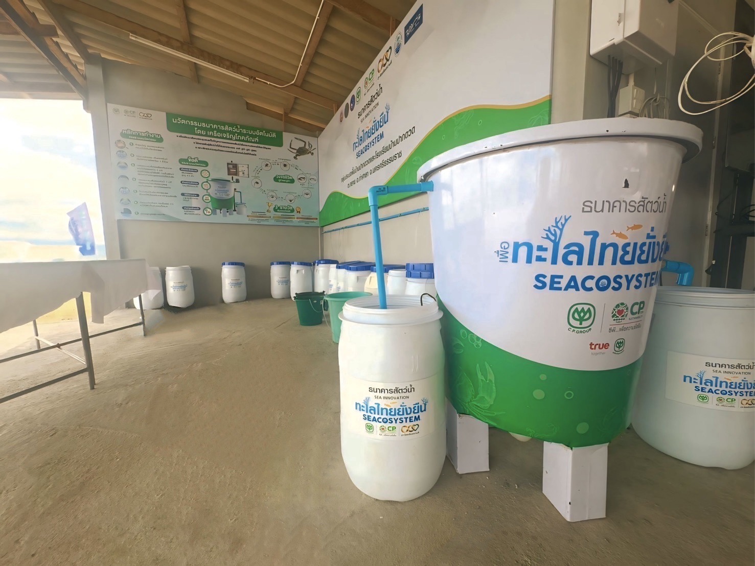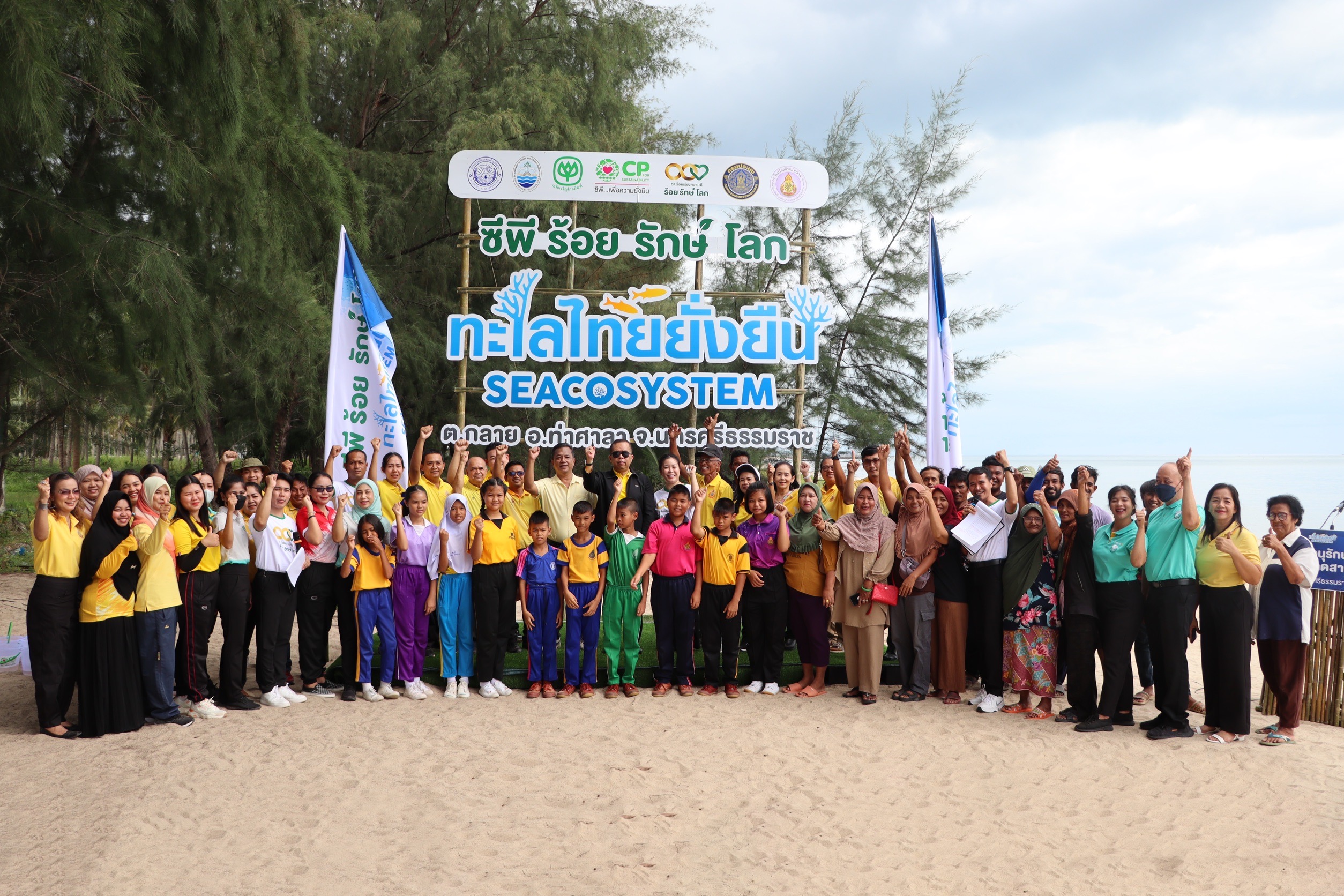 โดย เมื่อเร็วๆนี้ เครือเจริญโภคภัณฑ์ ได้ร่วมกับภาครัฐ ภาคการศึกษา เยาวชน ชุมชนบ้านปากดวด และกลุ่มธุรกิจในเครือฯ บมจ.ซีพี แอ็กซ์ตร้า (CPAXTRA) โลตัส (Lotus’s) ร่วมกันจัดงาน “ซีพี ร้อย รักษ์ โลก ทะเลไทยยั่งยืน SEACOSYSTEM” โดยมี นายไตรรัตน์ ไชยรัตน์ รองผู้ว่าราชการจังหวัดนครศรีธรรมราช ให้เกียรติเป็นประธานเปิด พร้อมด้วยพนักงานซีพีอาสา คณะครู และนักเรียน ร่วมงานกว่า 250 คน และทำกิจกรรมต่างๆ ได้แก่ เก็บขยะและคัดแยกขยะริมชายหาด เนื่องในวัน วันอนุรักษ์ชายฝั่งสากล (International Coastal Cleanup Day) เพื่อลดปริมาณขยะ และปลูกฝังเยาวชนให้เห็นความสำคัญของการทิ้งขยะให้ถูกที่ ตระหนักถึงปัญหาขยะที่ทำลายระบบนิเวศน์และทรัพยากรธรรมชาติ ปลูกต้นไม้เพิ่มพื้นที่สีเขียวริมชายหาด พร้อมทั้งร่วมกันปล่อยลูกพันธุ์สัตว์น้ำ ซูเอี๊ยะ กว่า 10 ล้านตัว เพื่อเพิ่มปริมาณสัตว์น้ำในทะเล นอกจากนี้ เครือเจริญโภคภัณฑ์ ยังเปิดศูนย์เพาะพันธุ์สัตว์น้ำ ด้วยการใช้นวัตกรรม “ธนาคารสัตว์น้ำ” ขึ้น เพื่อสนับสนุนความตั้งใจของชุมชนที่จะ อนุรักษ์และฟื้นฟู ทรัพยากรทางทะเล พร้อมมีกิจกรรมขัดไข่ปู เพื่อให้เด็กๆได้เรียนรู้การอนุรักษ์และการขยายพันธุ์ทรัพยากรสัตว์น้ำในทะเล ยกศักยภาพของความเป็นอยู่ของชุมชนให้ดียิ่งขึ้น ณ บ้านปากดวด ต.กลาย อ.ท่าศาลา จ.นครศรีธรรมราช