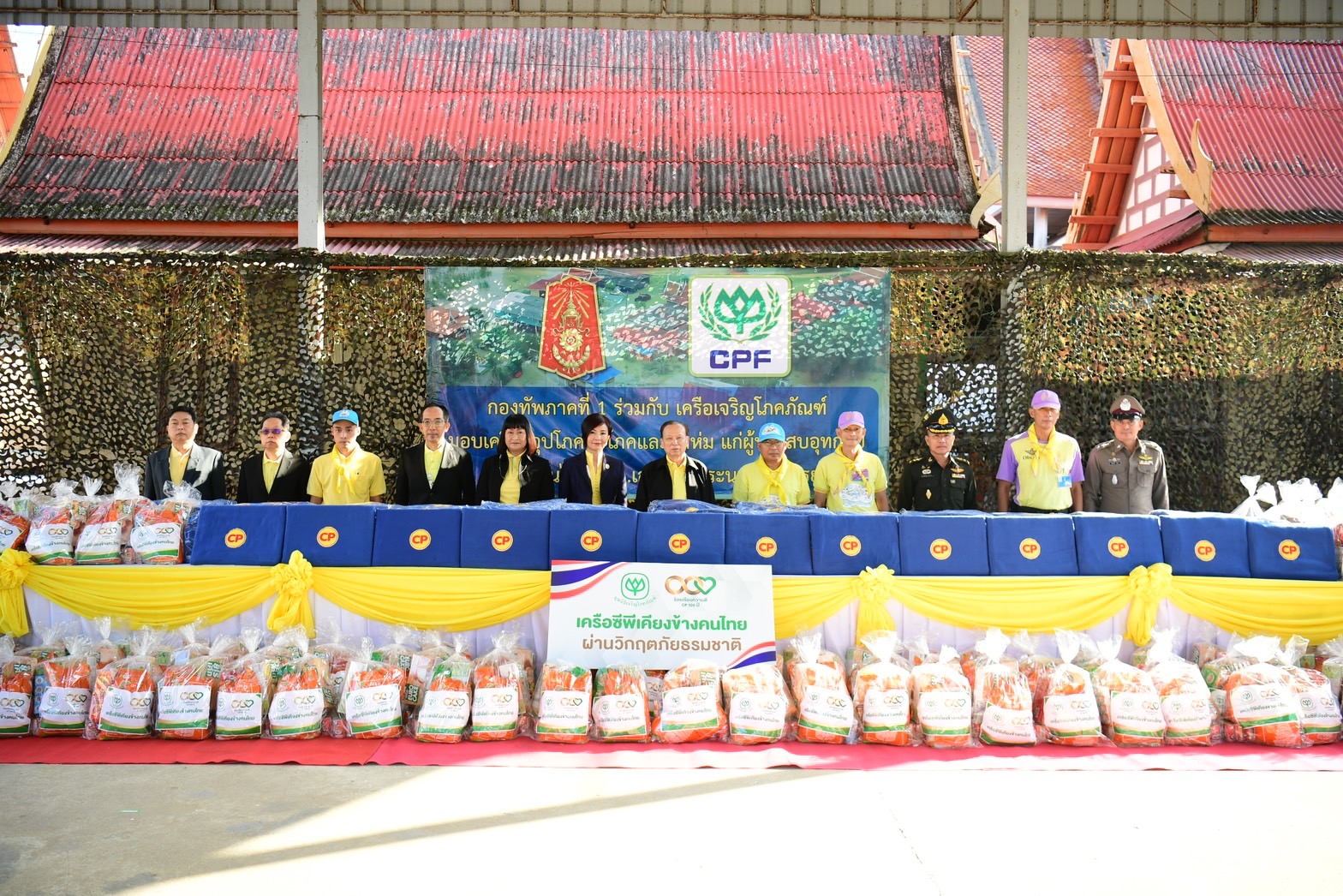 คุณพงษ์ วิเศษไพฑูรย์ รองประธานอาวุโส เครือซีพี ในฐานะผู้แทนเครือซีพี กล่าวว่า เครือซีพีได้ติดตามสถานการณ์น้ำท่วมในช่วงที่ผ่านมา และมีความห่วงใยในความเดือดร้อนของพี่น้องประชาชนที่ได้รับผลกระทบจากเหตุการณ์อุทกภัยที่ปีนี้นับว่าค่อนข้างส่งผลกระทบอย่างหนักและกินระยะเวลานานหลายเดือน และต่อเนื่องกับภัยหนาวที่ส่งผลกระทบต่อประชาชนที่พึ่งฟื้นตัวจากเหตุการณ์น้ำท่วม และอาจตั้งตัวไม่ทันกับการเปลี่ยนแปลงของสภาพอากาศ นับเป็นสถานการณ์ที่จำเป็นอย่างยิ่งที่จะต้องเร่งช่วยเหลือ และจากความห่วงใยของ ท่านประธานสุภกิต เจียรวนนท์ ประธานกรรมการ เครือซีพี จึงมอบหมายให้ มูลนิธิเจริญโภคภัณฑ์ และกลุ่มธุรกิจในเครือซีพี ร่วมร้อยเรียงความดีกับทางกองทัพบกนำเครื่องอุปโภค-บริโภคที่จำเป็น และผ้าห่มกันหนาวเพื่อบรรเทาความเดือดร้อน ส่งต่อกำลังใจและความห่วงใยให้กับชาวบ้านผู้ประสบภัยในพื้นที่ นำไปสู่การฟื้นฟูเพื่อให้ประชาชนได้กลับมาใช้ชีวิตได้ตามปกติ