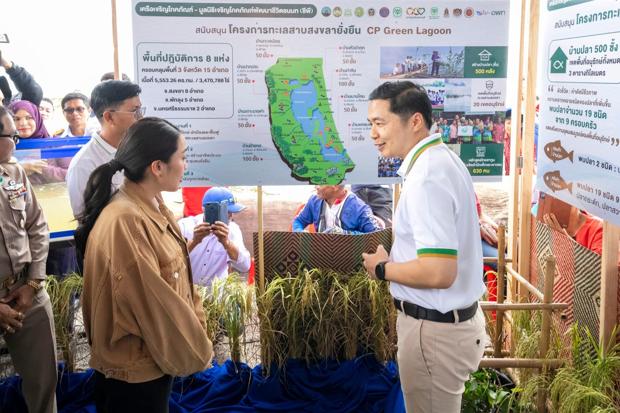 ด้าน นายจอมกิตติ ศิริกุล รองกรรมการผู้จัดการใหญ่บริหาร ด้านพัฒนาความยั่งยืนภาครัฐและกิจการสัมพันธ์ เครือเจริญโภคภัณฑ์ เปิดเผยว่า เครือเจริญโภคภัณฑ์ – มูลนิธิเจริญโภคภัณฑ์พัฒนาชีวิตชนบท (ซีพี) ได้ให้ความสำคัญ นโยบายการพัฒนาทะเลสาบสงขลายั่งยืน CP Green Lagoon เพื่อสนับสนุนการแก้ไขปัญหาและฟื้นฟูระบบนิเวศของทะเลสาบสงขลา โดยมีเป้าหมายหลักคือการสร้างสมดุลระหว่างการอนุรักษ์ทรัพยากรธรรมชาติ และการพัฒนาเศรษฐกิจของชุมชน มีแผนการพัฒนา 3 แผนงานหลัก แผนที่ 1 การอนุรักษ์ ปกป้อง และฟื้นฟูระบบนิเวศทะเลสาบสงขลาโดยมุ่งเน้นปล่อยพันธุ์สัตว์น้ำ และสร้างบ้านปลาเพื่อฟื้นฟูความหลากหลายทางชีวภาพและระบบนิเวศของทะเลสาบ แผนที่ 2 คน ต้นแบบ สร้างอาชีพ ส่งเสริมการทำประมงพื้นบ้าน และชุมชนอย่างยั่งยืน มีการฝึกอบรมและพัฒนาทักษะให้ชาวประมง เพื่อเพิ่มรายได้และยกระดับคุณภาพชีวิต และ แผนที่ 3 การผนึกกำลังทุกภาคส่วน สร้างความร่วมมือระหว่างภาครัฐ ภาคเอกชน และชุมชน เพื่อให้การพัฒนาเป็นไปอย่างมีประสิทธิภาพและยั่งยืน ทั้งนี้เครือซีพียังได้สนับสนุน นวัตกรรม “ธนาคารสัตว์น้ำระบบอัตโนมัติ” ซึ่งเป็นเทคโนโลยีที่ช่วยเพิ่มอัตราการรอดของพันธุ์สัตว์น้ำเศรษฐกิจ โดยจะช่วยฟื้นฟูประชากรสัตว์น้ำในทะเลสาบสงขลาให้กลับมาอุดมสมบูรณ์ มีพื้นที่ปฏิบัติการครอบคลุมทั้ง 8 แห่ง 3 จังหวัด 15 อำเภอ ได้แก่ จังหวัดสงขลา 8 อำเภอ (ระโนด กระแสสินธุ์ สทิงพระ สิงหนคร เมืองสงขลา ควนเนียง บางกล่ำ หาดใหญ่) จังหวัดพัทลุง 5 อำเภอ (ควนขนุน เมืองพัทลุง เขาชัยสน บางแก้ว ปากพะยูน) จังหวัดนครศรีธรรมราช 2 อำเภอ (ชะอวด หัวไทร) รอบพื้นที่ลุ่มน้ำทะเลสาบสงขลา