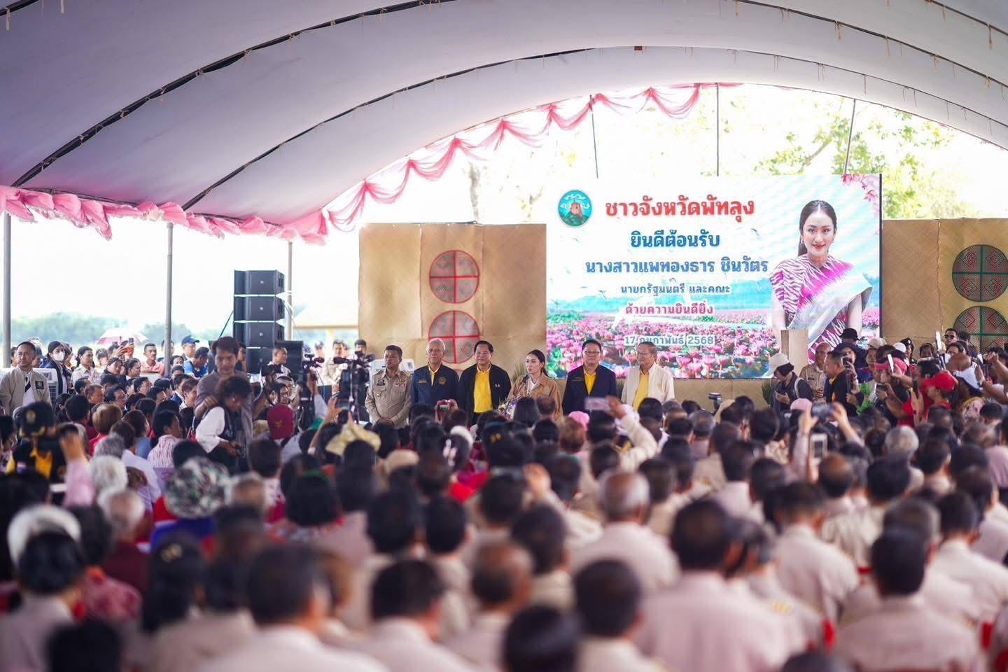 17 กุมภาพันธ์ 2568 นางสาวแพทองธาร ชินวัตร นายกรัฐมนตรี พร้อมคณะลงพื้นที่ จ.พัทลุง ติดตามการบริหารจัดการน้ำพื้นที่ลุ่มน้ำทะเลสาบสงขลา ณ จุดชมวิวทะเลน้อย อ.ควนขนุน จ.พัทลุง พร้อมด้วย นายพีระพันธุ์ สาลีรัฐวิภาค รองนายกรัฐมนตรีและรัฐมนตรีว่าการกระทรวงพลังงาน นายประเสริฐ จันทรรวงทอง รองนายกรัฐมนตรีและรัฐมนตรีว่าการกระทรวงดิจิทัลเพื่อเศรษฐกิจและสังคม นายพิพัฒน์ รัชกิจประการ รัฐมนตรีว่าการกระทรวงแรงงาน นพ.พรหมินทร์ เลิศสุริย์เดช เลขาธิการนายกรัฐมนตรี นายจตุพร บุรุษพัฒน์ ปลัดกระทรวงทรัพยากรธรรมชาติและสิ่งแวดล้อม โดยมี นายรัฐศาสตร์ ชิดชู ผู้ว่าราชการจังหวัดพัทลุง และนายจอมกิตติ ศิริกุล รองกรรมการผู้จัดการใหญ่บริหาร ด้านพัฒนาความยั่งยืนภาครัฐและกิจการสัมพันธ์ เครือเจริญโภคภัณฑ์ ร่วมให้การต้อนรับ