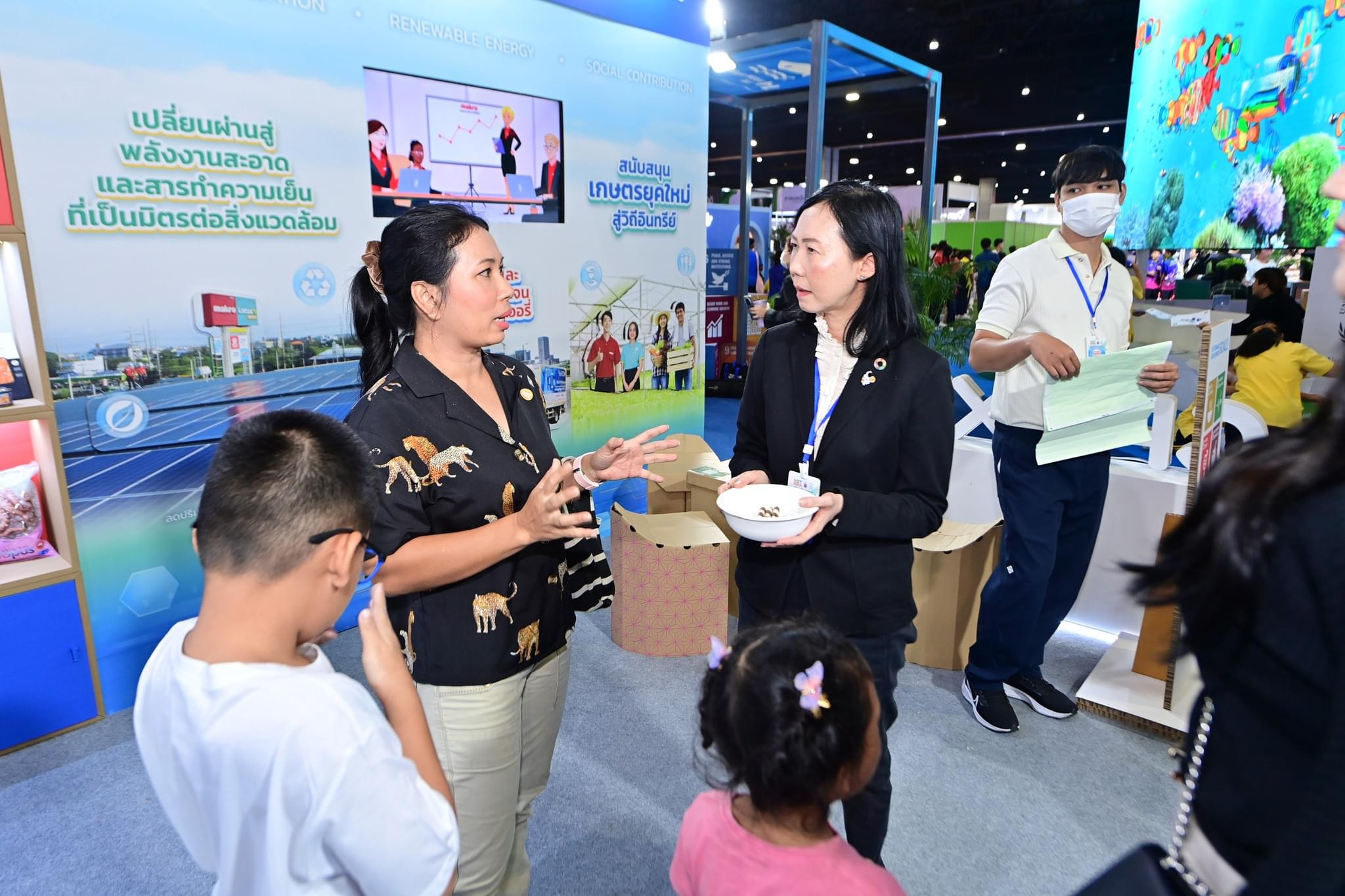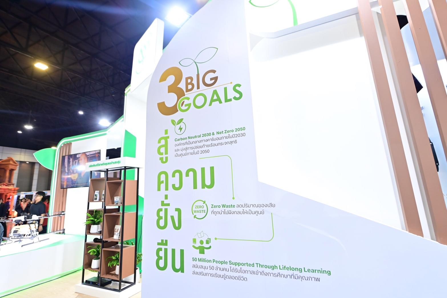 ขณะที่ บริษัท ซีพี แอ็กซ์ ตร้า จำกัด (มหาชน) จัดแสดงในแบบ Green Exhibition บูธที่ผลิตจากกระดาษที่สามารถนำกลับไปใช้งานต่อได้ รวมไปถึงโชว์ไอเดียนวัตกรรม “Refill Station” สถานีลดใช้พลาสติกเพื่อสังคมที่น่าอยู่และ“Innovation Products for Sustainability” นวัตกรรมสินค้าที่ดีต่อสุขภาพและสิ่งแวดล้อม รวมไปถึงการนำเสนอการใช้เทคโนโลยีพลังงานสะอาดผ่านการใช้โซลาร์เซลล์ และการใช้รถไฟฟ้าขนส่งสินค้า ร่วมลดคาร์บอน สร้างโลกที่ยั่งยืน
