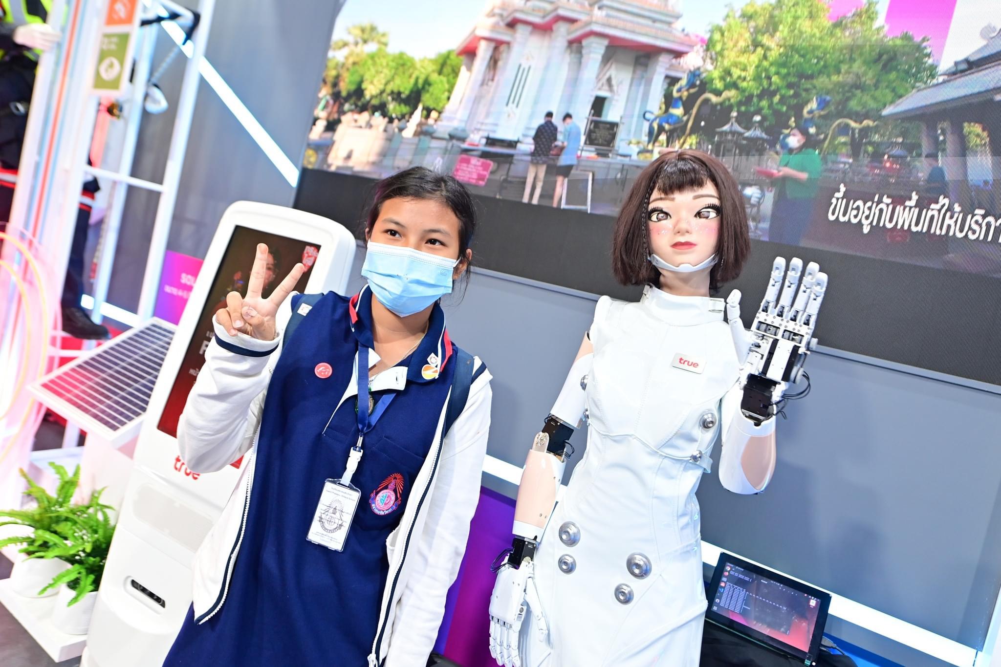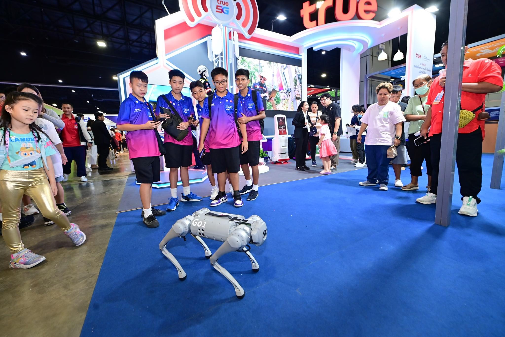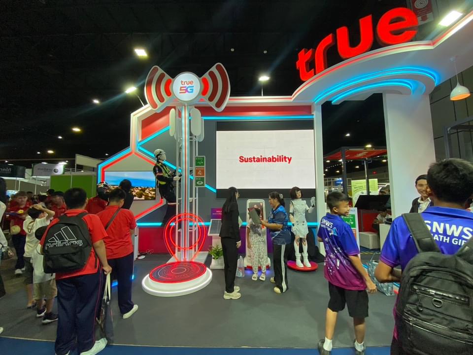 ในส่วนของบริษัท ทรู คอร์ปอเรชั่น จำกัด (มหาชน) จัดเต็มด้วยนวัตกรรมอัจฉริยะที่จะมาทำให้ชีวิตง่ายขึ้น ทั้งเทคโนโลยีที่มองไม่เห็น แต่สัมผัสได้ผ่านแว่น VR อินเทอร์แอ็กทีฟแบบคมชัด จัดเต็ม 360 องศากับภาพเสมือนจริง ชวนสัมผัส True5G สร้างวิถีชีวิตอัจฉริยะคนรุ่นใหม่เพื่อความเป็นอยู่ที่ดีขึ้นกับ Smart Convenient ล้ำขั้นสุดกับ TrueX เทคโนโลยีรวมโซลูชันเข้ากับทุกไลฟ์สไตล์ เชื่อมต่อทุกสิ่งเข้าต่อด้วยกัน พร้อมพบกับเหล่าหุ่นยนต์อัจฉริยะ Humaniod นอกจากนี้ได้นำเสนอเสาสัญญาณขับเคลื่อนด้วยพลังงานสะอาด แผงโซล่าเซลล์พลังงาน