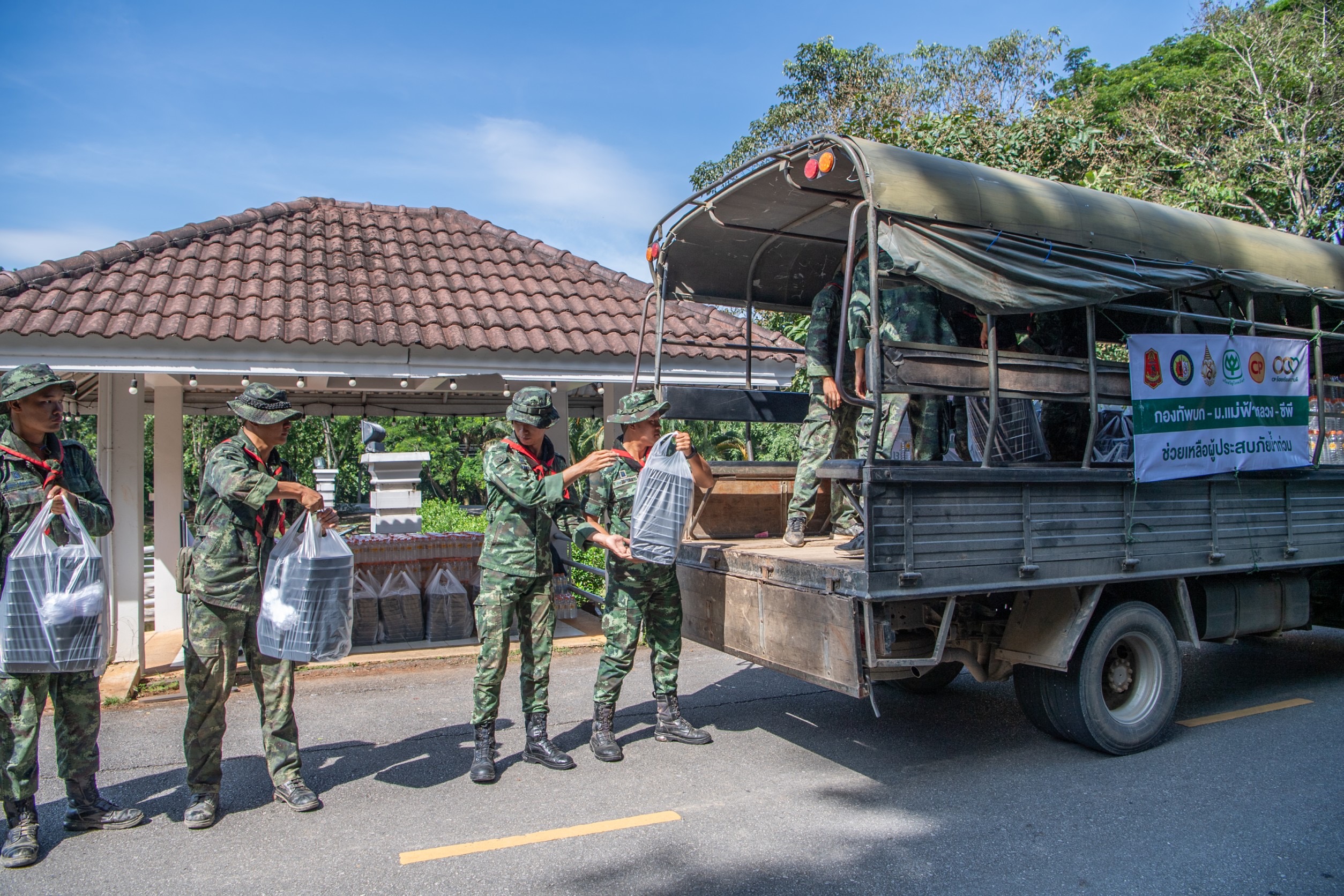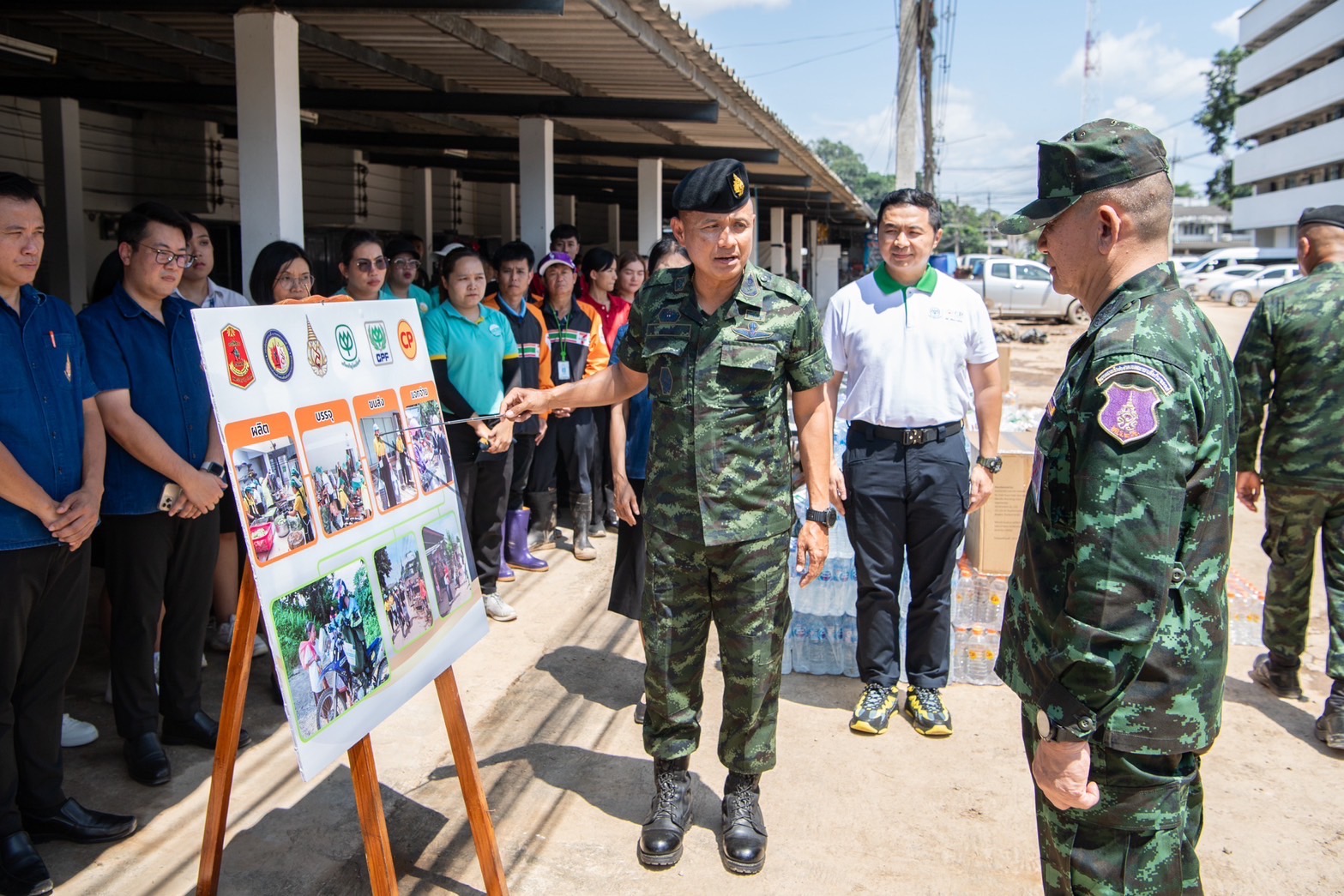 พลเอก เจริญชัย หินเธาว์ ผู้บัญชาการทหารบก ผู้ช่วยศาตราจารย์ ดร.มัชฌิมา นราดิศร อธิการบดี มหาวิทยาลัยแม่ฟ้าหลวง และนายจอมกิตติ ศิริกุล รองกรรมการผู้จัดการใหญ่อาวุโส ด้านพัฒนาความยั่งยืนภาครัฐและกิจการสัมพันธ์ เครือเจริญโภคภัณฑ์ และผู้ช่วยบริหารสำนักประธานคณะกรรมการบริหาร บริษัท เจริญโภคภัณฑ์อาหาร จำกัด (มหาชน) หรือซีพีเอฟ พร้อมด้วยจิตอาสาเครือซีพี ได้แก่ ซีพีเอฟ, ซีพีออลล์, ซีพี แอ็กซ์ตร้า แม็คโคร โลตัส, และข้าวตราฉัตร ลงพื้นที่ให้กำลังใจและส่งมอบอาหาร รวมถึงถุงยังชีพ ภายใต้โครงการ ‘CP-CPF ส่งอาหารจากใจ สู้ภัยน้ำท่วม’ โดยมีกำลังพลของกองทัพบก นำทีมกระจายอาหารและสิ่งของจำเป็น ส่งถึงผู้ประสบภัยในพื้นที่ต่างๆ ในจังหวัดเชียงราย