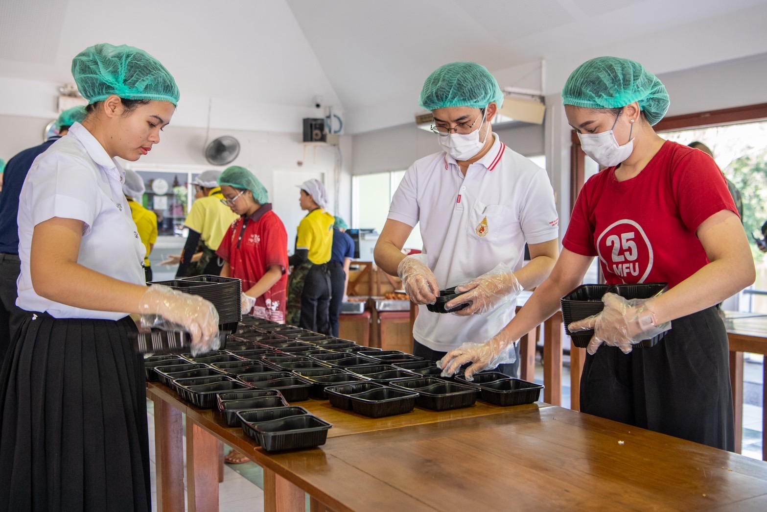 ดร.มัชฌิมา นราดิศร กล่าวว่า จากสถานการณ์น้ำท่วมในจังหวัดเชียงราย ตั้งแต่ปลายเดือนส.ค.ที่ผ่านมา มหาวิทยาลัยแม่ฟ้าหลวงได้ช่วยเหลือพี่น้องประชาชน โดยเป็นสะพานเชื่อมความช่วยเหลือจากทุกสารทิศเปิดรับเงินบริจาค สิ่งของจำเป็น ทั้งจากนักศึกษา ผู้ปกครอง ศิษย์เก่า พนักงาน และประชาชนทั่วไป รวมถึงเปิดอาคารต่างๆ ภายในมหาวิทยาลัยฯ อาทิ สเตเดียม ให้เป็นศูนย์พักพิงให้แก่ผู้ประสบภัย ขณะเดียวกัน ยังจัดตั้งโรงครัว 2 แห่ง คือ เรือนริมน้ำ ซึ่งเป็นร้านอาหารของมหาวิทยาลัยฯ และห้องปฏิบัติการของนักศึกษา สำนักวิชาการจัดการ ในการปรุงอาหารสุกพร้อมรับประทานส่งมอบแก่ประชาชนจำนวน 1,500 กล่องต่อวัน