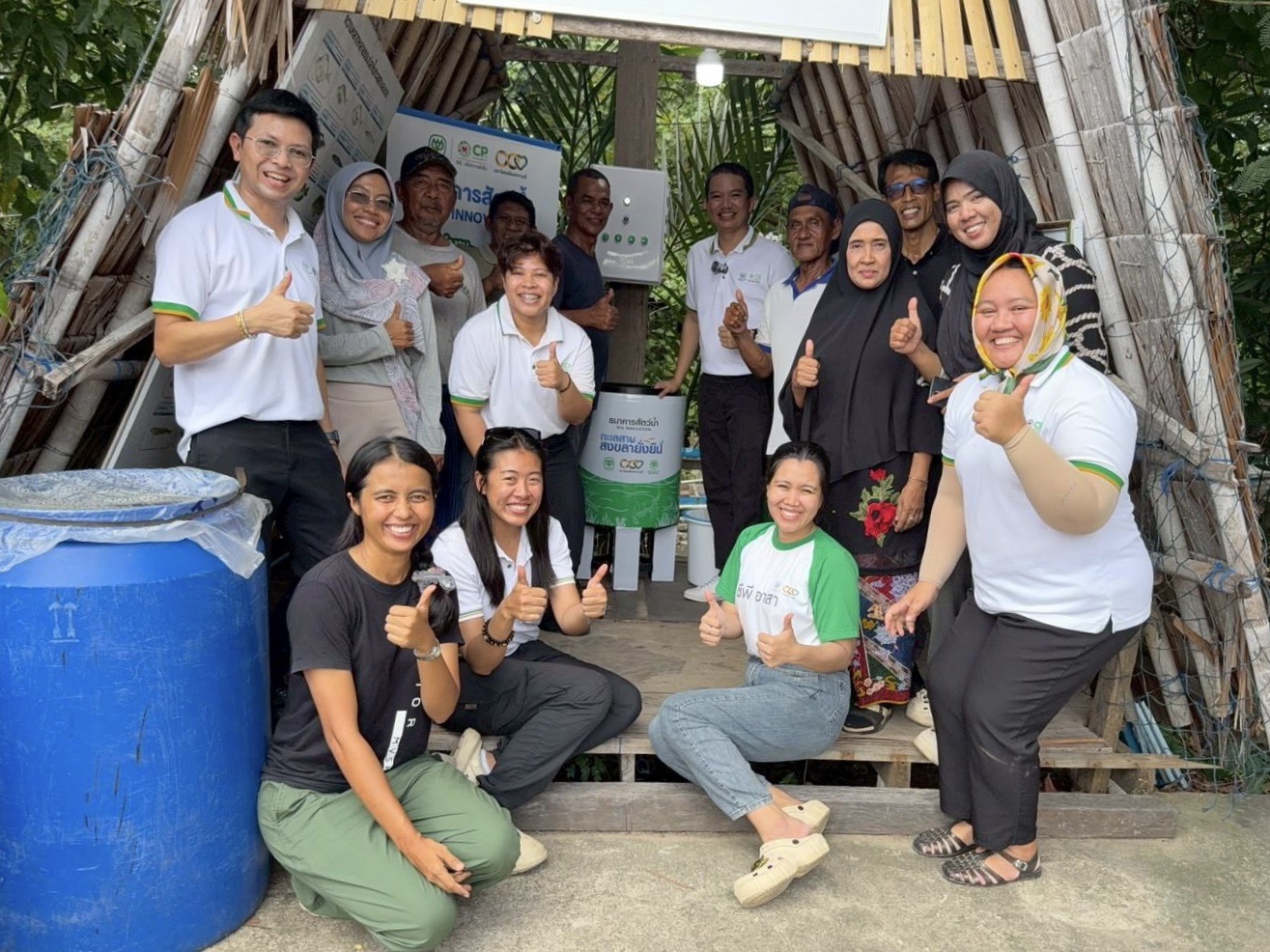 มูลนิธิเจริญโภคภัณฑ์พัฒนาชีวิตชนบท (ซีพี) เดินหน้าขับเคลื่อน “โครงการซีพีทะเลสาบสงขลายั่งยืน” ฟื้นฟูระบบนิเวศน์ทะเลสาบสงขลา ลงพื้นที่ ส่งมอบ ติดตั้ง และถ่ายทอดองค์ความรู้การใช้งาน “นวัตกรรมธนาคารสัตว์น้ำ (กุ้งก้ามกราม)” ซึ่งเป็นเครื่องมือสำคัญในการฟื้นฟูทรัพยากรประมงชายฝั่ง สร้างความอุดมสมบูรณ์ และเสริมความมั่นคงทางอาหารให้กับชุมชน โดยมี คุณเอกสิทธิ์ สองเมือง นายอำเภอสิงหนคร จังหวัดสงขลา พร้อมคณะฯ ให้เกียรติรับฟังแนวทางการดำเนินงาน และเยี่ยมชมการติดตั้งนวัตกรรม พร้อมด้วย คณะนักศึกษาจากคณะมนุษยศาสตร์และสังคมศาสตร์ ม.อ.ปัตตานี ที่มาศึกษาดูงาน ทีมสื่อศูนย์สื่อสารวิจัยภาคใต้ คณะทุนวิจัยและนวัตกรรมเพื่อพัฒนาพื้นที่ (บพท.) ผศ.ดร.เตือนตา ร่าหมาน หัวหน้าทีมวิจัยโครงการ “บ้านปลามีชีวิต” และคณะนักวิจัย ร่วมรับฟังข้อมูลเทคนิคของนวัตกรรม เพื่อเชื่อมโยงองค์ความรู้สู่การพัฒนางานวิจัยพื้นที่ในอนาคต ณ ชุมชนบ้านใหม่ กลุ่มอนุรักษ์ชายฝั่งและฟาร์มทะเลชุมชน บ้านปลาหมายเลข 9 (ซั้งปลา) อำเภอสิงหนคร จ.สงขลา