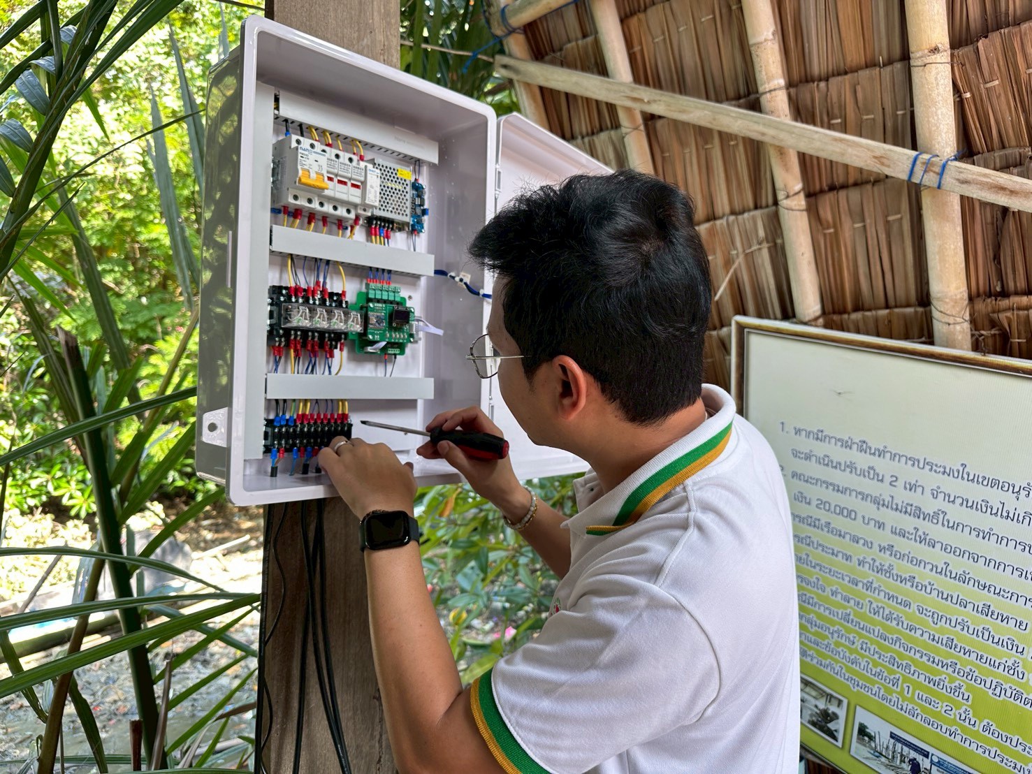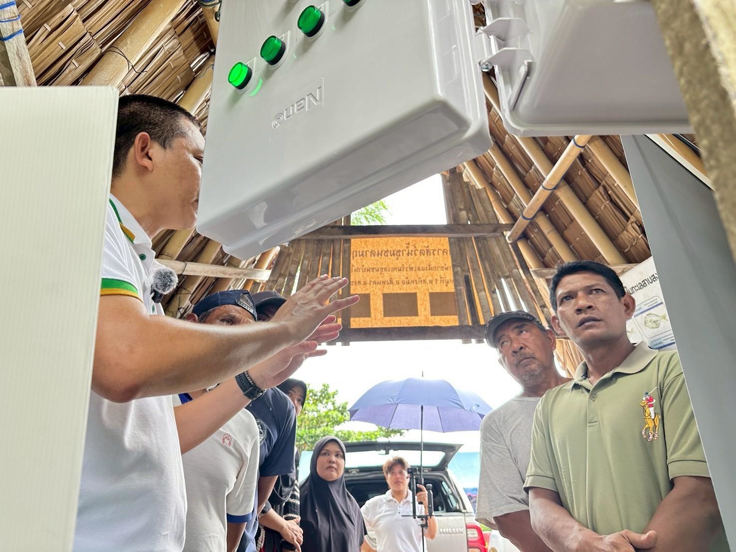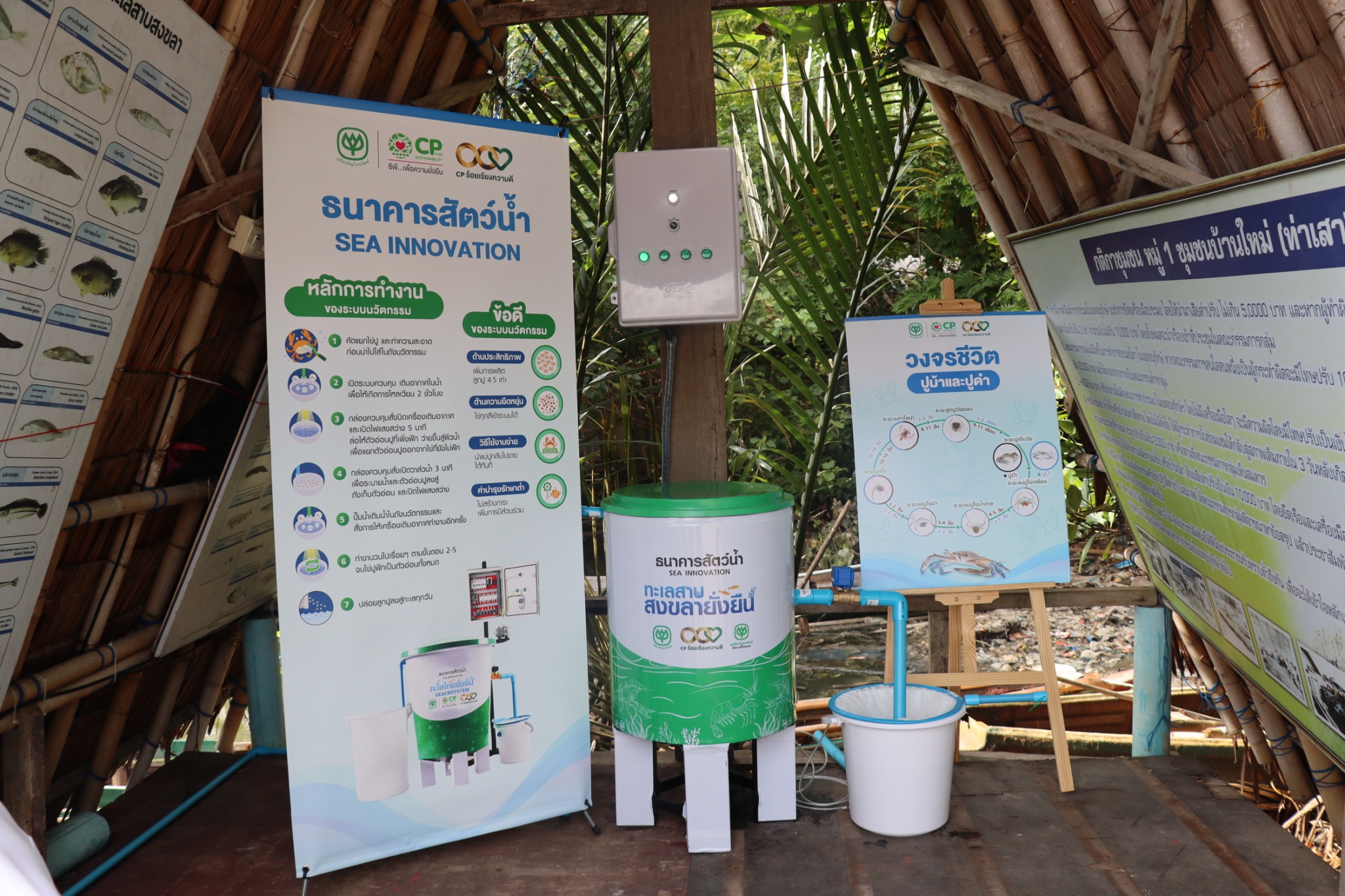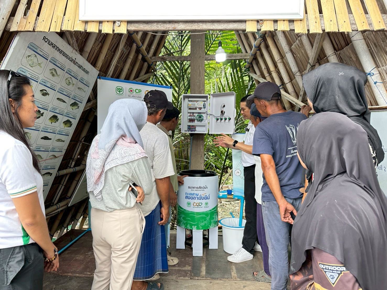 การลงพื้นที่นำโดย ดร.ปฐพร เกื้อนุ้ย, นายอานนท์ ขำแก้ว และทีมปฏิบัติการความยั่งยืนทางทะเล เครือเจริญโภคภัณฑ์ พร้อมด้วยทีมงานมูลนิธิฯ ได้ดำเนินการติดตั้งอุปกรณ์ของธนาคารสัตว์น้ำ – กุ้งก้ามกรามอย่างเต็มระบบ ตั้งแต่ระบบหมุนเวียนน้ำ การเติมออกซิเจน และการควบคุมคุณภาพน้ำ พร้อมทั้งทดสอบการทำงานในสภาพแวดล้อมจริง เพื่อให้มั่นใจถึงประสิทธิภาพ นอกจากนี้ ยังได้ถ่ายทอดองค์ความรู้การขยาย “พ่อ–แม่พันธุ์กุ้งก้ามกรามในระบบนิเวศ” ให้กับ นายชัยยศ ฤทธิโก ประธานกลุ่มฯ และสมาชิก เพื่อให้เข้าใจถึงหลักการทำงาน การดูแลรักษา และสามารถบริหารจัดการนวัตกรรมนี้ได้ด้วยตนเองในระยะยาว โดยมีเป้าหมายในการเพิ่มปริมาณสัตว์น้ำท้องถิ่นในระบบนิเวศชายฝั่ง