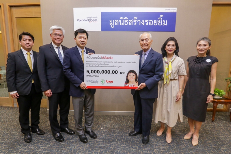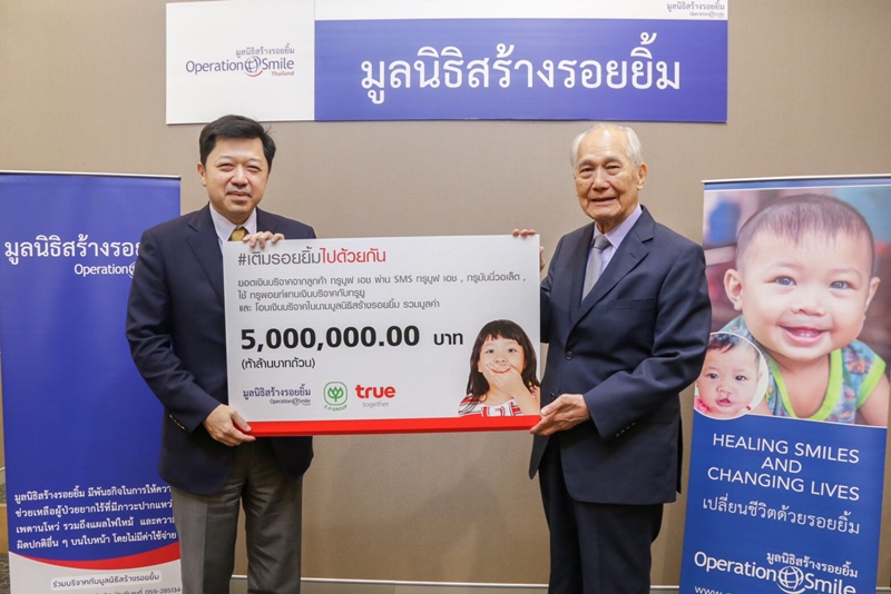 เครือซีพี และ ทรู คอร์ปอเรชั่น ส่งมอบเงินบริจาคจากลูกค้ากลุ่มทรู 5 ล้านบาท ในโครงการ “เติมรอยยิ้มไปด้วยกัน” ให้แก่ มูลนิธิสร้างรอยยิ้ม พร้อมขอบคุณที่ร่วมสร้างรอยยิ้มให้น้องยิ้มได้ถึง 166 คน