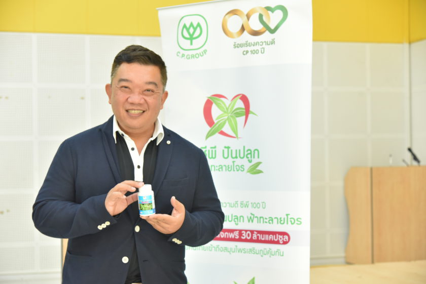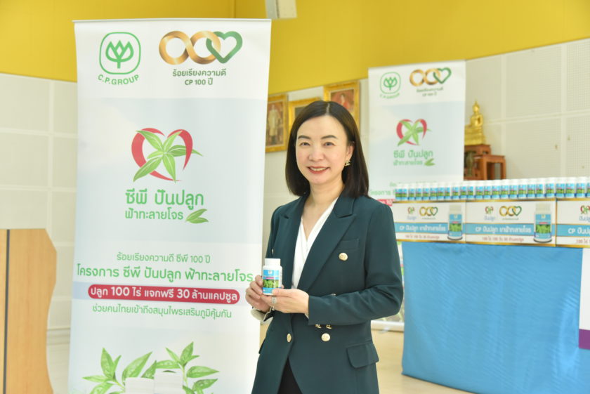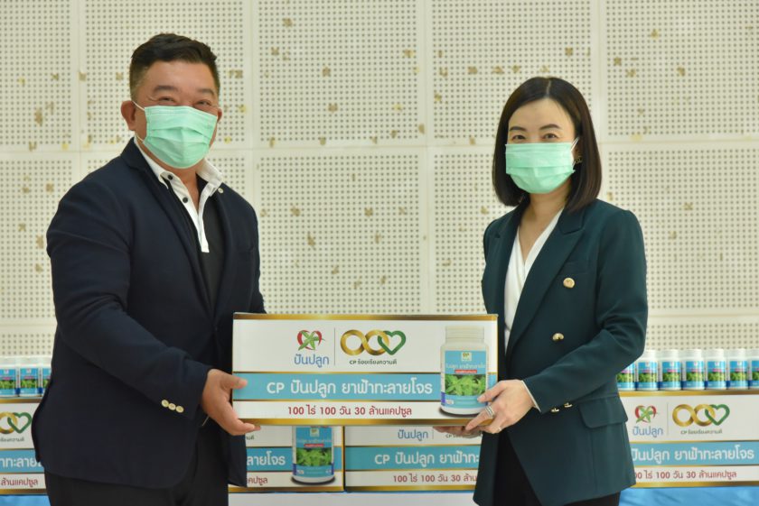 คุณพิมลรัตน์ รีพัฒนาวิจิตรกุล ประธานผู้บริหาร ทรัพยากรบุคคล เครือเจริญโภคภัณฑ์ กล่าวว่า เครือซีพีมีความภาคภูมิใจที่มีส่วนส่งเสริมให้ประชาชนได้มีโอกาสเข้าถึงยาสมุนไพรฟ้าทะลายโจร เพื่อเป็นการเสริมภูมิคุ้นกันในสถานการณ์ของการแพร่ระบาดโควิด-19 ซึ่งเป็นไปตามดำริของประธานอาวุโส ธนินท์เจียรวนนท์ โดยได้มอบนโยบายให้ทุกกลุ่มธุรกิจร้อยเรียงความดี ผนึกกำลังร่วมกันส่งต่อความห่วงใยด้วยการนำยาสมุนไพรฟ้าทะลายโจรไปมอบให้แก่ประชาชนโดยเฉพาะกลุ่มเปราะบาง ซึ่งเป็นกิจกรรมที่ดีเป็นการได้ทำประโยชน์ต่อสังคม และต่อประเทศชาติของเรา