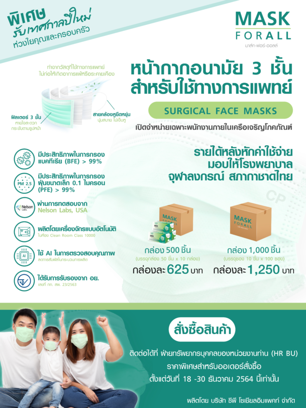 (เฉลี่ยซองละ 12.5 บาท หน้ากากอนามัยซีพีเฉลี่ยราคาชิ้นละ 1.25 บาท)