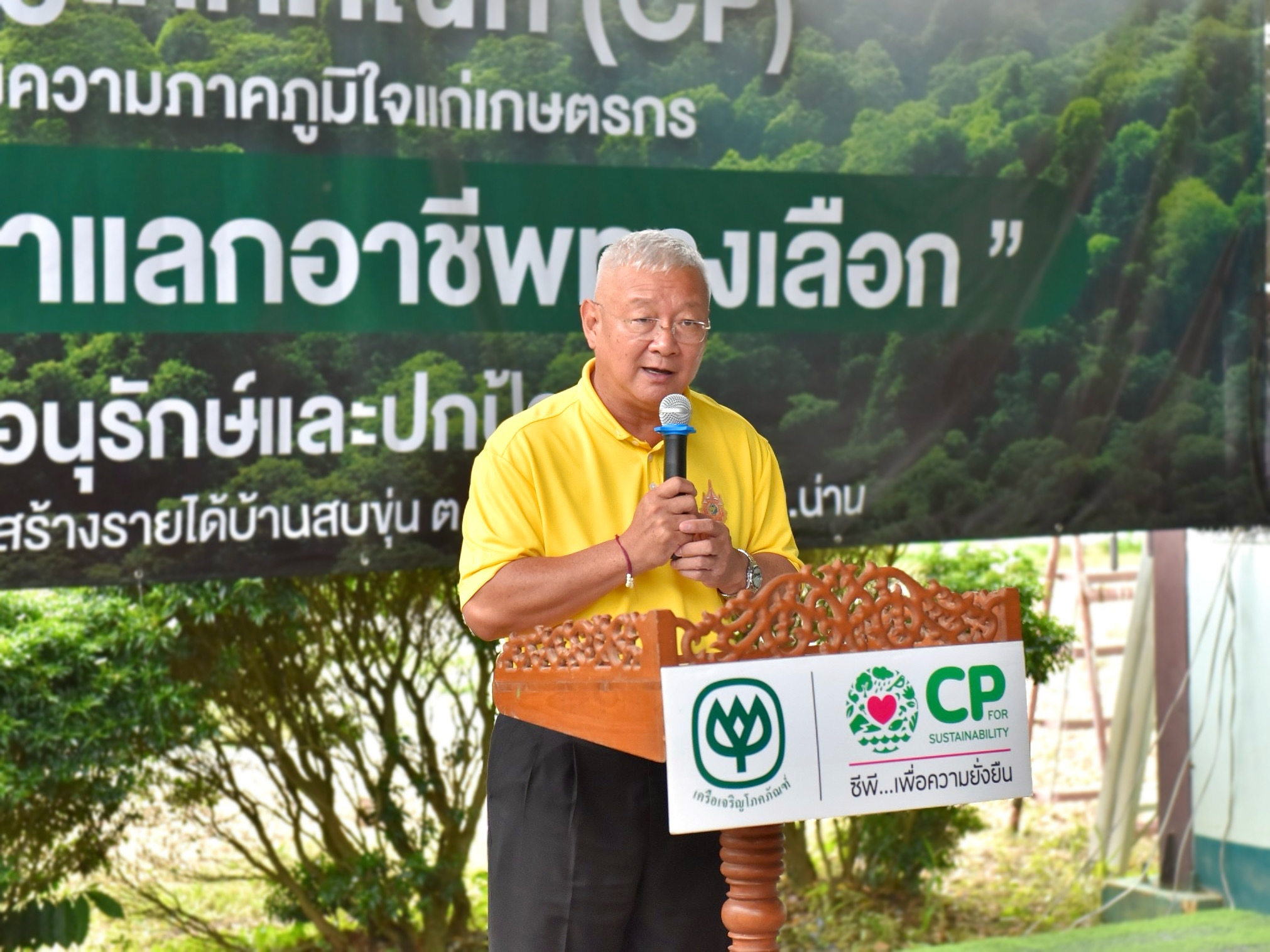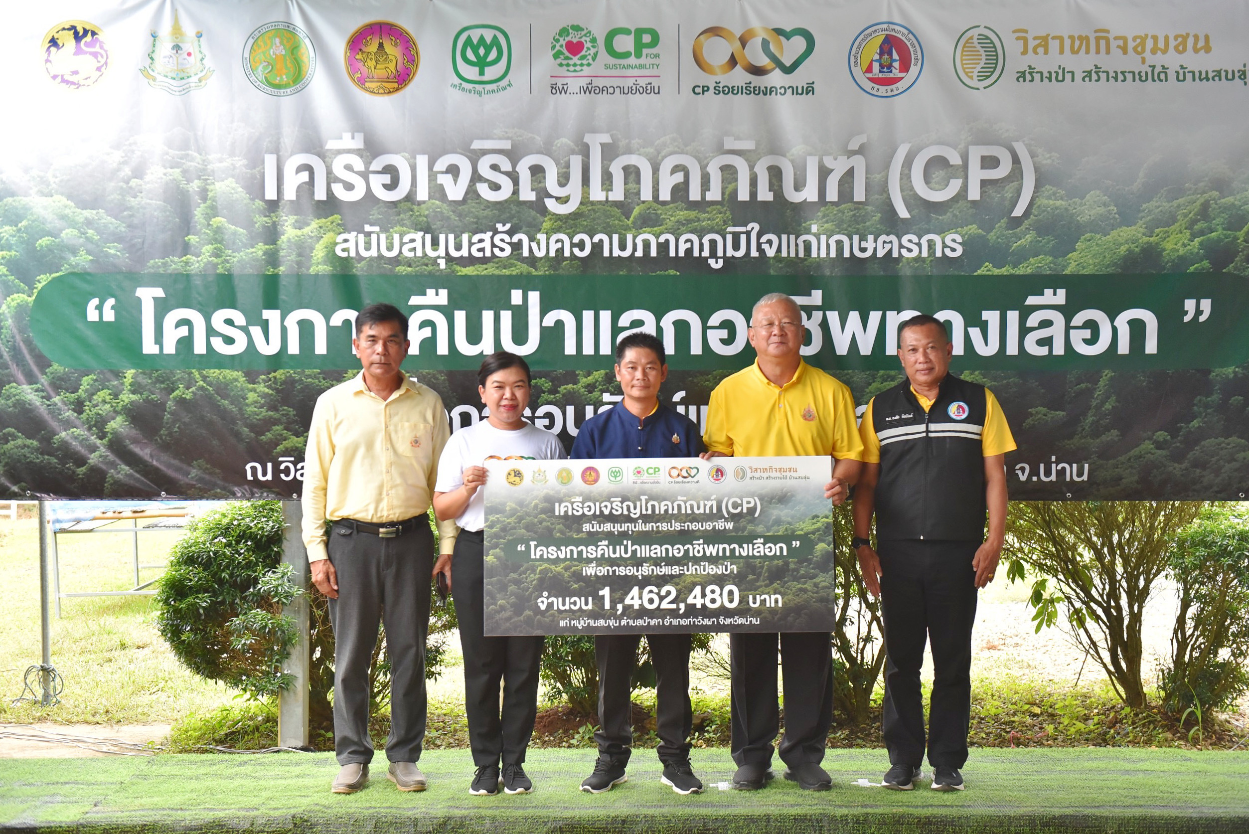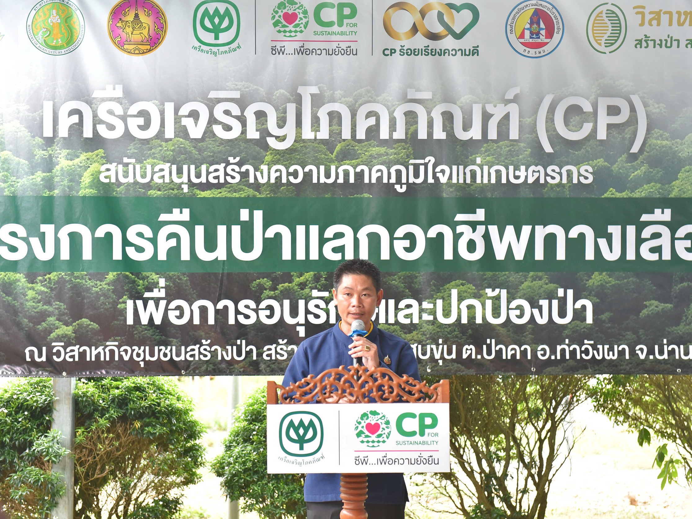 เครือเจริญโภคภัณฑ์ ร่วมกับ องค์การบริหารส่วน จ.น่าน อำเภอท่าวังผา อุทยานแห่งชาตินันทบุรี กรมอุทยานแห่งชาติ สัตว์ป่า และพันธุ์พืช สํานักงานเกษตรและสหกรณ์ จ.น่าน กองอำนวยการรักษาความมั่นคงภายในราชอาณาจักร จ.น่าน สำนักงานทรัพยากรธรรมชาติและสิ่งแวดล้อม จ.น่าน โครงการสถานีพัฒนาเกษตรที่สูงตามแนวพระราชดำริ จัดพิธิมอบเกียรติบัตรในโครงการ “คืนป่า แลกอาชีพทางเลือก” ประจำปี 2567 ส่งเสริมให้เกษตรบ้านสบขุ่น จ.น่าน ร่วมคืนพื้นที่ทำกินที่อยู่ห่างไกลให้กับภาครัฐ เพื่อปรับเปลี่ยนสภาพให้เป็นป่าถาวร และปรับเปลี่ยนสู่วิถีการเกษตรแบบผสมผสาน มุ่งฟื้นฟูป่าต้นน้ำน่านอย่างยั่งยืน โดยมี คุณกฤชเพชร เพชรบูรณิน รองผู้ว่าราชการจังหวัดน่าน เป็นประธาน พร้อมด้วย คุณพิไลลักษณ์ พิชัยวัตต์ ผู้ช่วยกรรมการผู้จัดการ ด้านพัฒนาความยั่งยืนภาครัฐและกิจการสัมพันธ์ เครือเจริญโภคภัณฑ์ ผู้แทนหน่วยงานภาครัฐ ภาคประชาสังคม และเกษตรกร ร่วมงาน ณ ชุมชนบ้านสบขุ่น อ.ท่าวังผา จ.น่าน
