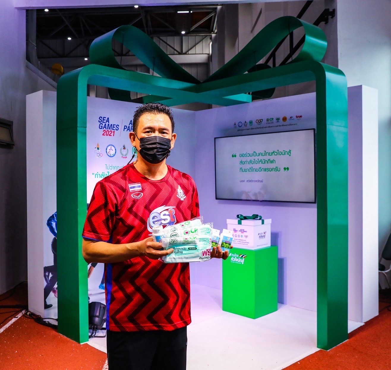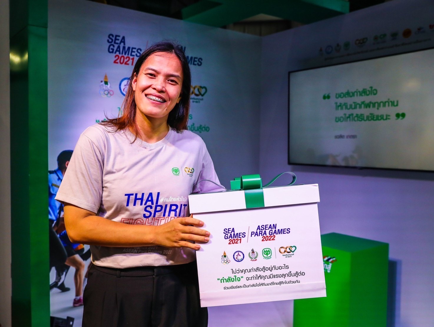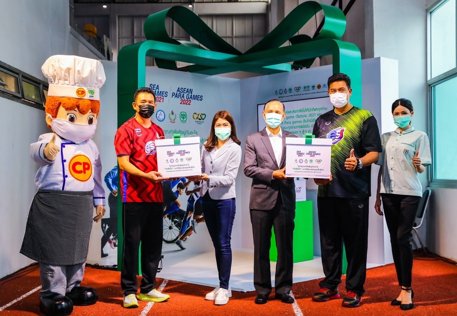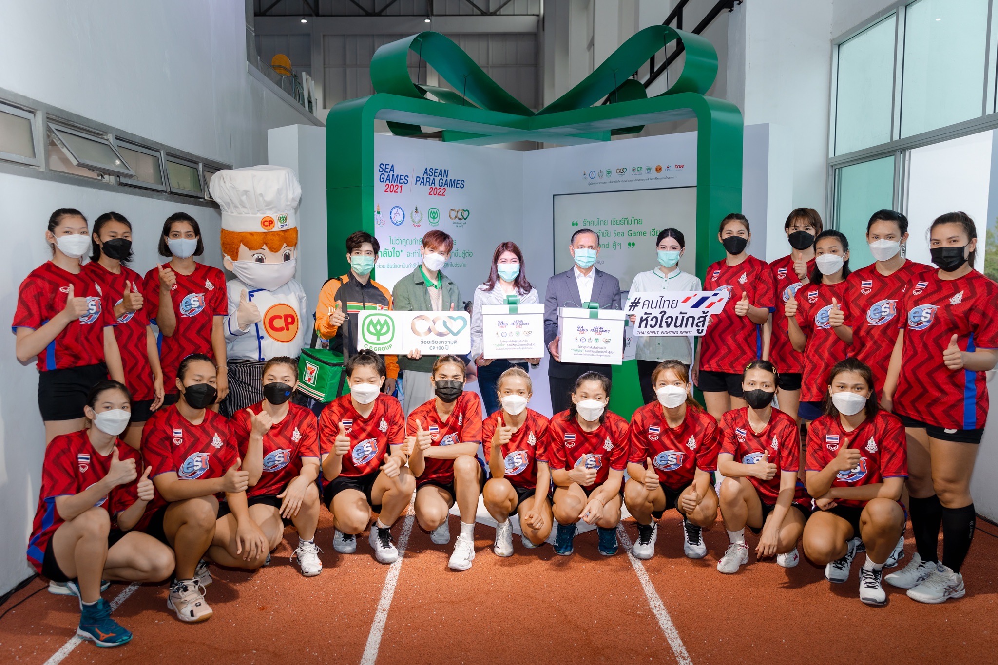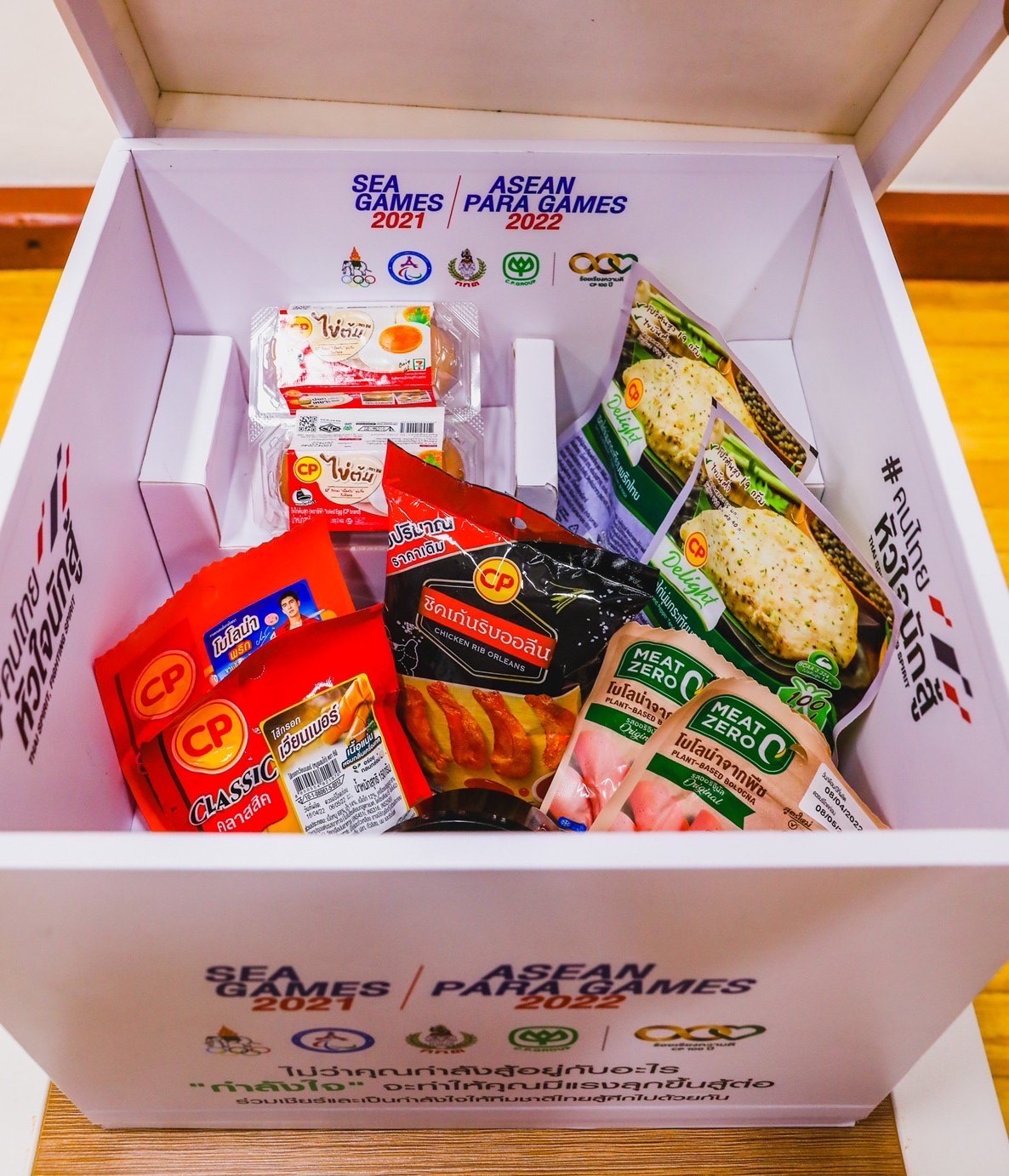 คุณสุวิทย์ กิ่งแก้ว ที่ปรึกษาอาวุโสคณะเจ้าหน้าที่บริหาร บริษัท ซีพี ออลล์ จำกัด (มหาชน) กล่าวว่า เครือเจริญโภคภัณฑ์ สนับสนุนด้านอาหารและการสื่อสารแก่ทัพนักกีฬาทีมชาติไทยอย่างต่อเนื่องมาเป็นปีที่ 6 และในปีนี้ บริษัทฯ ขอเป็น “ผู้สนับสนุนกำลังใจ” ให้นักกีฬา เจ้าหน้าที่ ทีมชาติไทย รวมถึงคนไทยทุกคน ร่วมส่งกำลังใจและร่วมต่อสู้ไปด้วยกัน ในการแข่งขันซีเกมส์ 2021 และอาเซียน พาราเกมส์ 2022 โดยเครือเจริญโภคภัณฑ์ ร่วมกับ ซีพีเอฟ ซีพีออลล์ และทรู คอร์ปอเรชั่น ได้จัดกิจกรรมมอบ “กล่องกำลังใจ” ที่อัดแน่นไปด้วยกำลังใจจากเครือเจริญโภคภัณฑ์ ทั้งอาหารและการสื่อสาร หน้ากากอนามัยซีพี สมุนไพรฟ้าทะลายโจร กล้วยหอมทอง พร้อมทั้งข้อความให้กำลังใจจากพนักงานในเครือฯ เพื่อนำกำลังใจพิเศษไปเซอร์ไพรส์ สร้างความประทับใจและเติมกำลังใจอย่างเต็มเปี่ยมให้แก่ทัพนักกีฬาทีมชาติไทยก่อนเดินทางไปสร้างชื่อเสียงให้แก่ประเทศชาติ