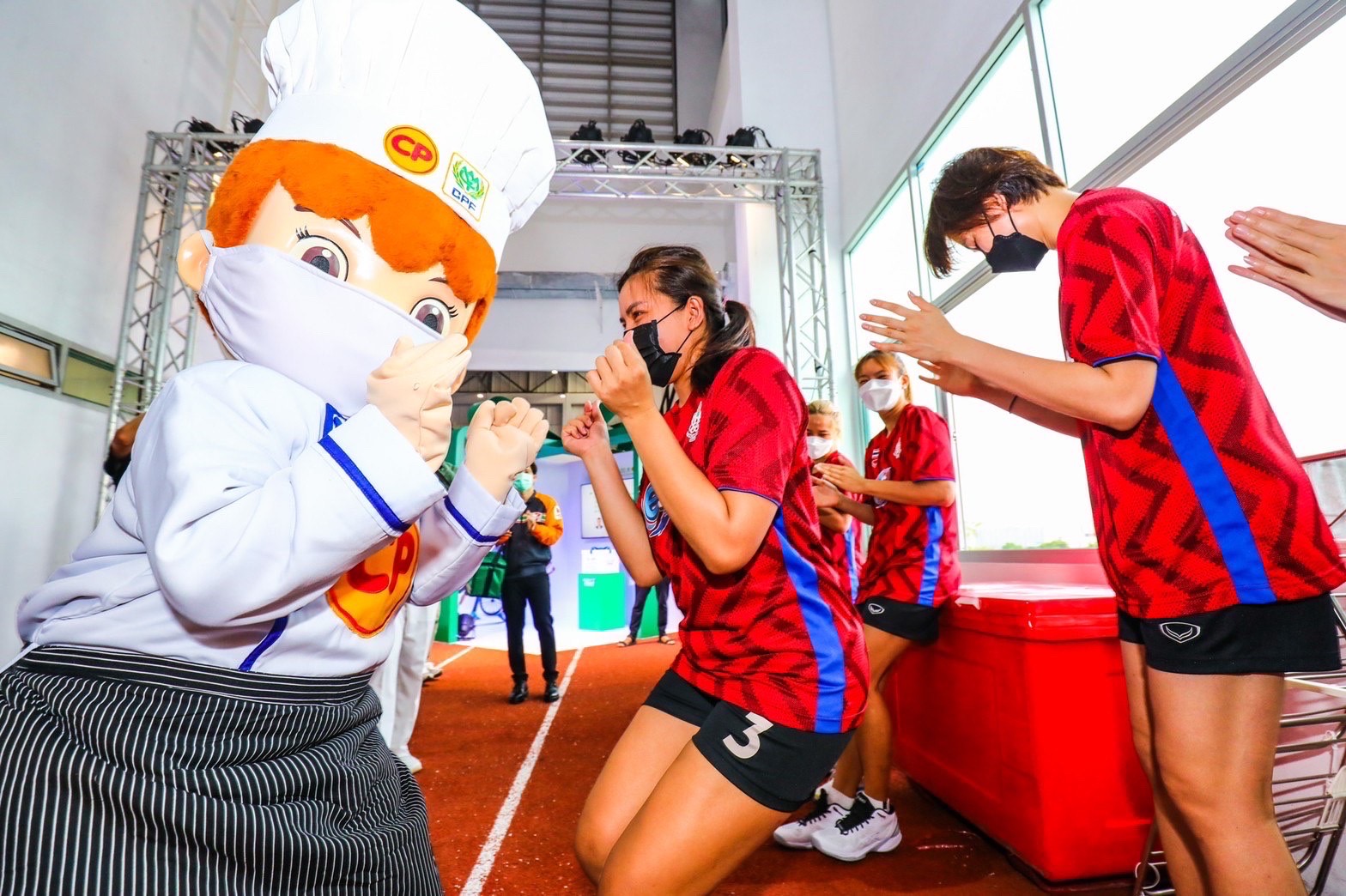 พร้อมกันนี้ยังมีเซอร์ไพรส์การแสดงจากพนักงาน 7-11 ที่มาร่วมร้องเพลงสร้างความสนุกสนาน รวมถึงยังได้ “กิ๊ฟ” วิลาวัณย์ อภิญญาพงศ์ อดีตกัปตันทีมวอลเลย์บอลหญิงทีมชาติไทย มาร่วมสร้างสีสัน แปลงโฉมแต่งเป็นมาสคอต CP Chef เรียกเสียงฮือฮาจากน้อง ๆ นักกีฬา ด้วยเช่นกัน
