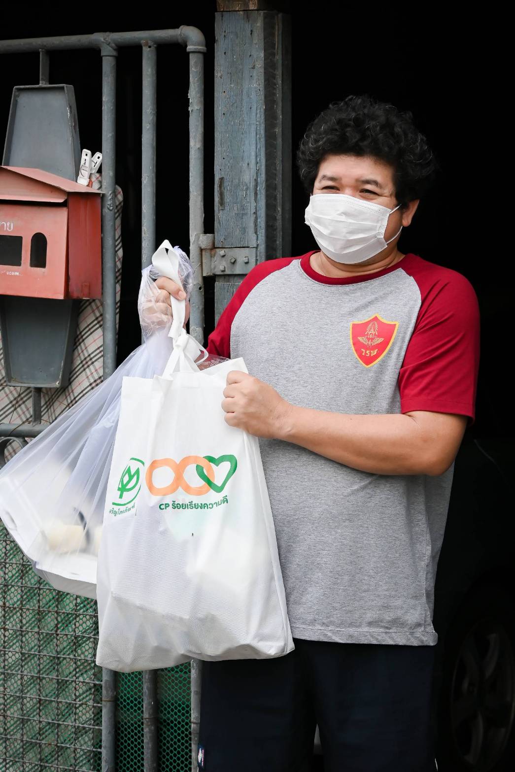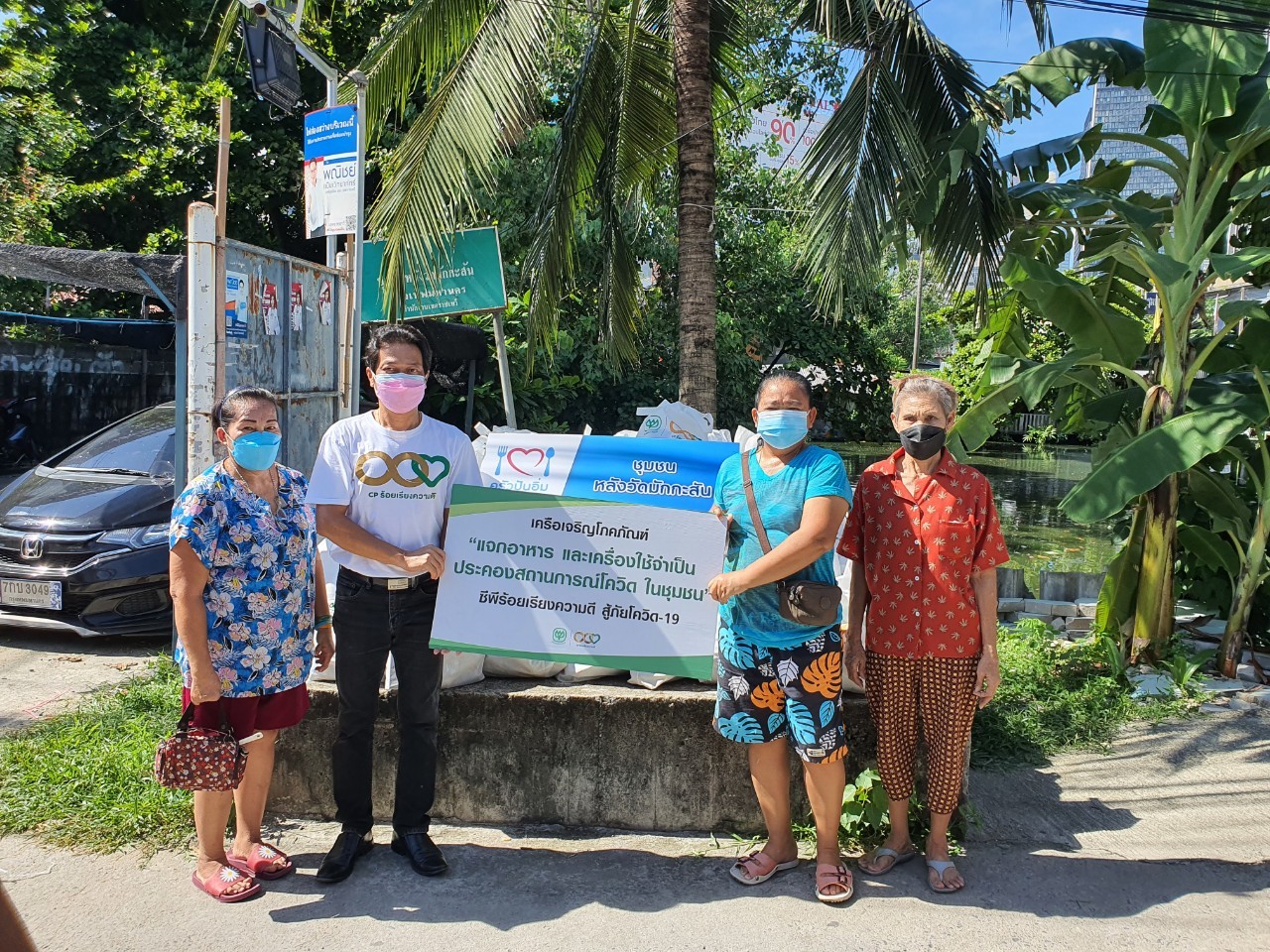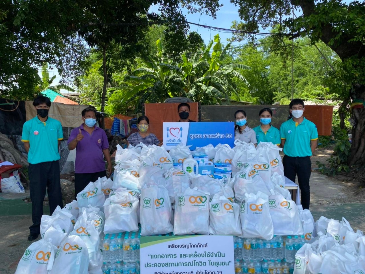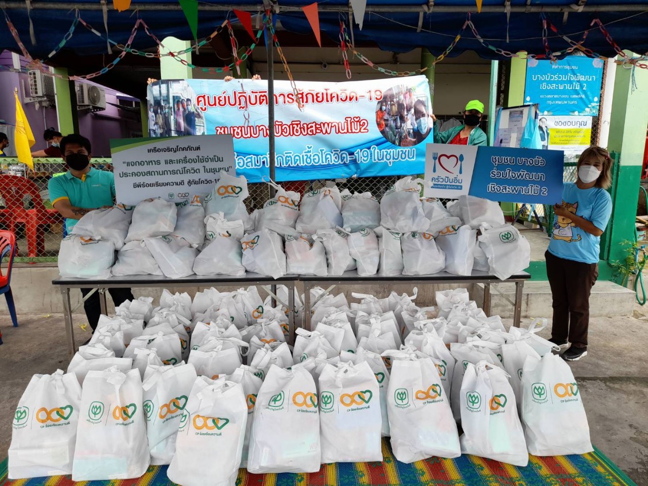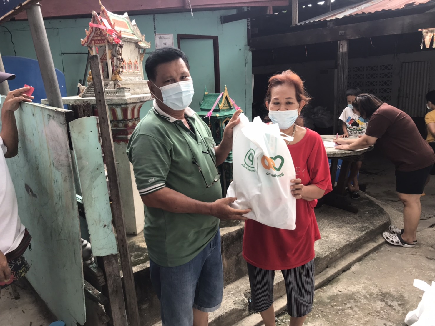 โดยขณะนี้ได้แจกถุงยังชีพไปแล้ว 4,800 ชุด ครอบคลุมชุมชนใหญ่ในกรุงเทพฯ ที่เป็นพื้นที่สีแดงเข้ม ได้แก่ ชุมชนริมคลองลาดพร้าว ชุมชนมักกะสัน และชุมชนตามแนวรถไฟฟ้าแอร์พอร์ตเรียลลิงค์ โดยเครือซีพีและพันธมิตรยังคงเดินหน้าแจกถุงยังชีพที่บรรจุ ข้าวสาร อาหารแห้ง และของใช้จำเป็นอย่างอื่น สามารถเก็บไว้ได้นาน เช่น ปลากระป๋อง นมกล่อง บะหมี่กึ่งสำเร็จรูป ไข่เค็ม น้ำมัน น้ำปลา หน้ากากอนามัย กระดาษชำระ เพื่อให้ผู้ป่วยติดโควิดและผู้กักตัว รวมทั้งผู้ที่ได้รับผลกระทบจากสถานการณ์การแพร่ระบาดของเชื้อไวรัสโควิด-19 ลดภาระและบรรเทาความเดือดร้อนให้คนในชุมชน ลดความเสี่ยงออกจากบ้าน สามารถป้องกันการแพร่ระบาดโควิด-19 ไม่กระจายไปนอกพื้นที่
