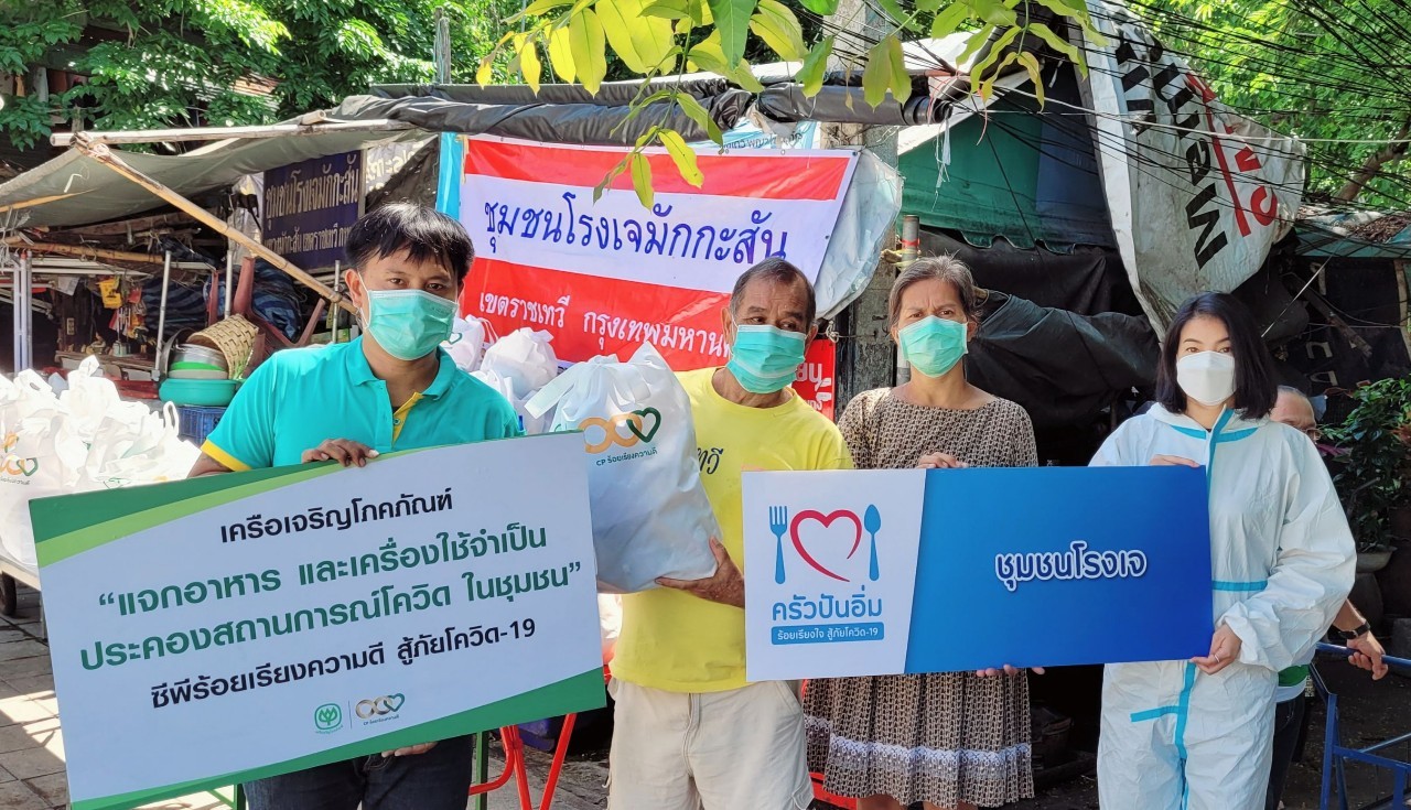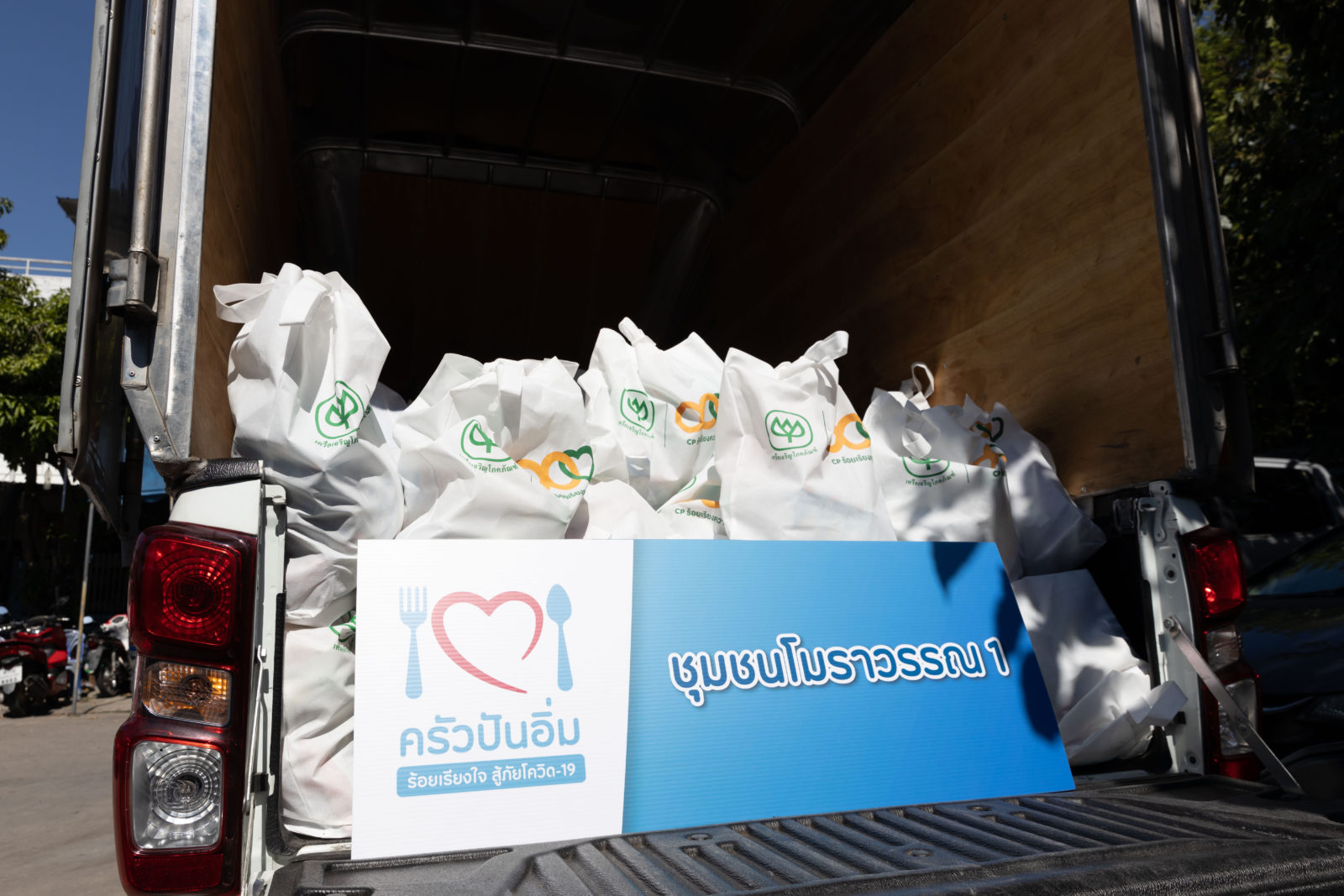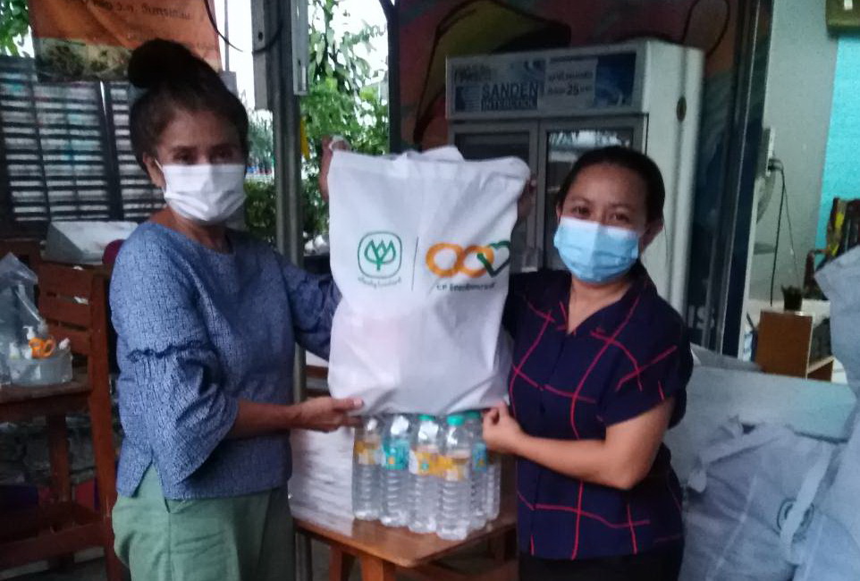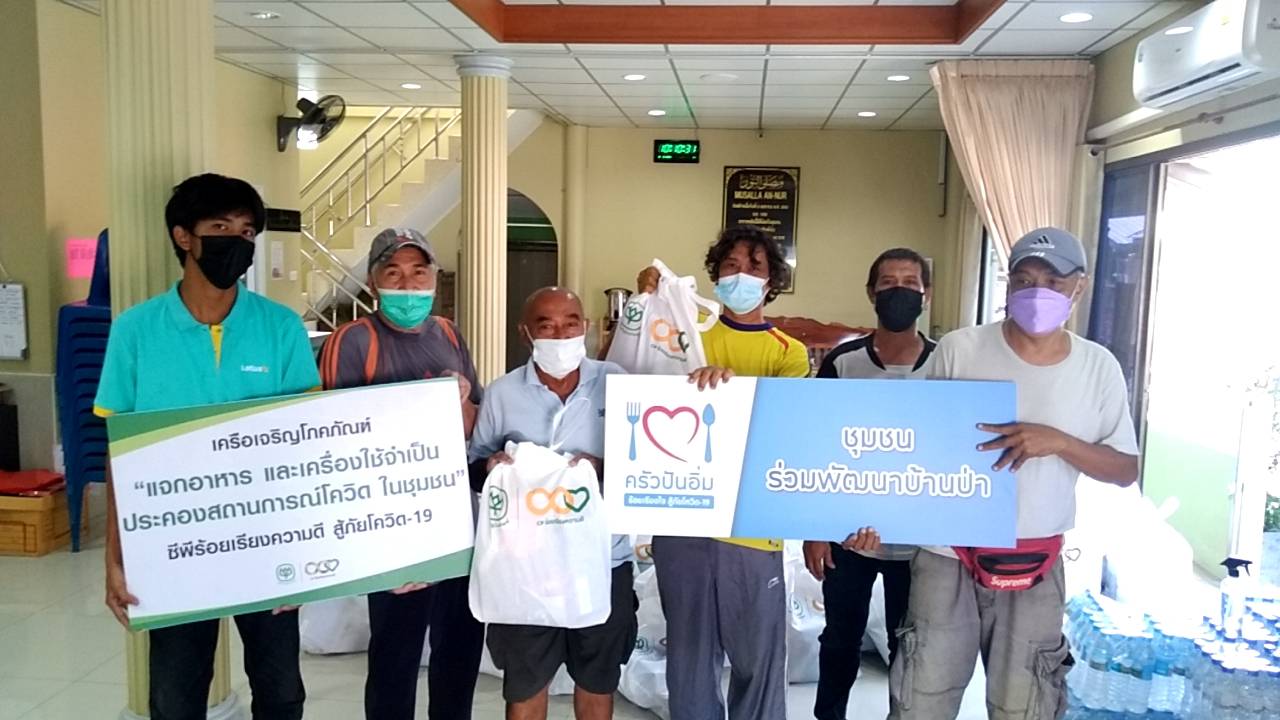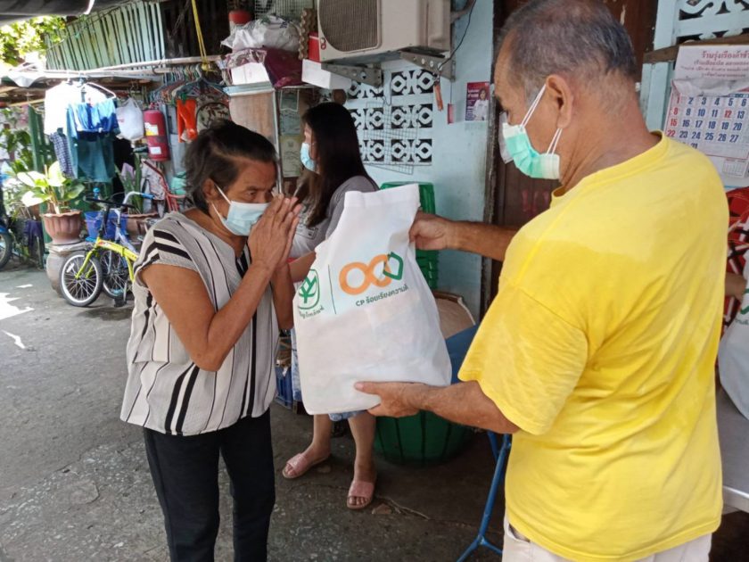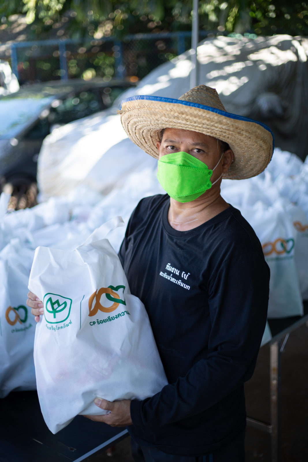 โดยขณะนี้ได้แจกถุงยังชีพไปแล้ว 4,800 ชุด ครอบคลุมชุมชนใหญ่ในกรุงเทพฯ ที่เป็นพื้นที่สีแดงเข้ม ได้แก่ ชุมชนริมคลองลาดพร้าว ชุมชนมักกะสัน และชุมชนตามแนวรถไฟฟ้าแอร์พอร์ตเรียลลิงค์ โดยเครือซีพีและพันธมิตรยังคงเดินหน้าแจกถุงยังชีพที่บรรจุ ข้าวสาร อาหารแห้ง และของใช้จำเป็นอย่างอื่น สามารถเก็บไว้ได้นาน เช่น ปลากระป๋อง นมกล่อง บะหมี่กึ่งสำเร็จรูป ไข่เค็ม น้ำมัน น้ำปลา หน้ากากอนามัย กระดาษชำระ เพื่อให้ผู้ป่วยติดโควิดและผู้กักตัว รวมทั้งผู้ที่ได้รับผลกระทบจากสถานการณ์การแพร่ระบาดของเชื้อไวรัสโควิด-19 ลดภาระและบรรเทาความเดือดร้อนให้คนในชุมชน ลดความเสี่ยงออกจากบ้าน สามารถป้องกันการแพร่ระบาดโควิด-19 ไม่กระจายไปนอกพื้นที่