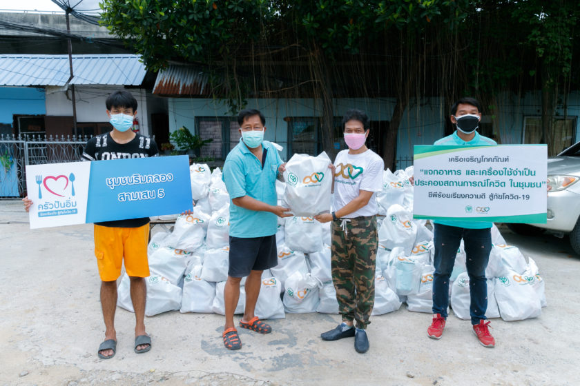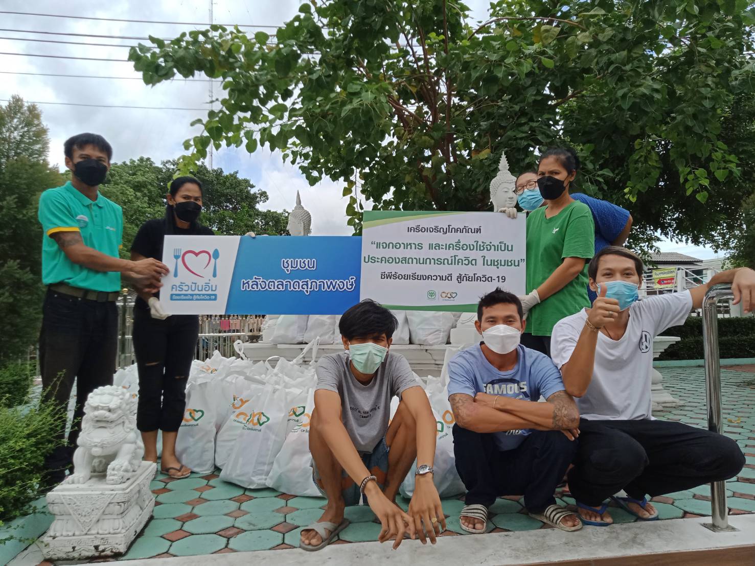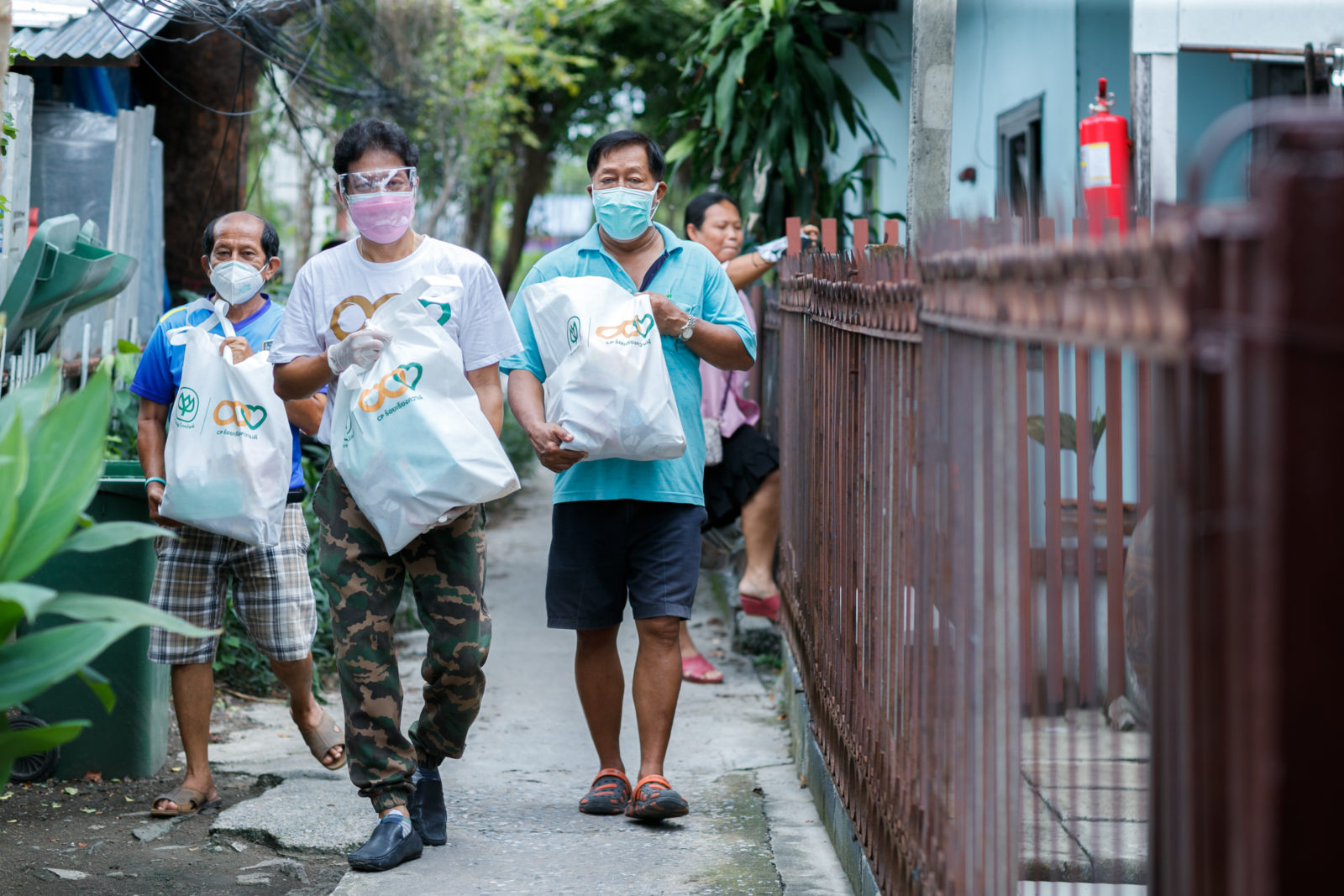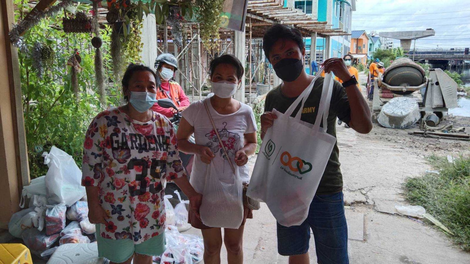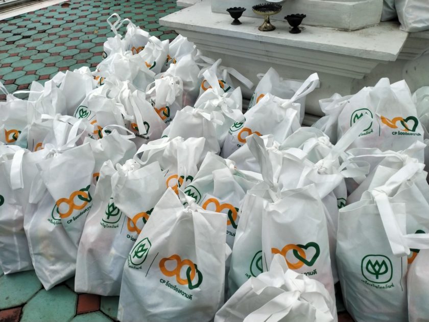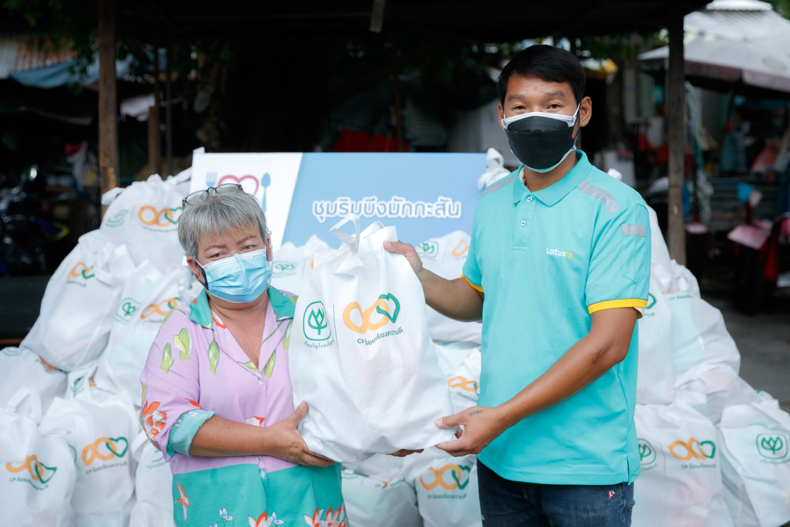โดยขณะนี้ได้แจกถุงยังชีพไปแล้ว 4,800 ชุด ครอบคลุมชุมชนใหญ่ในกรุงเทพฯ ที่เป็นพื้นที่สีแดงเข้ม ได้แก่ ชุมชนริมคลองลาดพร้าว ชุมชนมักกะสัน และชุมชนตามแนวรถไฟฟ้าแอร์พอร์ตเรียลลิงค์ โดยเครือซีพีและพันธมิตรยังคงเดินหน้าแจกถุงยังชีพที่บรรจุ ข้าวสาร อาหารแห้ง และของใช้จำเป็นอย่างอื่น สามารถเก็บไว้ได้นาน เช่น ปลากระป๋อง นมกล่อง บะหมี่กึ่งสำเร็จรูป ไข่เค็ม น้ำมัน น้ำปลา หน้ากากอนามัย กระดาษชำระ เพื่อให้ผู้ป่วยติดโควิดและผู้กักตัว รวมทั้งผู้ที่ได้รับผลกระทบจากสถานการณ์การแพร่ระบาดของเชื้อไวรัสโควิด-19 ลดภาระและบรรเทาความเดือดร้อนให้คนในชุมชน ลดความเสี่ยงออกจากบ้าน สามารถป้องกันการแพร่ระบาดโควิด-19 ไม่กระจายไปนอกพื้นที่