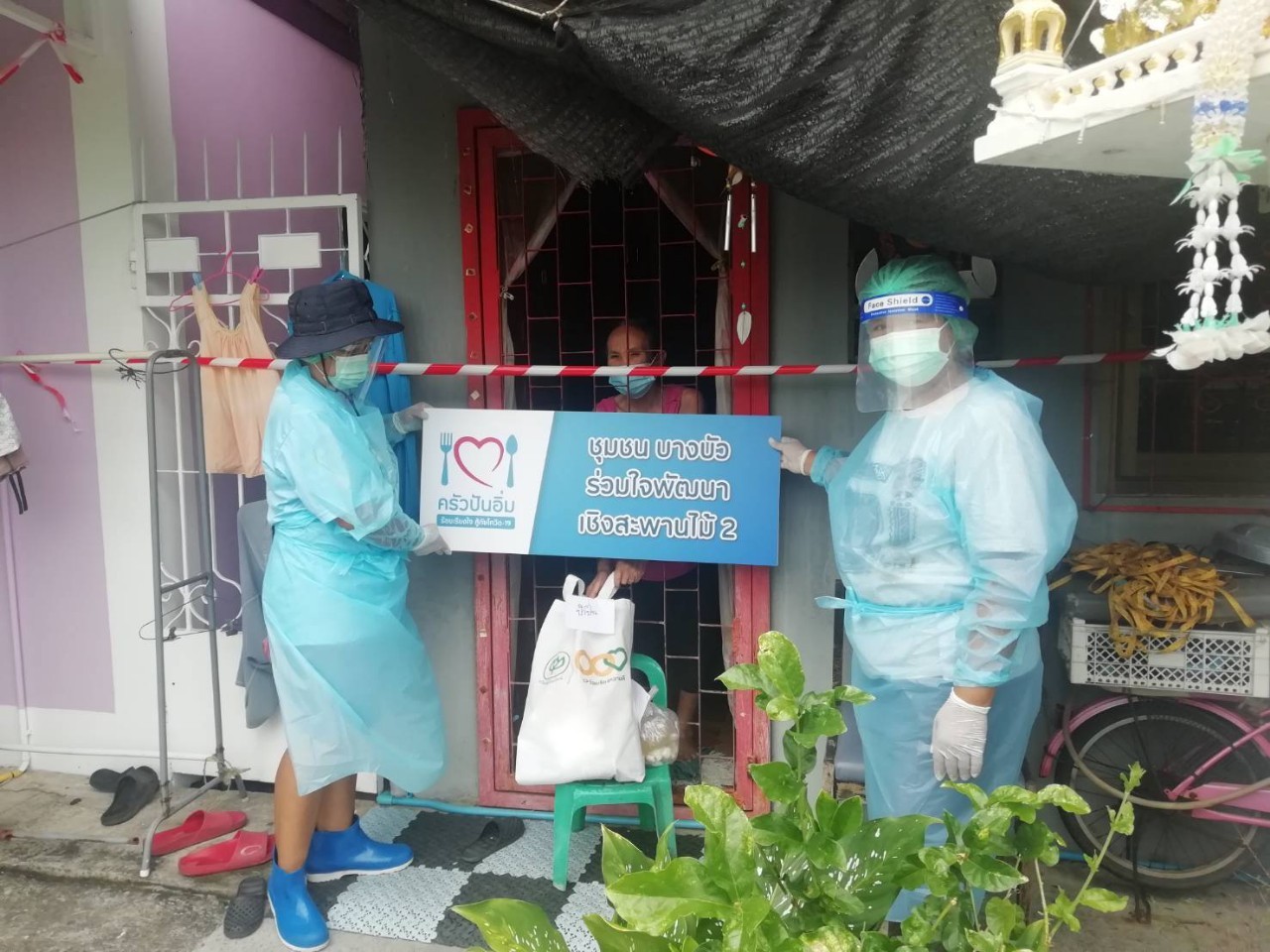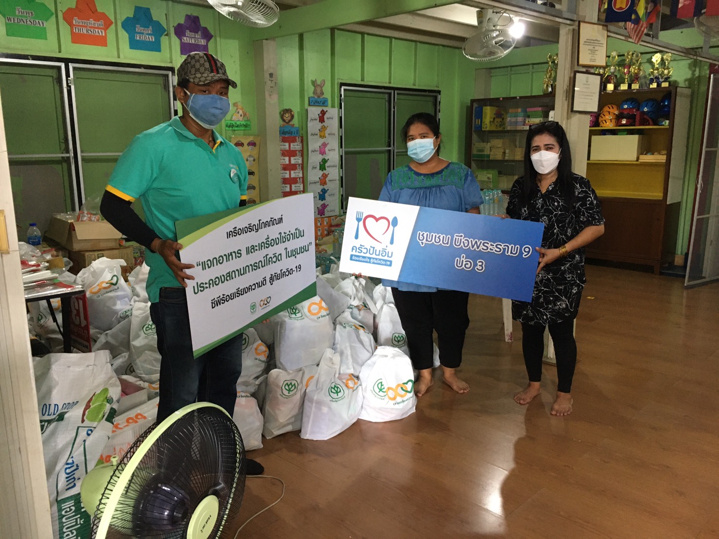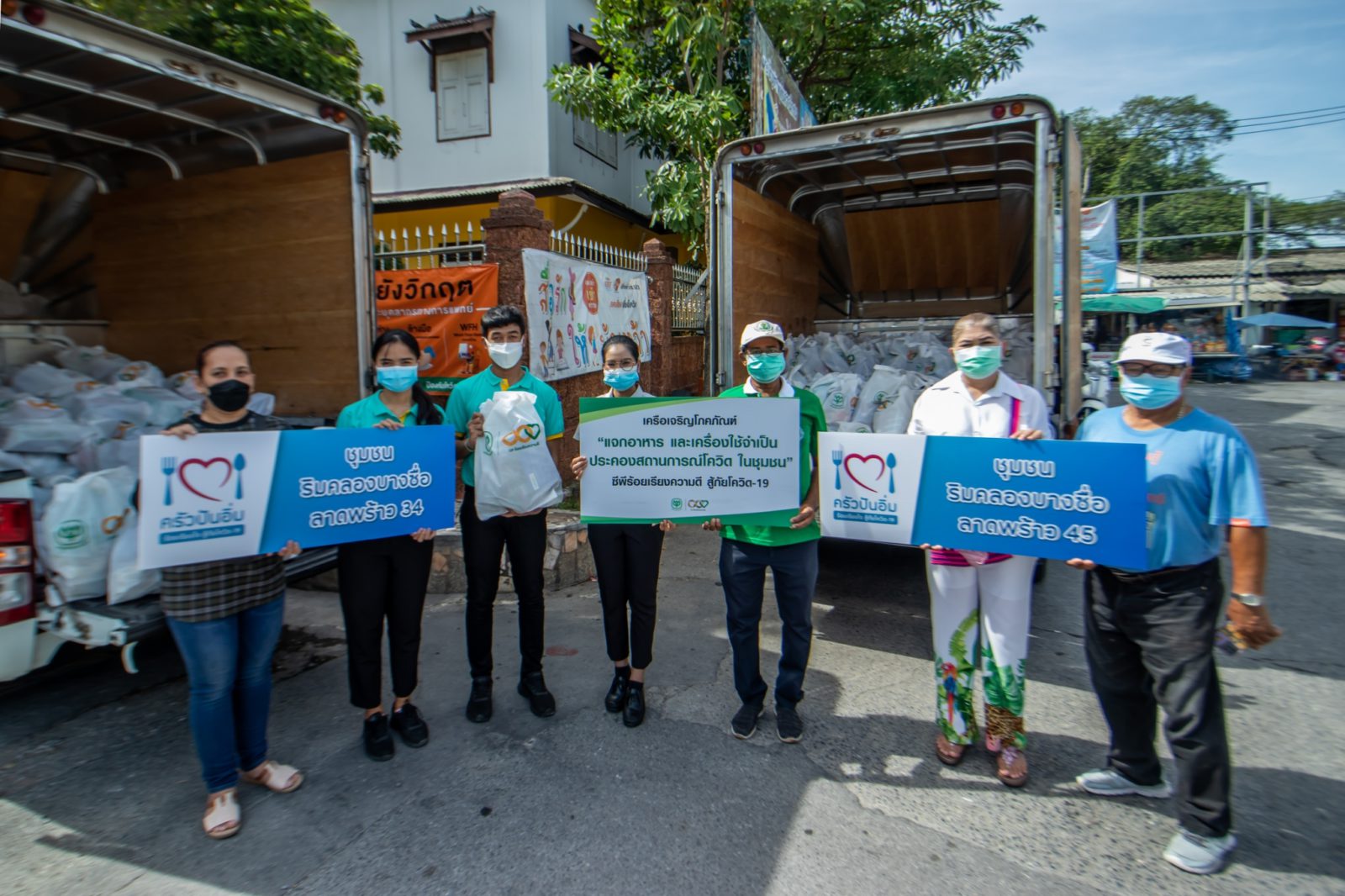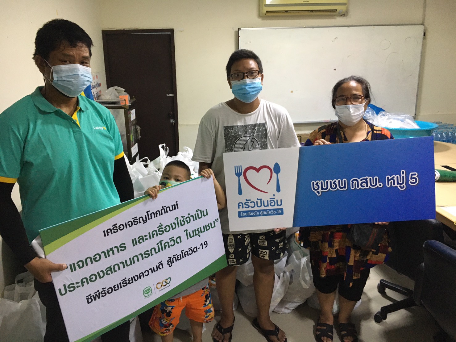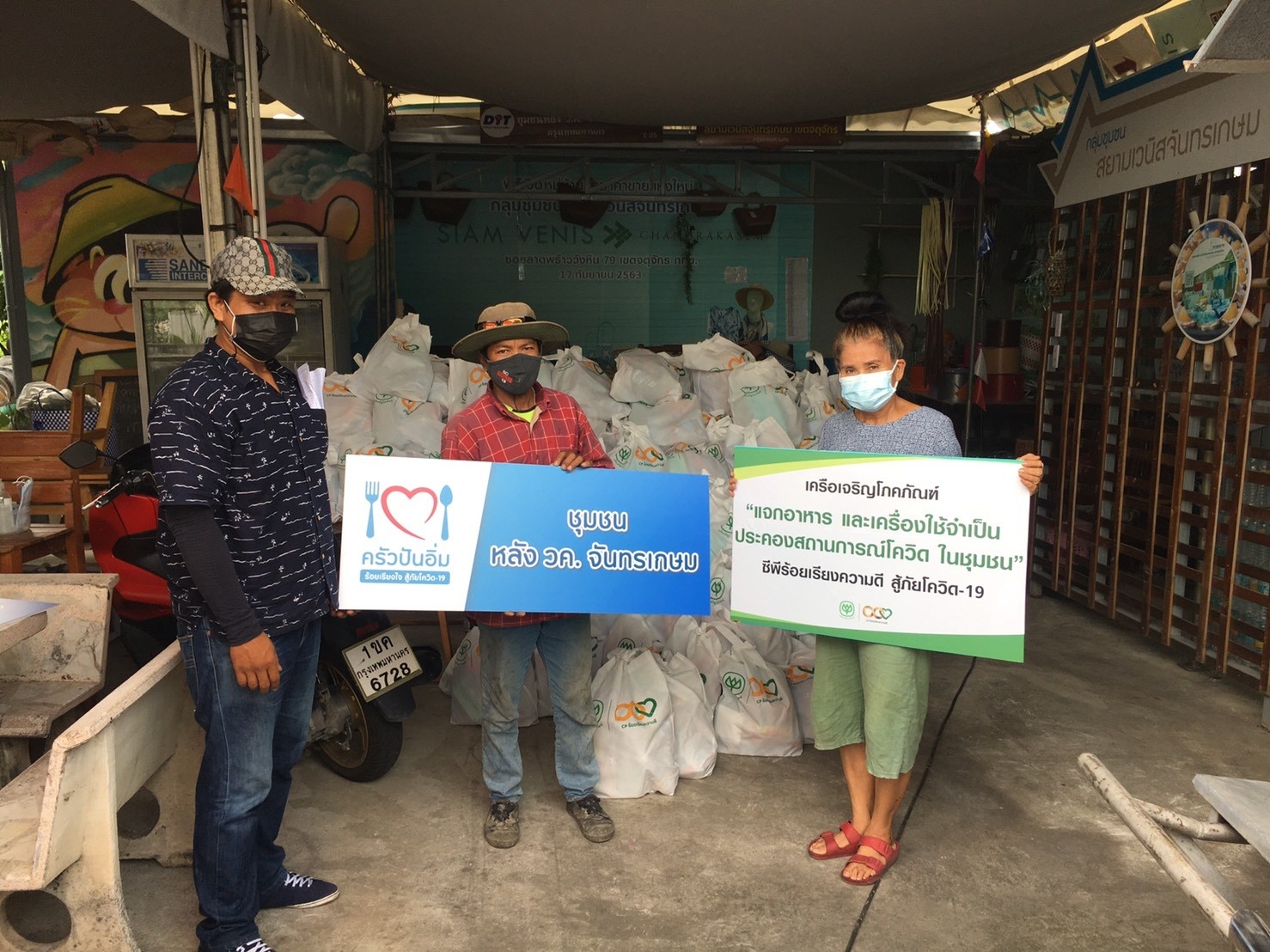 โดยขณะนี้ได้แจกถุงยังชีพไปแล้ว 4,800 ชุด ครอบคลุมชุมชนใหญ่ในกรุงเทพฯ ที่เป็นพื้นที่สีแดงเข้ม ได้แก่ ชุมชนริมคลองลาดพร้าว ชุมชนมักกะสัน และชุมชนตามแนวรถไฟฟ้าแอร์พอร์ตเรียลลิงค์ โดยเครือซีพีและพันธมิตรยังคงเดินหน้าแจกถุงยังชีพที่บรรจุ ข้าวสาร อาหารแห้ง และของใช้จำเป็นอย่างอื่น สามารถเก็บไว้ได้นาน เช่น ปลากระป๋อง นมกล่อง บะหมี่กึ่งสำเร็จรูป ไข่เค็ม น้ำมัน น้ำปลา หน้ากากอนามัย กระดาษชำระ เพื่อให้ผู้ป่วยติดโควิดและผู้กักตัว รวมทั้งผู้ที่ได้รับผลกระทบจากสถานการณ์การแพร่ระบาดของเชื้อไวรัสโควิด-19 ลดภาระและบรรเทาความเดือดร้อนให้คนในชุมชน ลดความเสี่ยงออกจากบ้าน สามารถป้องกันการแพร่ระบาดโควิด-19 ไม่กระจายไปนอกพื้นที่
