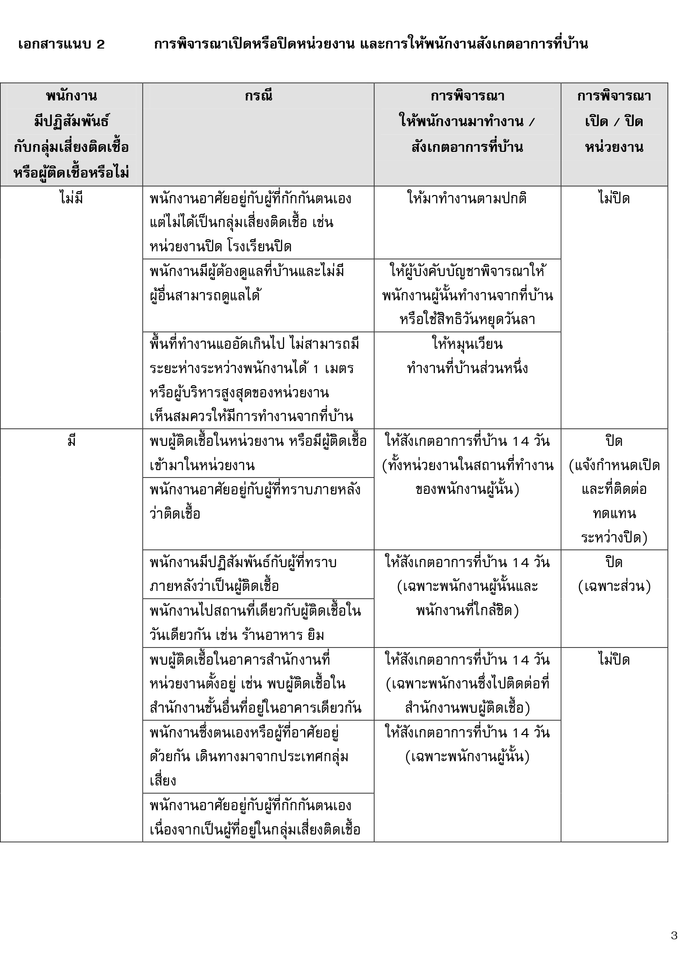 2. การพิจารณาเปิดหรือปิดหน่วยงาน และการให้พนักงานสังเกตอาการที่บ้าน