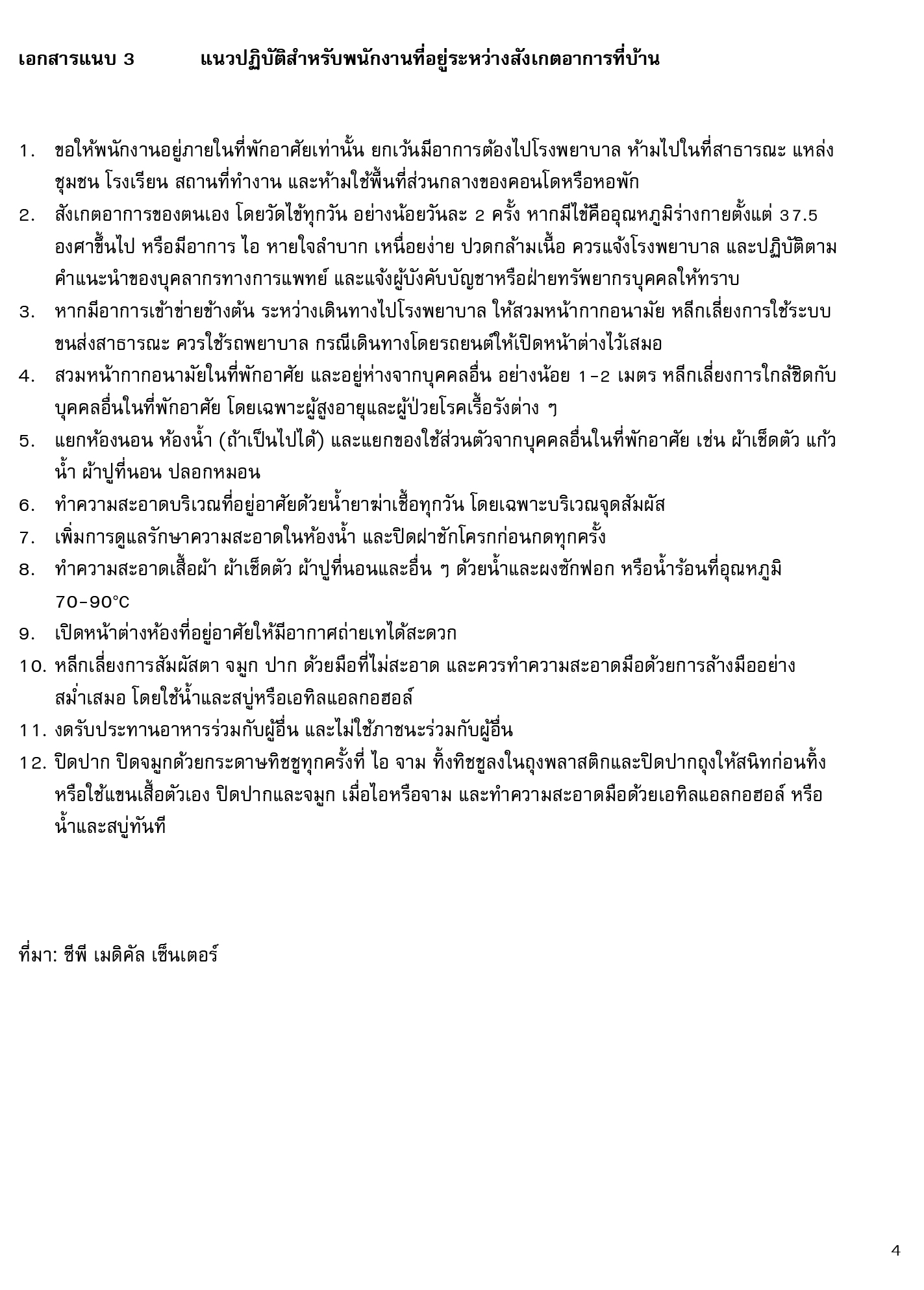 3. แนวปฏิบัติสำหรับพนักงานที่อยู่ระหว่างสังเกตอาการที่บ้าน (ตามเอกสารแนบ 3)
