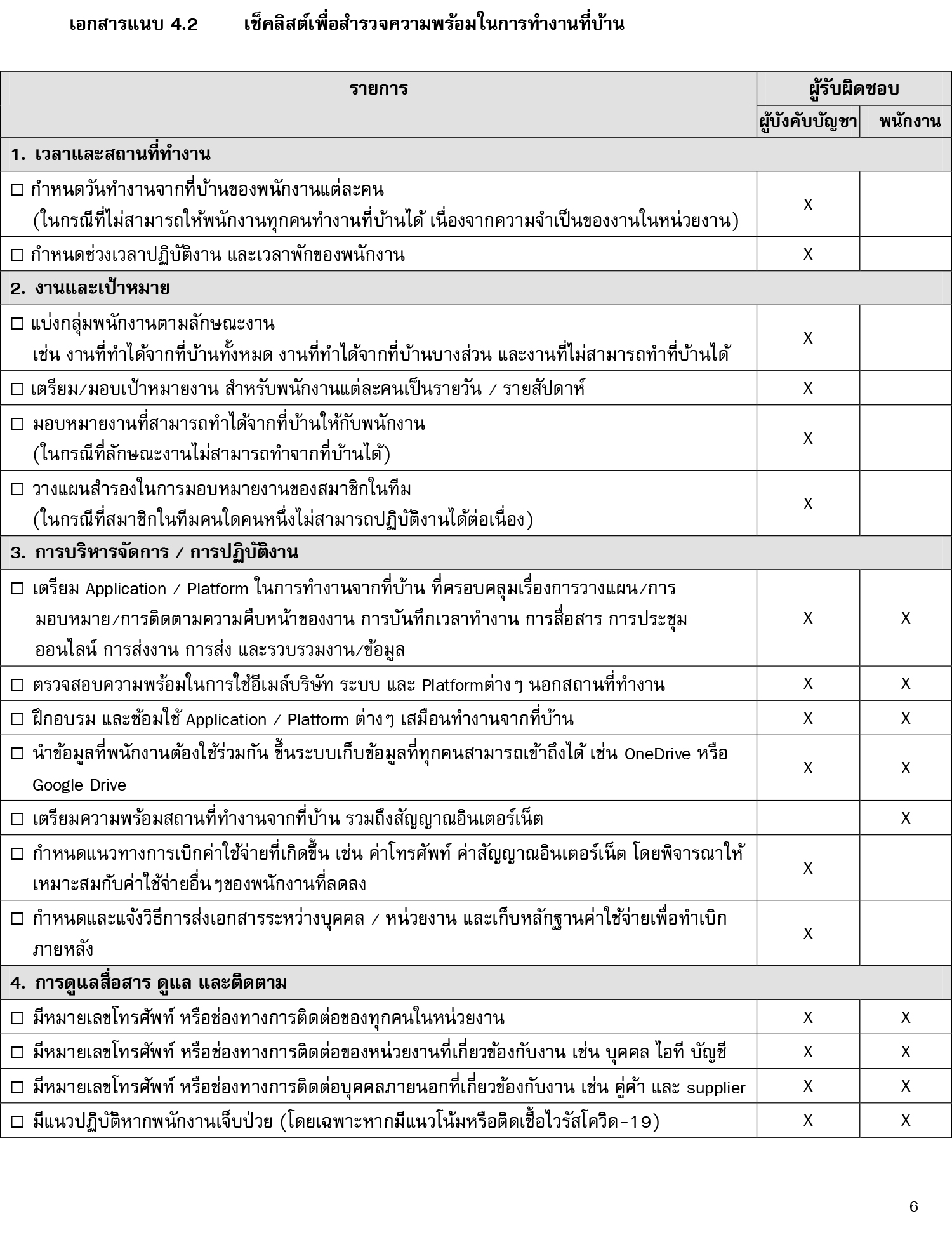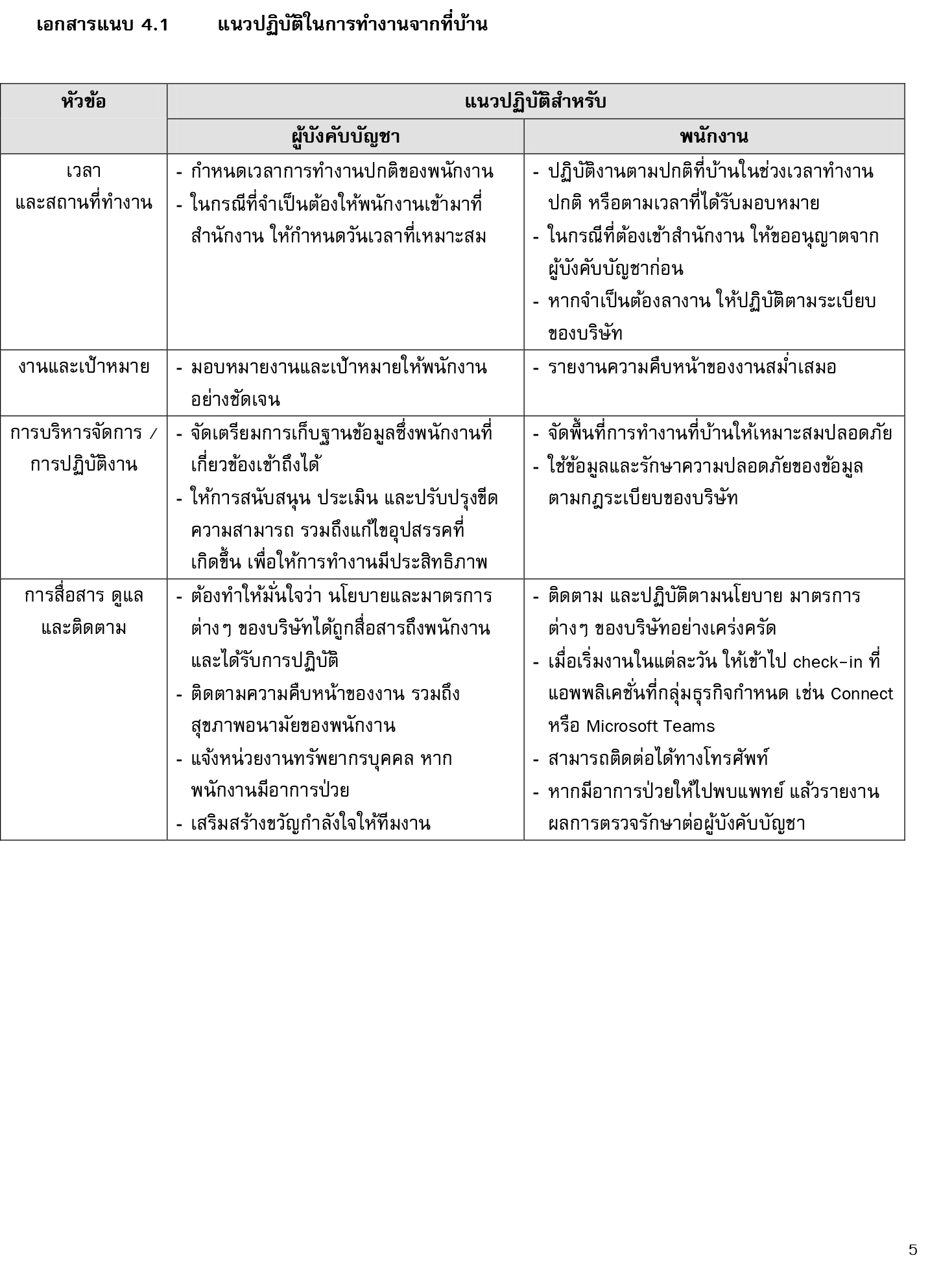 4. แนวปฏิบัติในการทำงานจากที่บ้าน (ตามเอกสารแนบ 4.1 และ 4.2)