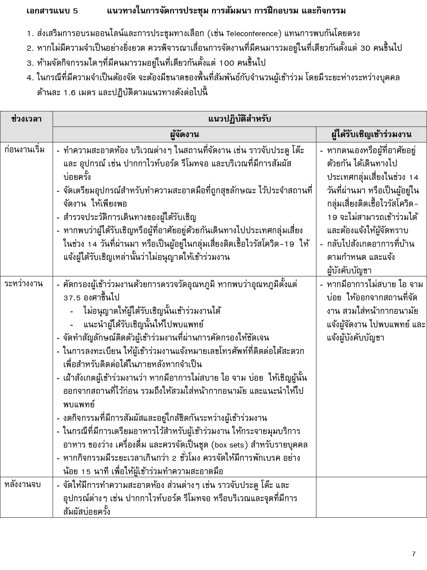 5. แนวปฏิบัติในการจัดประชุม สัมมนา ฝึกอบรม และกิจกรรม (ตามเอกสารแนบ 5)