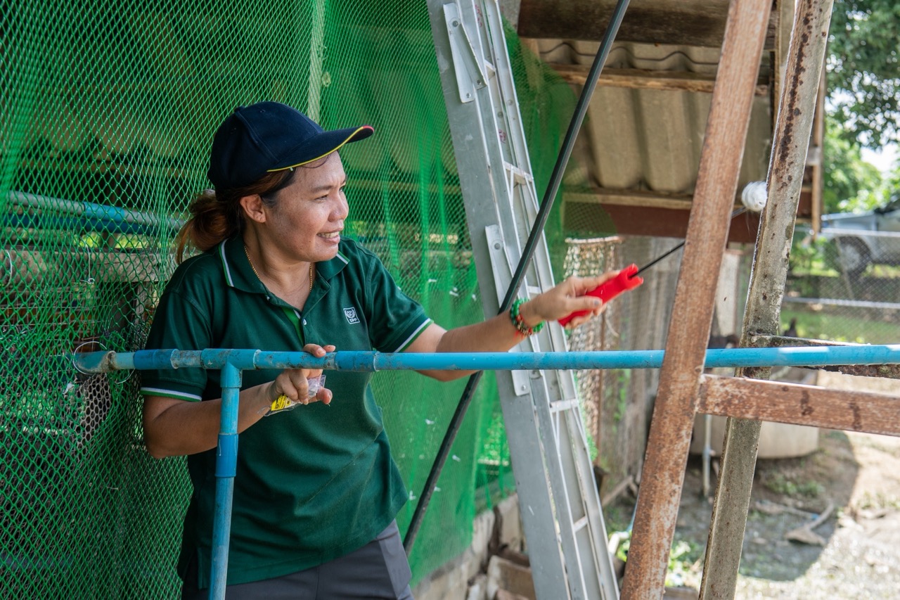 คุณพรทิพย์ ธนะประสพ ผู้ชำนาญการงานธุรการและความยั่งยืนภาคกลางตะวันออก (CSR Leader ภาคกลางตะวันออก) บมจ.เจริญโภคภัณฑ์อาหาร(โรงเพาะฟักลูกกุ้งจ.ตราด) หนึ่งในพนักงาน “ซีพีอาสา” เปิดเผยว่า รู้สึกดีใจและยินดีที่ได้เป็นส่วนหนึ่งในการพัฒนาโครงการดีๆที่ช่วยเหลือเด็กๆและเยาวชนในพื้นที่ห่างไกล วันนี้มีพนักงานมาช่วยกันทำความสะอาดโรงเรือนเลี้ยงไก่ในโรงเรียน โดยมุ่งหวังให้นักเรียนมีสุขอนามัยที่ดี มีไข่ที่สดสะอาดและปลอดภัยไว้บริโภค เพื่อเติบโตอย่างแข็งแรง สมวัย และเป็นกำลังสำคัญในการขับเคลื่อนประเทศชาติในอนาคต