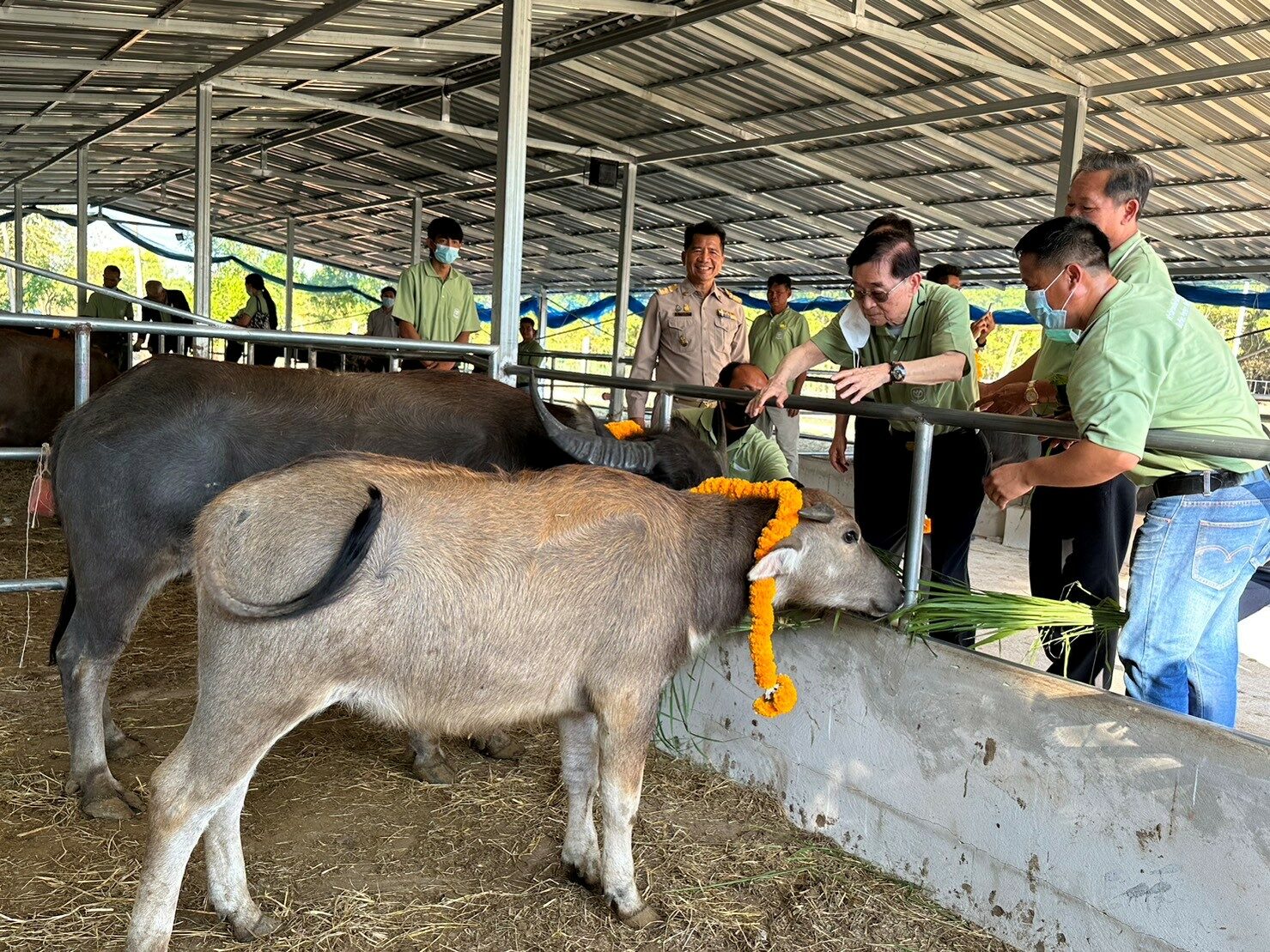 “ซึ่งในปีนี้ ทางเครือเจริญโภคภัณฑ์ ได้จัดพิธีไถ่ชีวิตและมอบกระบือ เป็นจำนวนรวม 111 ตัว แก่เกษตรกรจำนวน 15 ครอบครัว ในพื้นที่จังหวัดเลย บึงกาฬ นครพนม ศรีสะเกษ สุรินทร์ ขอนแก่น ร้อยเอ็ด และจังหวัดยโสธร โดยแม่กระบือเหล่านี้ได้รับการไถ่ชีวิตจากโรงฆ่าสัตว์และตลาดนัดโค กระบือ แล้วจึงนำมาส่งมอบให้เกษตรกรได้นำไปเลี้ยงดูครอบครัวละ 5-8 ตัว ซึ่งเกษตรกรมีอาชีพหลักในการทำนา และทำการเกษตร โดยกระบือในโครงการฯ ทั้งหมดที่มอบให้เกษตรกรจะมีหน่วยงานทั้งภาครัฐและเอกชน ได้แก่กรมปศุสัตว์ มูลนิธิเจริญโภคภัณฑ์ และมูลนิธิเจริญโภคภัณฑ์พัฒนาชีวิตชนบท เป็นผู้ให้คำแนะนำแก่เกษตรกรในเรื่องการเลี้ยงดู และขยายพันธุ์กระบือ รวมไปถึงการดูแลและติดตามผลเพื่อให้เกษตรกรปฏิบัติตามเงื่อนไขที่ตกลงไว้ เพื่อเป็นการอนุรักษ์กระบือและสร้างอาชีพสร้างรายได้ให้เกษตรกร” คุณวัลลภ เจียรวนนท์ กล่าวปิดท้าย