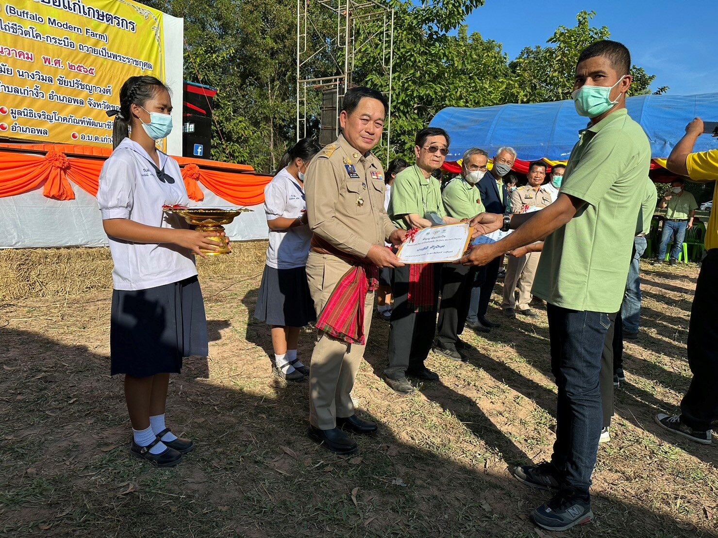 คุณไกรสร กองฉลาด ผู้ว่าราชการจังหวัดขอนแก่น กล่าวว่า “ในนามของจังหวัดขอนแก่น ขอขอบคุณมูลนิธิเจริญโภคภัณฑ์ ที่นำกระบือมามอบให้เกษตรกรในพื้นที่จังหวัดขอนแก่น ซึ่งโครงการนี้เป็นโครงการที่ดีและดำเนินการมาอย่างต่อเนื่อง โดยพื้นฐานคนขอนแก่นมีอาชีพเกษตรกรรม ทำไร่ ทำนาอยู่แล้ว การที่เกษตรกรได้รับกระบือในวันนี้ ถือเป็นการส่งเสริมอาชีพให้เกษตรกรในอีกทางนึง คนโบราณเขาว่าถ้าวันนึงเราเดือดร้อน มีที่ก็ต้องขายที่ มีควายก็ขายควาย ซึ่งการเลี้ยงควายก็ถือเป็นการออมเงิน การเก็บเงินของเกษตรกร นอกจากทางมูลนิธิฯ จะนำกระบือมาให้แล้ว ยังมีการนำความรู้ในเรื่องการเลี้ยงดู การปลูกหญ้า และการผสมเทียม มาให้เกษตรกรด้วย ถือว่าเป็นการถ่ายทอดความรู้สู่เกษตรกรโดยตรง และหวังว่าโครงการ ดีๆ แบบนี้จะต่อยอดและสามารถดำเนินการได้อย่างยั่งยืนอยู่คู่พี่น้องเกษตรกรต่อไป”