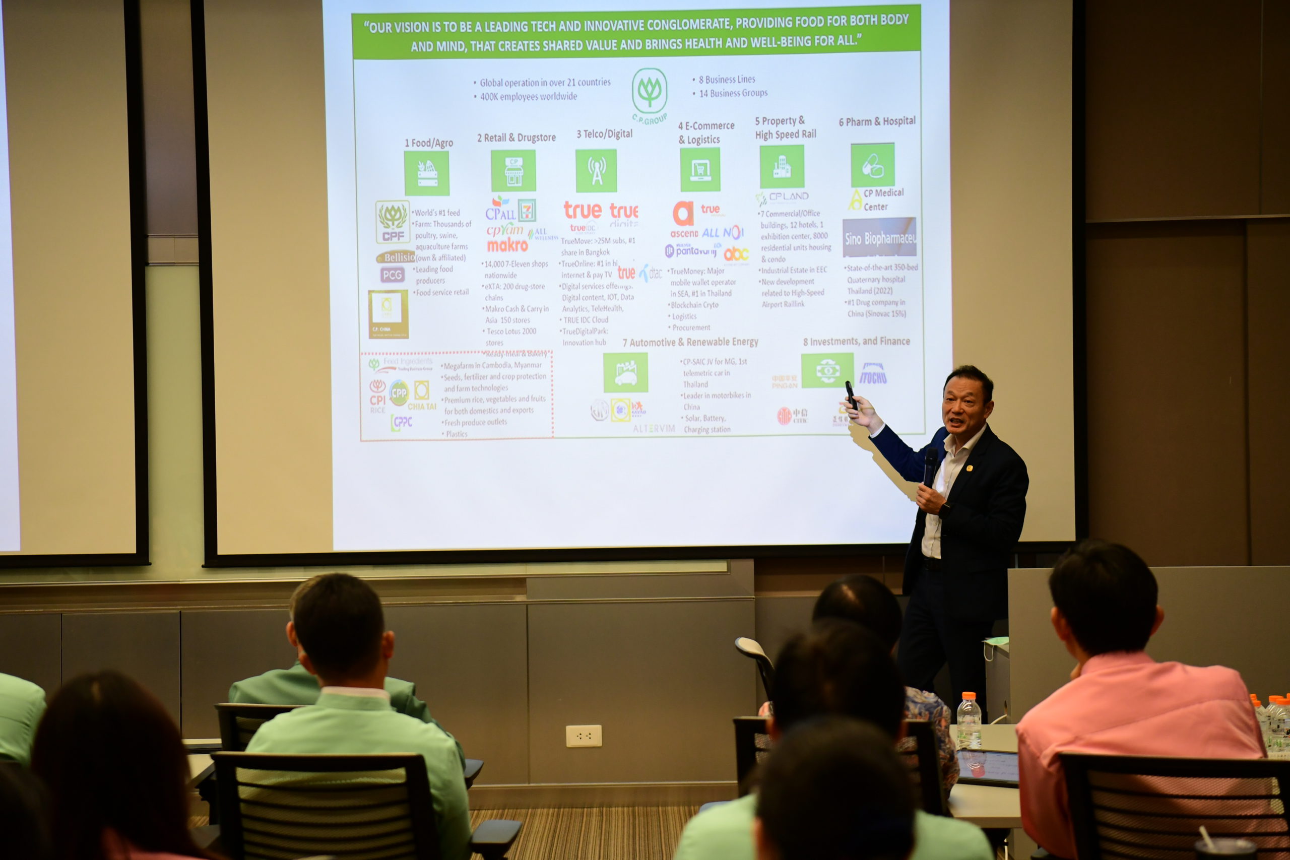 นอกจากนี้ คณะผู้บริหารจากเครือเจริญโภคภัณฑ์ ได้แก่ คุณสรรเสริญ สมัยสุต ประธานสำนักพัฒนาธุรกิจ เครือเจริญโภคภัณฑ์ ร่วมบรรยายในหัวข้อ Agri Tech and Supply Chain Digitalization ดร.จอห์น ยู จุน เจียง ประธานเจ้าหน้าที่บริหารฝ่ายเทคโนโลยี การวิจัยและพัฒนา เครือเจริญโภคภัณฑ์ บรรยายในหัวข้อ CP Innovation และ ดร.เทอดศักดิ์ สุวรรณเทพ รองกรรมการผู้จัดการอาวุโส งานวิจัยเมล็ดพันธุ์ข้าวโพด อาหารสัตว์ และประกันคุณภาพ และคุณยุทธชัย ปัทมานนท์ รองกรรมการผู้จัดการฝ่ายพัฒนาธุรกิจ  บริษัท เจริญโภคภัณฑ์โปรดิ๊วส จำกัด บรรยายในหัวข้อ Mega Farm & Seed Technology at Global Level