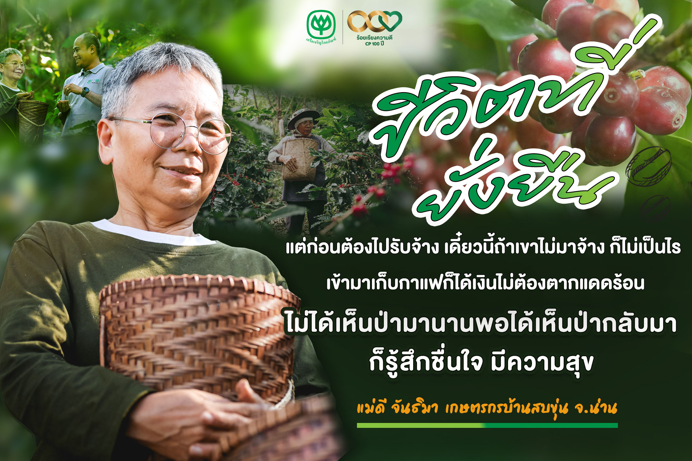 คุณดี จันธิมา หรือ แม่ดี เป็นหนึ่งในเกษตรที่เข้าร่วมโครงการสบขุ่นโมเดล กาแฟสร้างป่า สร้างราย ที่ อ.ท่าวังผา จ.น่าน เป็นระยะเวลากว่า 5 ปี กล่าวว่า