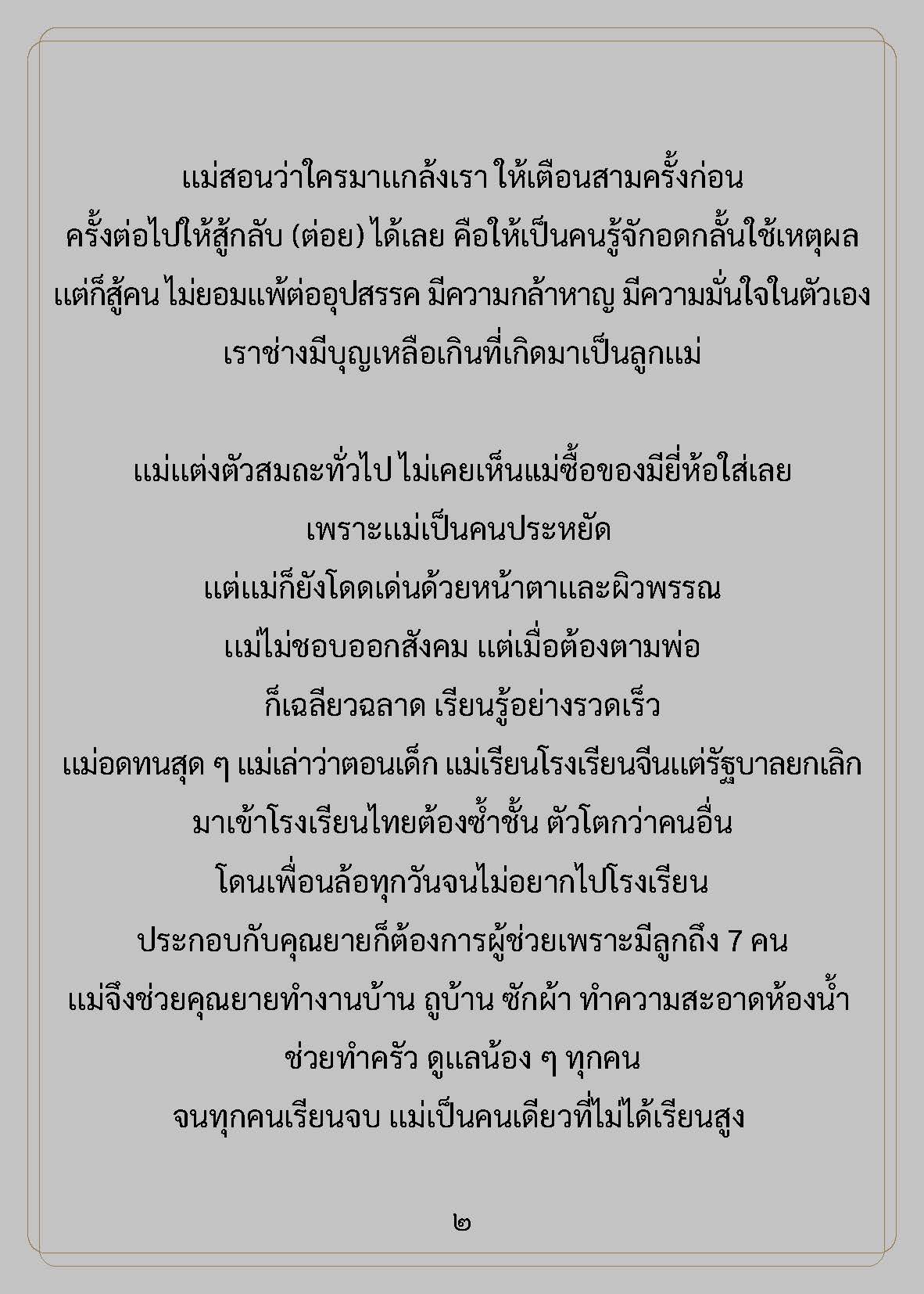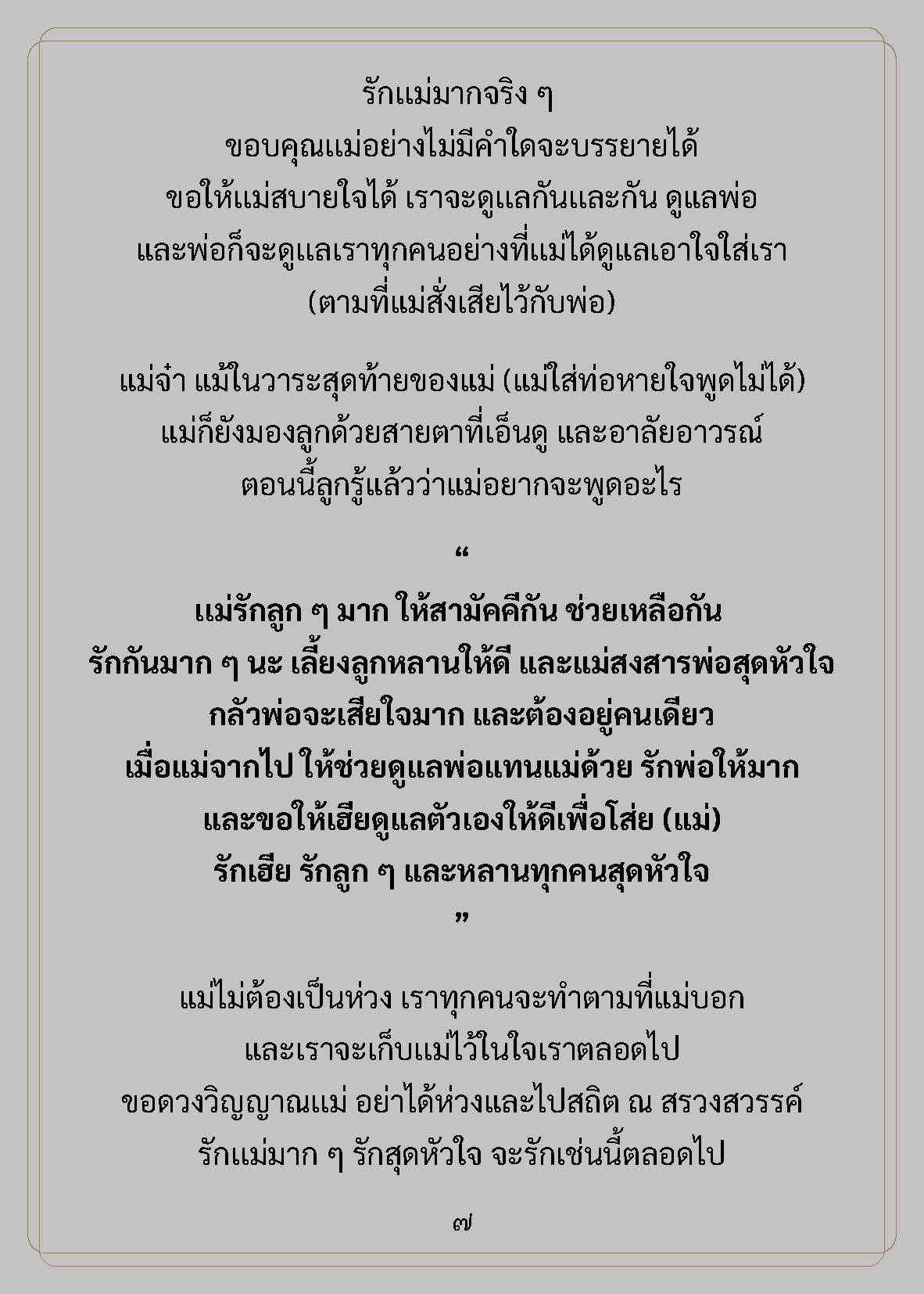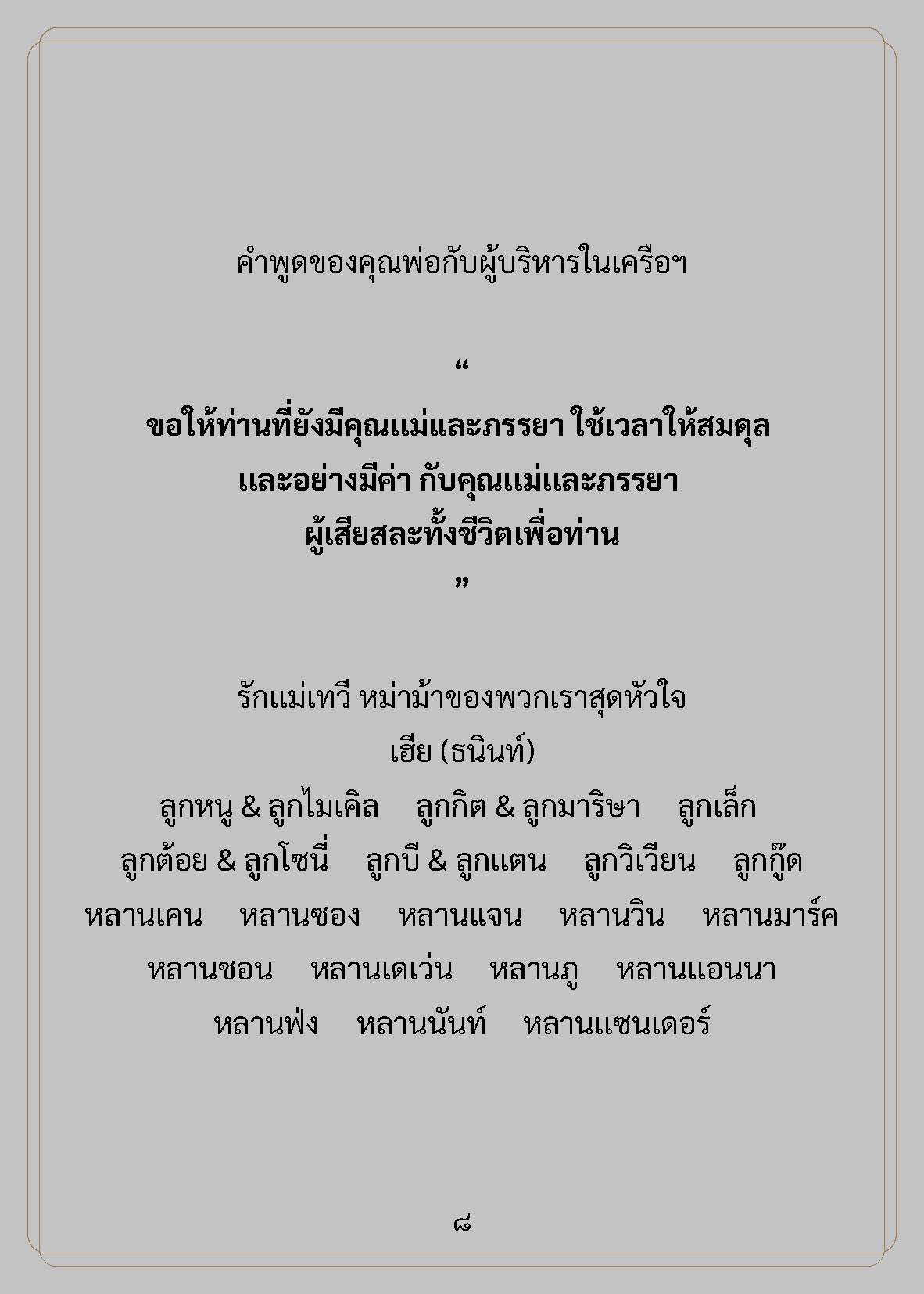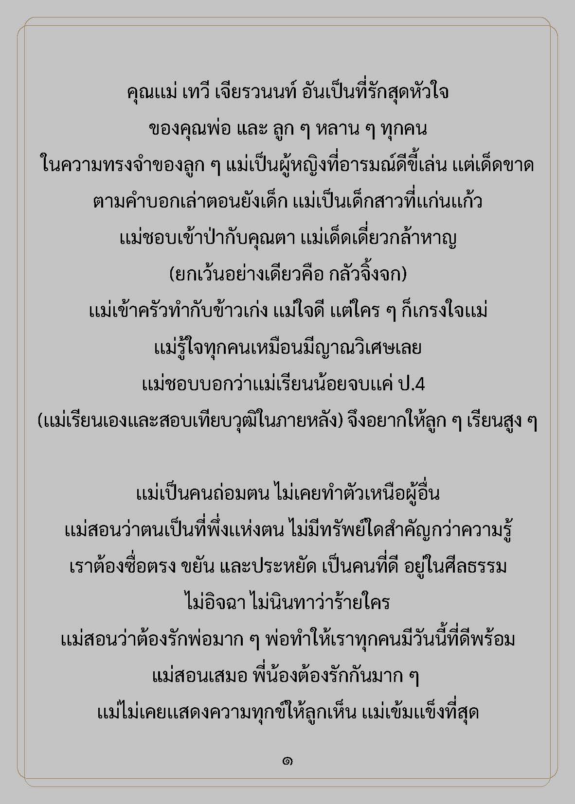 ระลึกถึง คุณเเม่เทวี เจียรวนนท์ อันเป็นที่รักสุดหัวใจ จากครอบครัวเจียรวนนท์