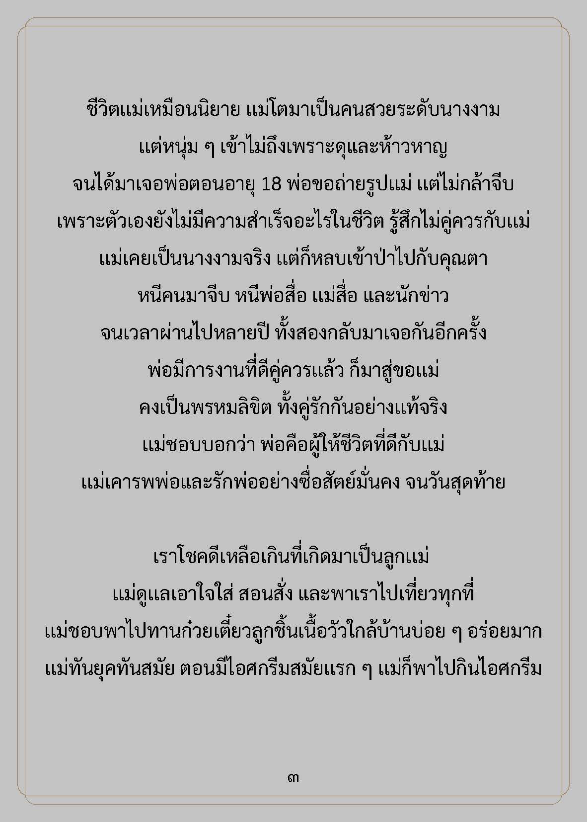 ความงดงามจากรักของเเม่ ผู้เป็นเเบบอย่างความเข็มเเข็ง และหลักคำสอนให้ยึดมั่นในความดี