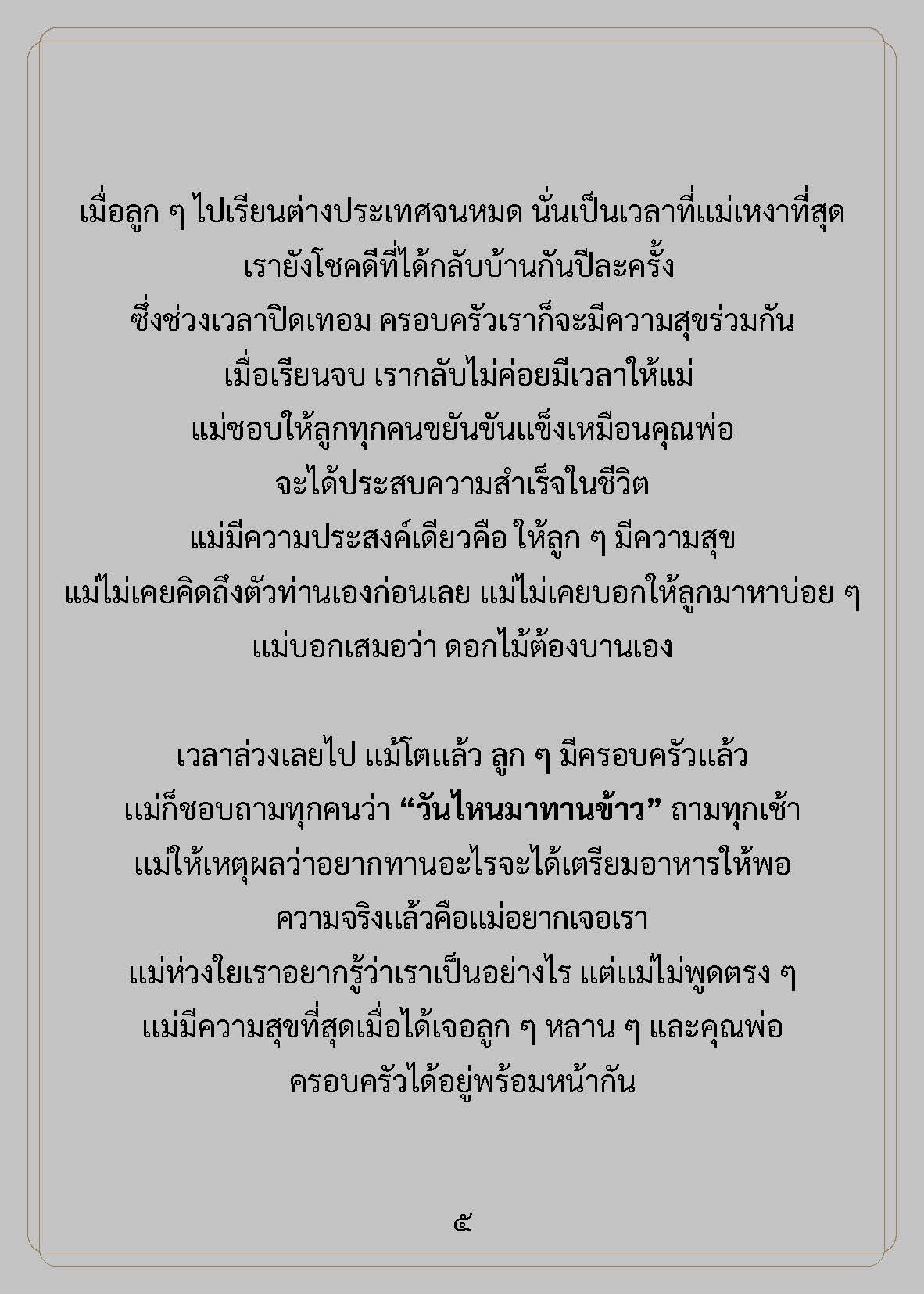 รักพ่อและพี่น้องให้มาก ความสุขของเเม่คือการเห็นครอบครัวมีความสุข