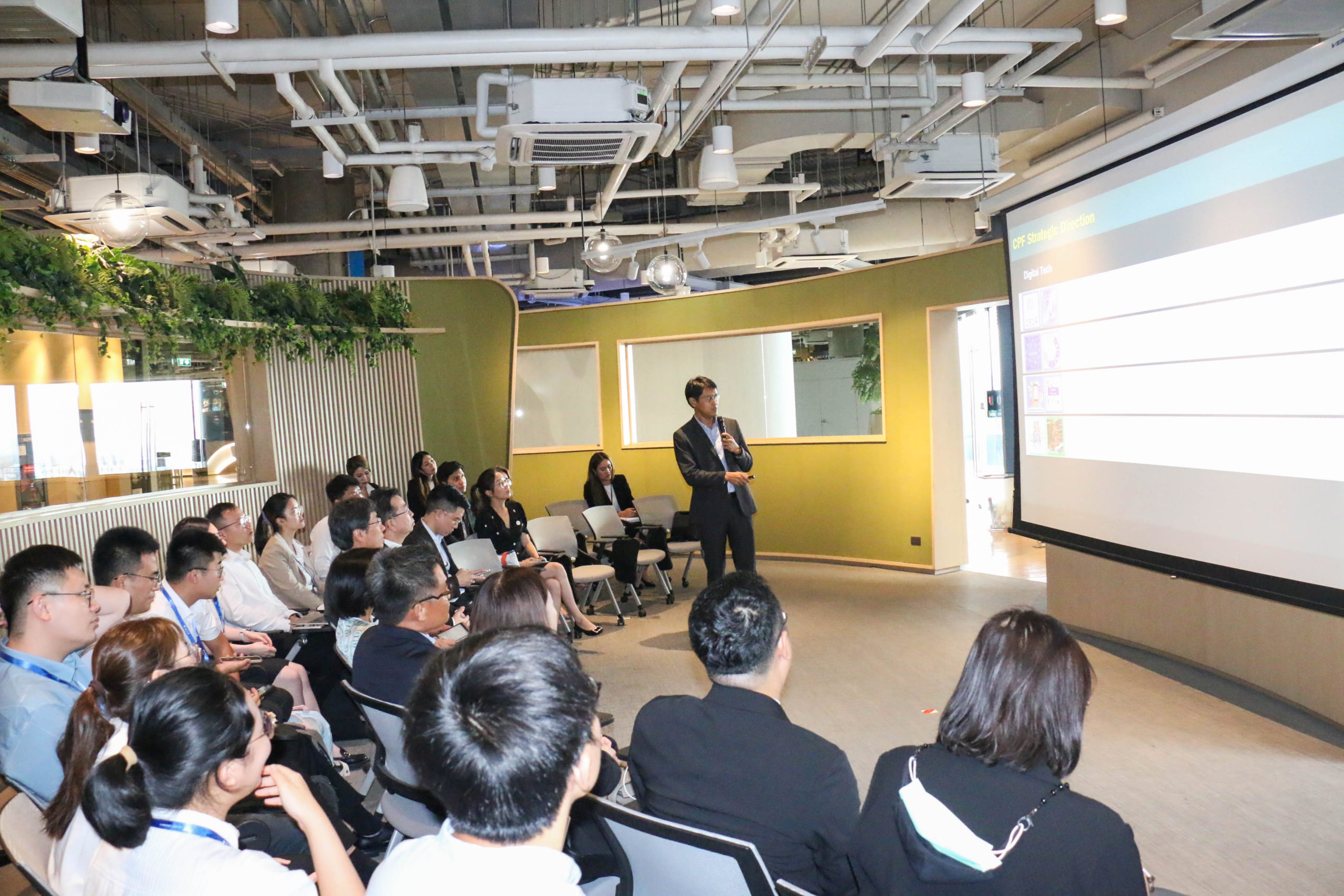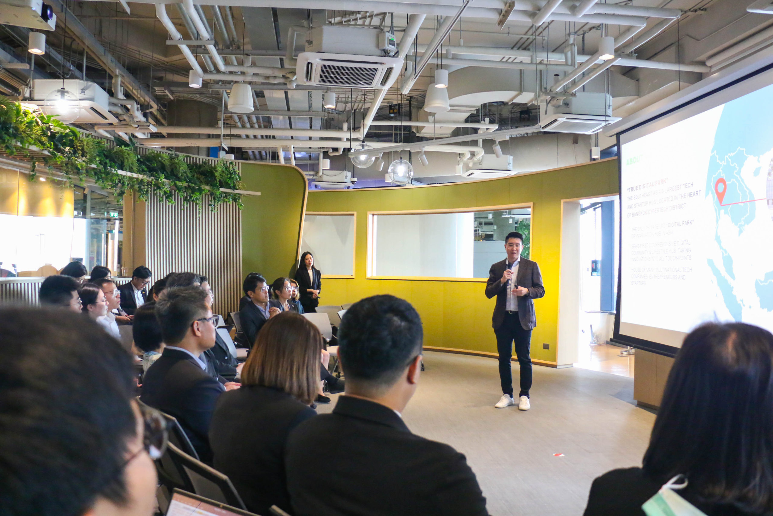 หลังจากนั้นได้มีแลกเปลี่ยนเรียนรู้ศึกษาดูงานของเครือเจริญโภคภัณฑ์ โดย ดร.ธาริต นิมมานวุฒิพงษ์ ผู้จัดการทั่วไป ทรู ดิจิทัล พาร์ค ได้กล่าวถึงที่มาของ ทรู ดิจิทัล พาร์ค ที่เป็นแหล่งบ่มเพาะสตาร์ทอัพ และสร้างสรรค์นวัตกรรมดิจิทัลที่มีขนาดใหญ่ในภูมิภาคเอเชียตะวันออกเฉียงใต้ ซึ่งจะสนับสนุนให้ประเทศไทยเป็นศูนย์กลางของ Tech Startup ในระดับภูมิภาค โดย TDPK โดดเด่นด้วยขนาดกว่า 230,000 ตารางเมตร และพร้อมด้วยระบบนิเวศสำหรับสตาร์ทอัพ (Startup Ecosystem) ที่สมบูรณ์แบบครบวงจรในพื้นที่เดียว