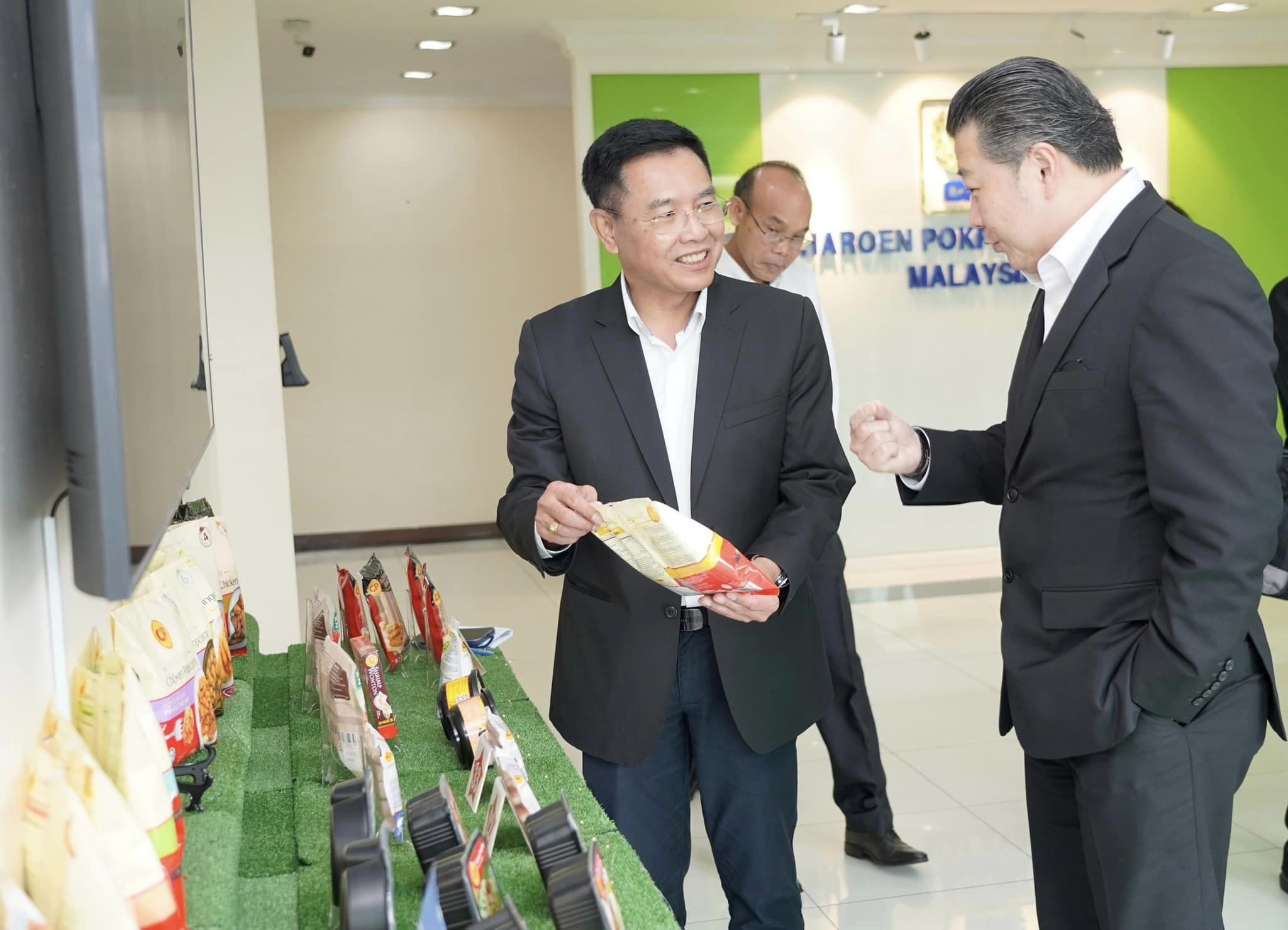 CP-CPF Chairman Soopakij Chearavanont, accompanied by Pong Wisetpaitoon, Chairman of Aquaculture Business in India, Sompop Mongkolpitaksuk, Chairman of Agro Business in Malaysia, and executives from CP Group, visited CPF Malaysia. The distinguished guests were warmly received by CPF Malaysia’s top management, including Montree Srihamontree, President of Agro Business, and Wirat Phothiphan, President of Aquaculture Business.