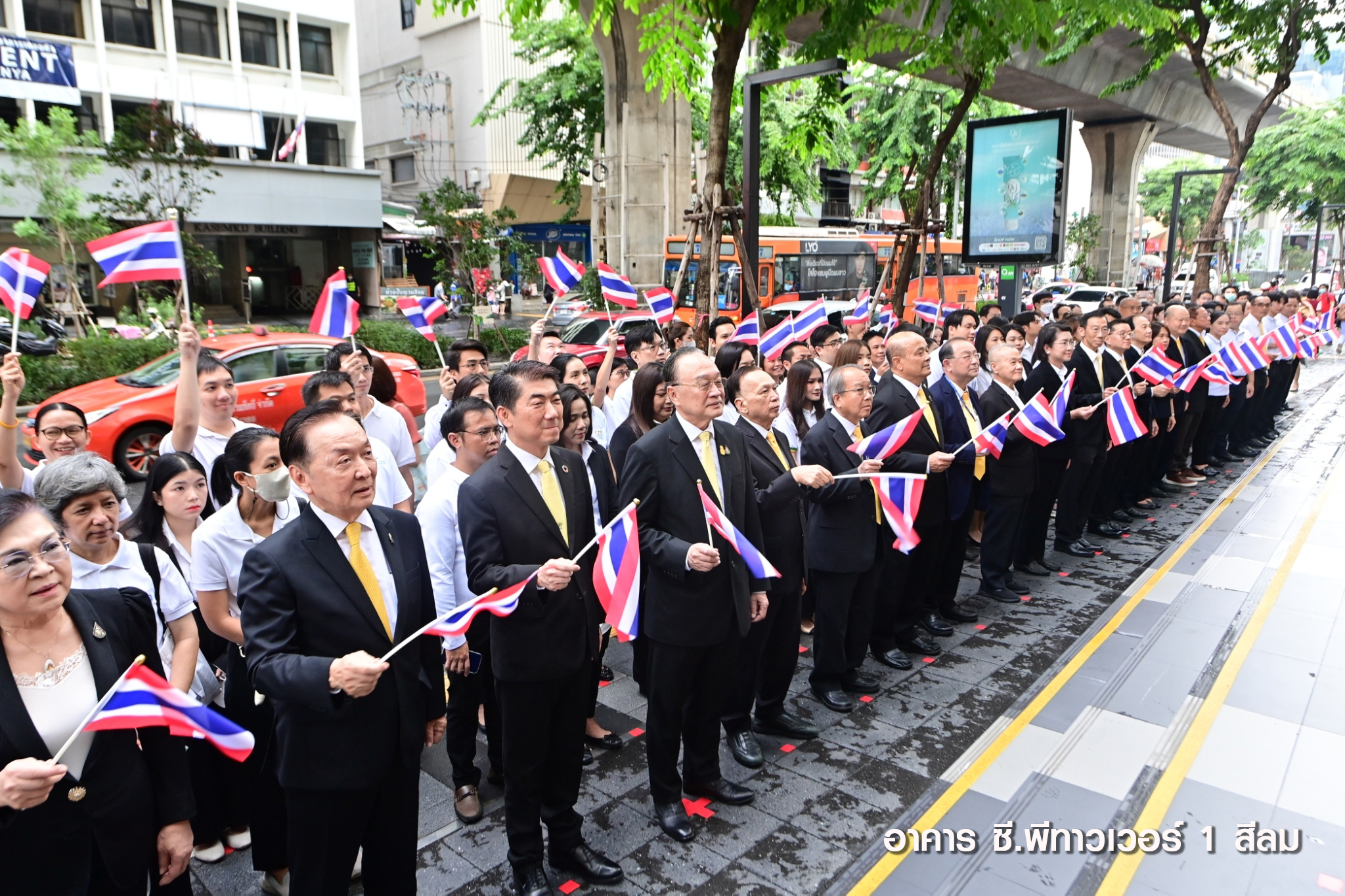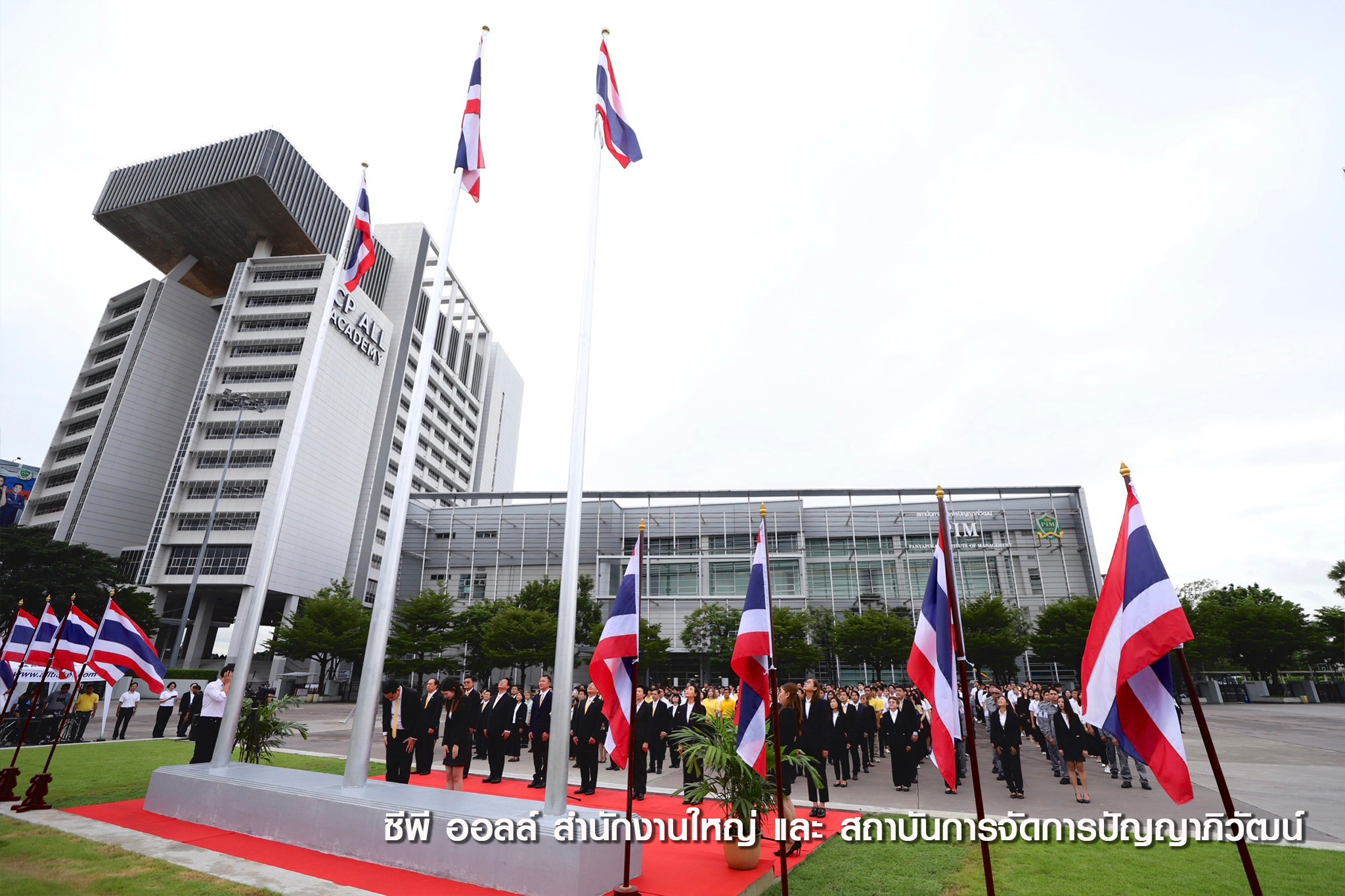 28 กันยายน 2566 – เครือเจริญโภคภัณฑ์ (ซีพี) และ บริษัทในเครือฯ ซีพีเอฟ ซีพี ออลล์ ทรู ซีพีแอ็กซ์ตร้า และกลุ่มธุรกิจอื่น รวมพลังแสดงความกตัญญูต่อแผ่นดินไทย ร่วมใจจัดกิจกรรมรำลึกวันพระราชทานธงชาติไทย ครบรอบ 106 ปี ตามสถานที่สำคัญของบริษัท สอดรับกับกิจกรรม เมื่อวันที่ 18 กันยายน 2566 ที่ผ่านมา ณ สถาบันผู้นำเครือเจริญโภคภัณฑ์ ท่านประธานอาวุโสธนินท์ เจียรวนนท์ พร้อมด้วย คุณสุภกิต เจียรวนนท์ ประธานกรรมการ คุณศุภชัย เจียรวนนท์ ประธานคณะผู้บริหาร และผู้บริหารระดับสูงจากทุกกลุ่มธุรกิจของเครือเจริญโภคภัณฑ์ร่วมพิธีเชิญธงชาติไทยขึ้นสู่ยอดเสา พร้อมกล่าวคำปฏิญาณตนและร้องเพลงธงชาติอย่างพร้อมเพรียงกัน ด้วยความภาคภูมิใจและแสดงออกถึงความจงรักภักดี ที่มีต่อชาติ ศาสนา และพระมหากษัตริย์