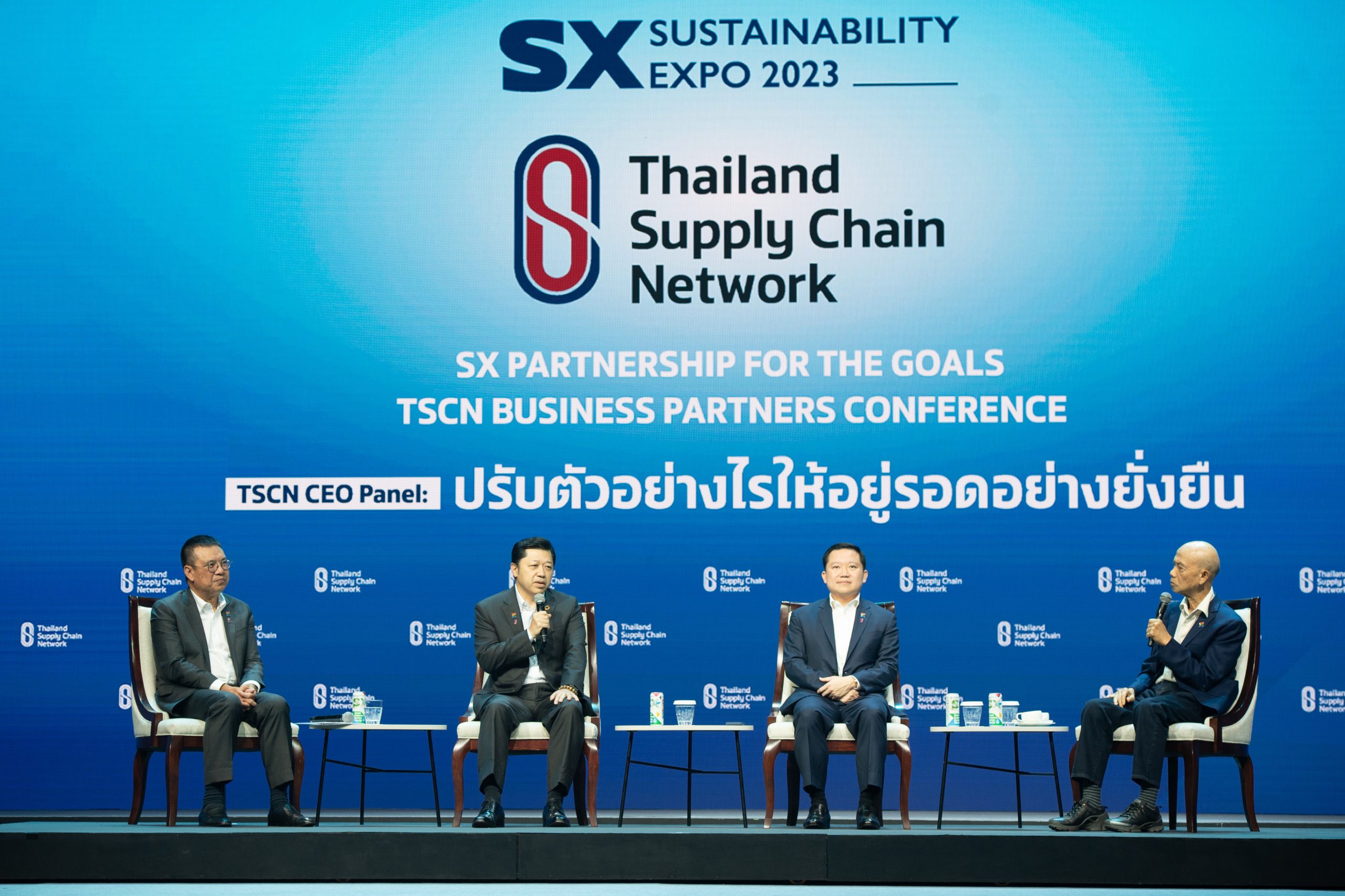 7 ตุลาคม 2566 – คุณศุภชัย เจียรวนนท์ ประธานคณะผู้บริหาร บริษัท เครือเจริญโภคภัณฑ์  จำกัด หรือ ซีพี ร่วมแสดงวิสัยทัศน์บนเวทีเสวนา “TSCN CEO PANEL: ปรับตัวอย่างไร ให้อยู่รอดอย่างยั่งยืน” ในงานมหกรรมความยั่งยืนที่ใหญ่ที่สุดในอาเซียน SUSTAINABILITY EXPO 2023 (SX2023)  พร้อมผู้บริหารองค์กรชั้นนำ คุณฐาปน สิริวัฒนภักดี กรรมการผู้อำนวยการใหญ่ บริษัท ไทยเบฟเวอเรจ จำกัด (มหาชน)  และคุณรุ่งโรจน์ รังสิโยภาส กรรมการผู้จัดการใหญ่เอสซีจี  โดยมี คุณสุทธิชัย หยุ่น เป็นผู้ดำเนินรายการ เพื่อนำเสนอแนวทางด้านการพัฒนาที่ยั่งยืนมาปรับใช้ในการบริหารธุรกิจ รวมถึงแบ่งปันประสบการณ์จากการดำเนินงานด้านการพัฒนาที่ยั่งยืน หวังพัฒนาขีดความสามารถของผู้นำองค์กรภาคธุรกิจอื่นๆ ให้สามารถดำเนินธุรกิจได้อย่างยั่งยืนไปด้วยกัน ทั้งนี้ภายในงานมีผู้บริหารองค์กรชั้นนำ นักธุรกิจ ผู้ประกอบการหลายหลายสาขาให้ความสนใจเข้าร่วมฟังกว่า 1,000 คน ณ SX GRAND PLENARY HALL ศูนย์การประชุมแห่งชาติสิริกิติ์