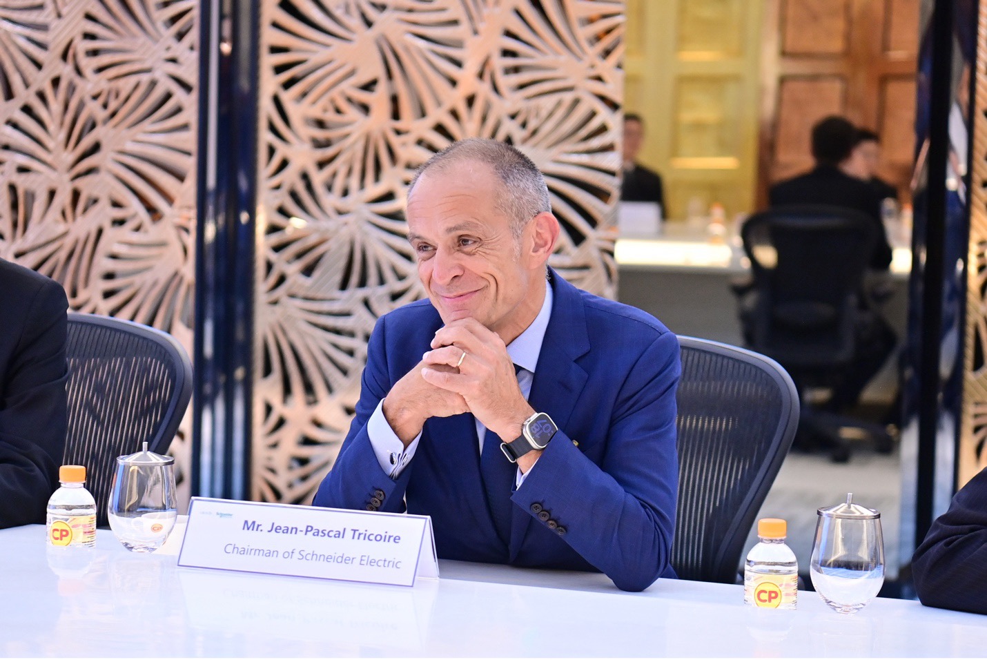 ท่านประธานอาวุโส ธนินท์ เจียรวนนท์ ต้อนรับ ฌอง ปาสคาล ตริคัวร์ ประธานและซีอีโอ ชไนเดอร์ อิเล็คทริค สานความสัมพันธ์บริษัทผลิตภัณฑ์เทคโนโลยีนวัตกรรมและการบริการข้อมูลระดับโลก