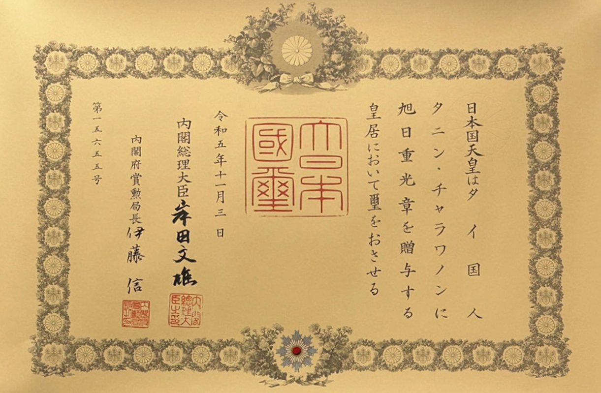 ท่านประธานอาวุโสธนินท์ เจียรวนนท์ ได้รับเครื่องราชอิสริยาภรณ์ “The Order of the Rising Sun, Gold and Silver Star” สำหรับชาวต่างชาติประจำฤดูใบไม้ร่วง พ.ศ. 2566
