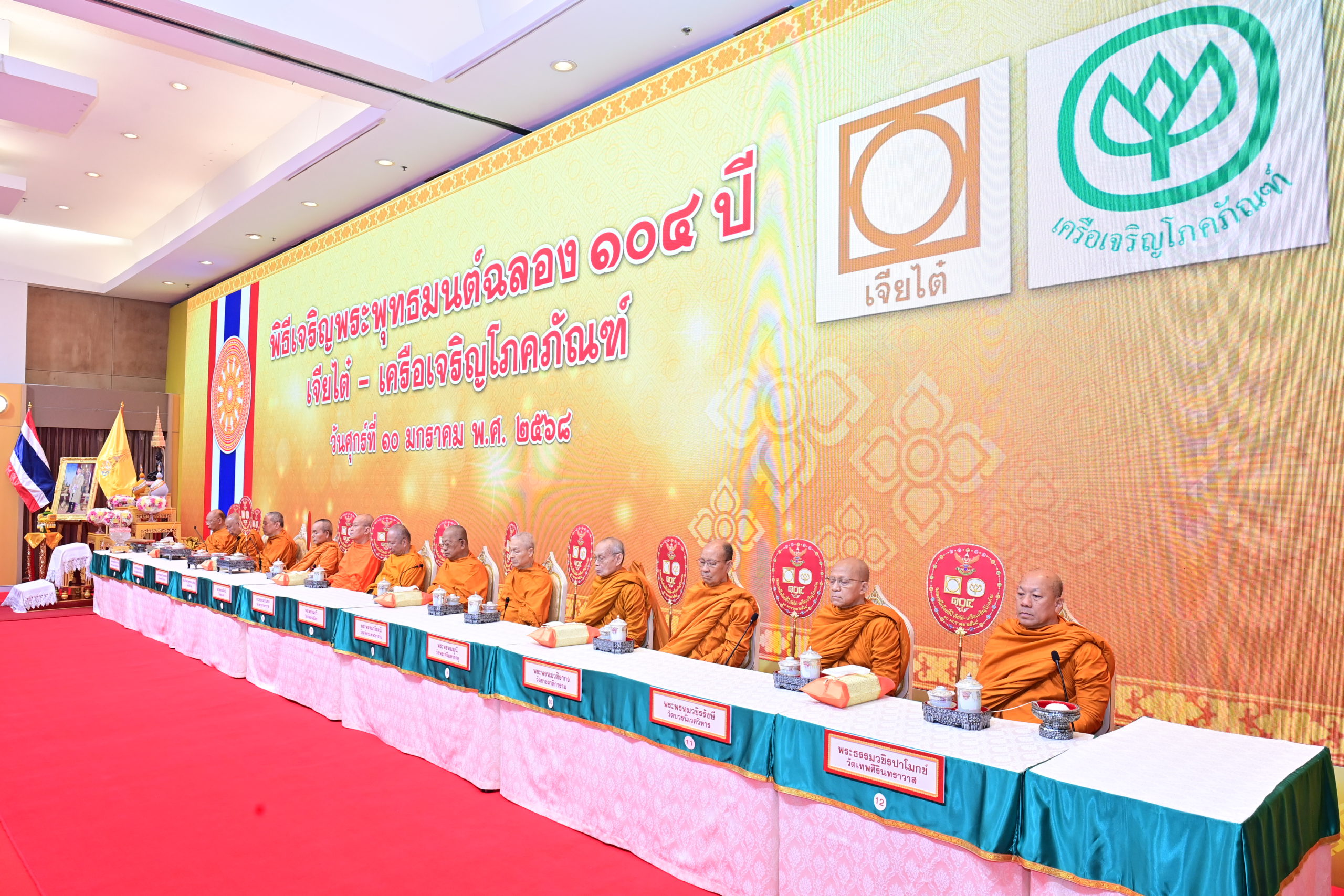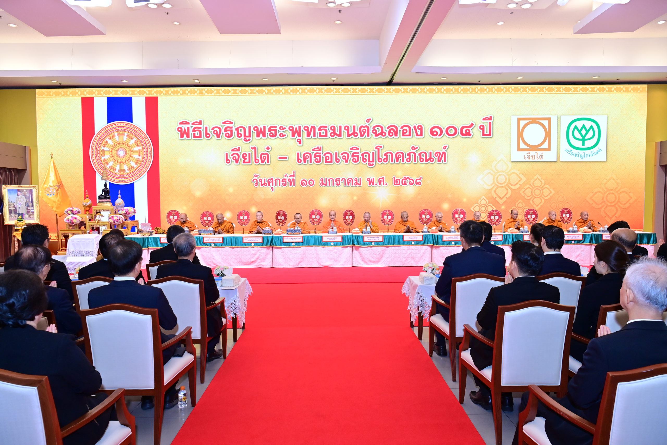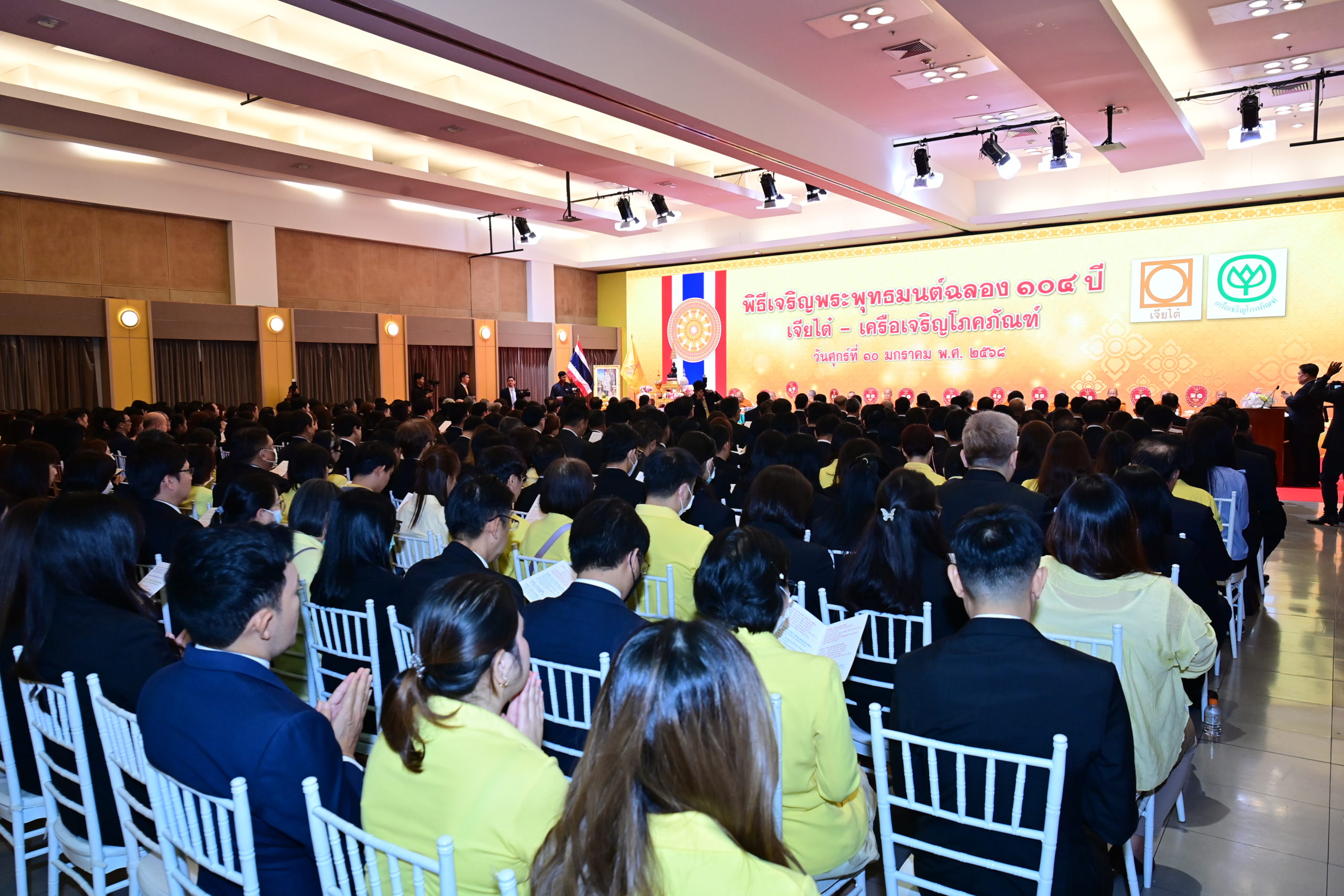 10 มกราคม 2568 ณ อาคารซี.พี. ทาวเวอร์ ถนนสีลม – เครือเจริญโภคภัณฑ์ เริ่มต้นปีใหม่ด้วยบรรยากาศอันอบอุ่น จัดพิธีทำบุญตักบาตรและเจริญพระพุทธมนต์ เนื่องในโอกาสครบรอบ 104 ปีของ บริษัทในกลุ่มเจียไต๋และเครือเจริญโภคภัณฑ์ งานนี้มีผู้นำองค์กรระดับสูง พร้อมพนักงานจากทุกกลุ่มธุรกิจมาร่วมกันอย่างคึกคัก โดยได้รับเกียรติจาก ท่านประธานกรรมการสุภกิต เจียรวนนท์ พร้อมด้วย คุณมาริษา เจียรวนนท์ และคุณศุภชัย เจียรวนนท์ ประธานคณะผู้บริหาร พร้อมด้วย คุณบุษดี เจียรวนนท์ ร่วมด้วยคณะผู้บริหารระดับสูง อาทิ คุณประเสริฐ พุ่งกุมาร ดร.อาชว์ เตาลานนท์ คุณธนากร เสรีบุรี คุณสุนทร อรุณานนท์ชัย คุณประสิทธิ์ บุญดวงประเสริฐ คุณธนิศร์ เจียรวนนท์ ดร.สารสิน วีระผล คุณวิบูลย์ คูสกุล คุณบุญชัย โอภาสเอี่ยมลิขิต คุณนพดล เจียรวนนท์ คุณวิเชาวน์ รักพงษ์ไพโรจน์ คุณประสิทธิ์ บุญดวงประเสริฐ คุณสุเมธ ภิญโญสนิท คุณอรุณี วัชรานานันท์ คุณอํารุง สรรพสิทธิ์วงศ์ คุณวรวิทย์ เจนธนากุล คุณพิทยา เจียรวิสิฐกุล คุณปิยะวัฒน์ ฐิตะสัทธาวรกุล คุณยุทธศักดิ์ ภูมิสุรกุล คุณประสิทธิ์ ดํารงชิตานนท์ คุณสุเมธ ภิญโญสนิท ดร.ธีระพล ถนอมศักดิ์ยุทธ คุณมนัสส์ มานะวุฒิเวช คุณชารัด เมห์โรทรา คุณสมศักดิ์ เลิศชัย คุณกีรติ ศตะสุข คุณธรินทร์ ธนียวัน และผู้บริหารจากกลุ่มธุรกิจในเครืออีกมากมาย บรรยากาศภายในงานอบอวลไปด้วยความสามัคคีและความมุ่งมั่น ร่วมกันตั้งปณิธานเพื่อสร้างความเจริญก้าวหน้าสู่ปีที่สดใสยิ่งขึ้นของเครือเจริญโภคภัณฑ์