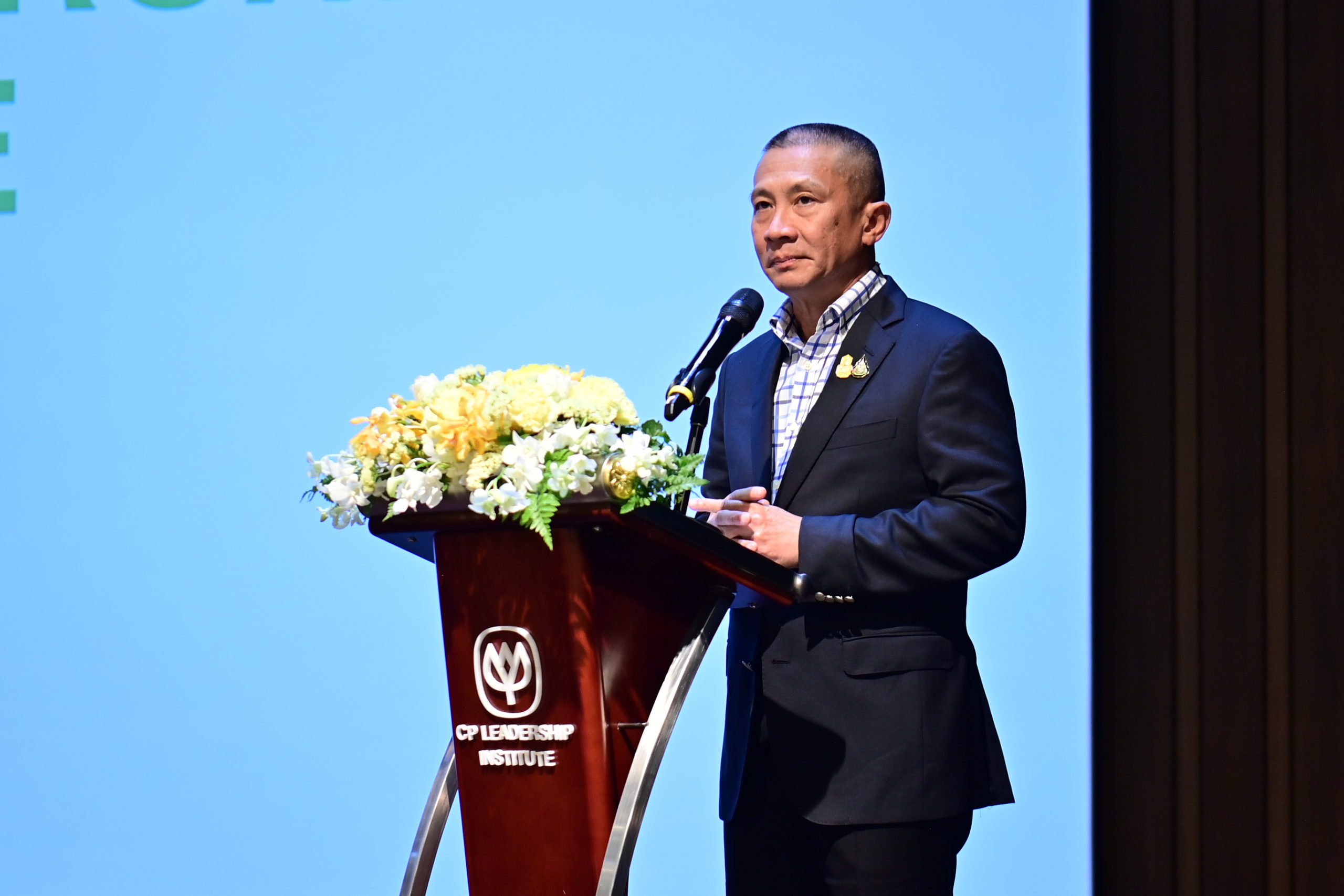 ด้านคุณศุภชัย เจียรวนนท์ ซีอีโอ เครือซีพี นำเสนอประสบการณ์ด้านการดำเนินธุรกิจที่ยั่งยืน ในหัวข้อ เครือซีพีกับเส้นทางสู่ความยั่งยืน โดยระบุว่าความเปลี่ยนแปลงของโลกที่กำลังเกิดขึ้นอยู่ในปัจจุบันถือเป็นความท้าทายใหม่ที่ทุกคนต่างต้องเผชิญไม่ว่าจะเป็นเครือซีพีหรือใคร ๆ ความท้าทายดังกล่าวมี 6 ประการ 1.ความเหลื่อมล้ำ เป็นประเด็นสำคัญที่ทุกคนบนเวทีโลกอย่างเช่น World Economic Forum ต่างถกกันถึงเรื่องนี้ 2.การปฏิรูปดิจิทัล ซึ่งไม่ใช่แค่ความเป็นอัจฉริยะในส่วนบุคคล แต่หมายถึงความเป็นอัจฉริยะของประเทศ บริษัทใดปรับตัวไม่ได้ก็จะต้องปิดตัวไปในที่สุด ยุคต่อไปอุตสาหกรรมต้องปรับตัวสู่ดิจิทัล 3.ความผันผวนทางภูมิอากาศ 4.ขั้วอำนาจทางเศรษฐกิจ 5.พฤติกรรมของผู้บริโภค 6.สุขภาพ ทั้งยังกล่าวถึง 4 ปัจจัยใหม่ที่เกิดขึ้นในโลกยุคปัจจุบันได้แก่ 1. ความรู้และจริยธรรม ต้องส่งเสริมให้เกิดห้องเรียนขนาดใหญ่ ที่ให้คนเรียนรู้ทั้งความรู้และคุณธรรมได้ นอกจากนี้ระบบการศึกษาที่มีคุณภาพ ทรัพยากรมนุษย์เป็นการลงทุนที่คุ้มค่าที่สุดของประเทศ 2. การเข้าถึงแหล่งทุนที่เป็นธรรม พบว่า 70%ของประชากรในประเทศเข้าไม่ถึงแหล่งทุนที่เป็นธรรม 3.สื่อสาร การเข้าถึงเทคโนโลยีด้านคอมพิวติ้งและอินเตอร์เน็ต วันนี้ระบบการศึกษาเราเป็นที่ 5 ของโลก ต้องให้เด็กทุกคนมีคอมพิวเตอร์ ใส่โปรแกรมที่เหมาะสม เปลี่ยนการศึกษาแบบเดิมคือทำการบ้านให้ได้ สอบให้เสร็จ…ต้องเปลี่ยนเป็น ตั้งคำถาม ค้นหาคำตอบ อภิปรายด้วยเหตุผล เด็กยุค2.0 กับยุคปัจจุบันต่างกัน ยุคใหม่ไม่กลัวปัญหา และ 4.ระบบประกันสังคม ถ้าระบบนี้เกิดจะทำให้เกิดความเสมอภาคช่วยลดความเหลื่อมล้ำได้ ทั้งนี้ซีอีโอ เครือซีพี ยังได้กล่าวถึงวิวัฒนาการทางเศรษฐกิจและการขับเคลื่อนประเทศไทยไปสู่ยุค 5.0 และนำเสนอ SI Model หรือ Sustainable Intelligence Transformation สังคมแห่งภูมิปัญญาที่ยั่งยืน เป็นกรอบแนวคิดในการขับเคลื่อนประเทศไทย