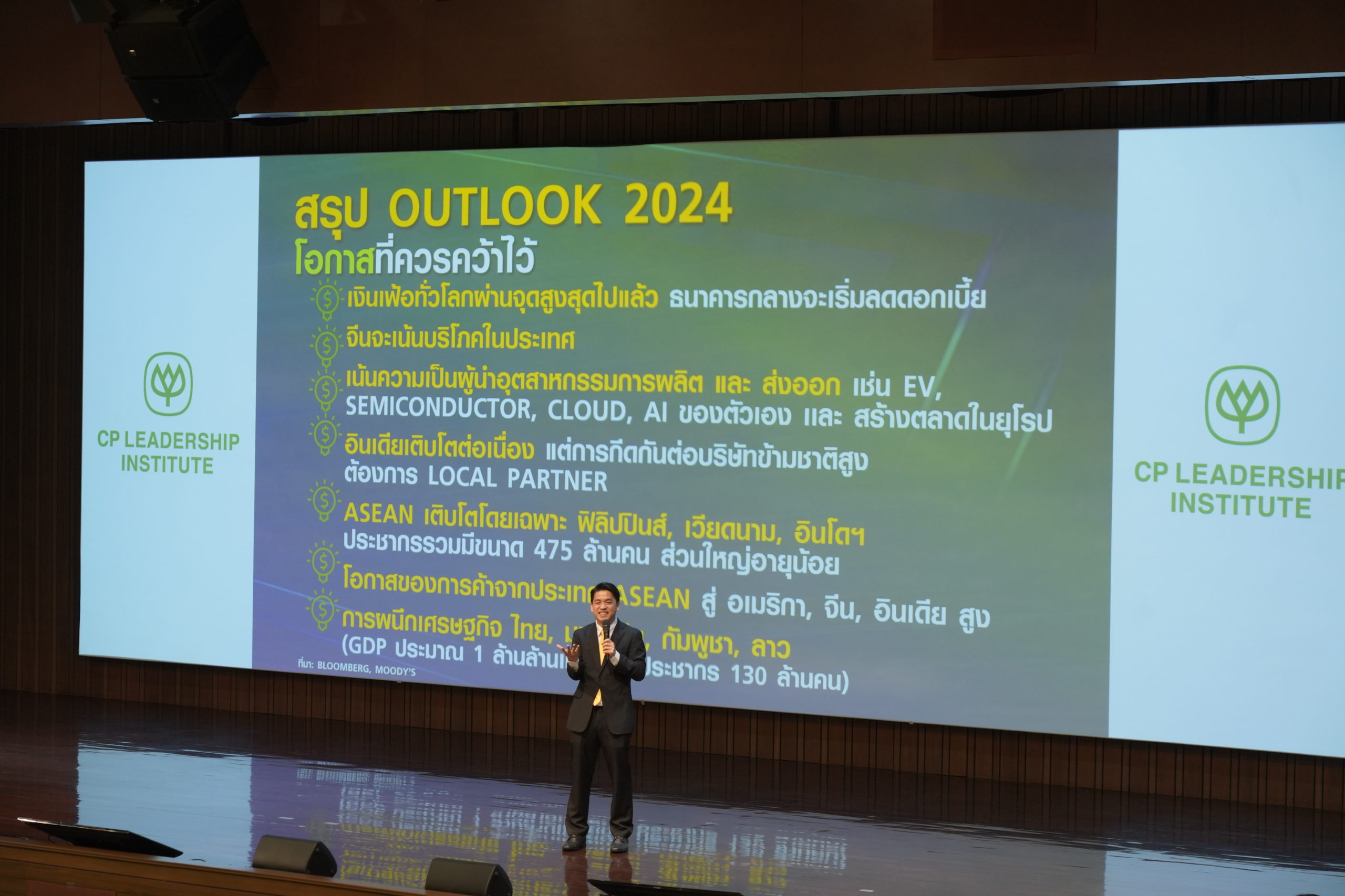 ด้าน ดร.ธีระพล ถนอมศักดิ์ยุทธ ประธานผู้บริหารยุทธศาสตร์ข้อมูลและการสื่อสาร และประธานผู้บริหาร ด้านความยั่งยืนองค์กรและการพัฒนากลยุทธ์ เครือเจริญโภคภัณฑ์ ได้แลกเปลี่ยนมุมมองและแนวคิดเพื่อพัฒนาไปสู่ยุค 5.0 ว่า หลังจากสถานการณ์โควิด โลกอยู่ในช่วงการปรับสมดุลใหม่ ซึ่งมีประเด็นความเสี่ยงที่ต้องจับตา อาทิ สงครามที่มีความยืดเยื้อในยุคโลกหลายขั้ว และการรวมประเทศเพื่อการเเข่งขัน ซึ่งหากวิเคราะห์ตามภูมิรัฐศาสตร์ จะเห็นว่าทิศทางในปี 2024 มีเหตุการณ์ทางการเมืองสำคัญหลายเหตุการณ์ เช่น ความขัดแย้งที่ส่งผลกระทบในด้านต่าง ๆ ทั้งด้านเศรษฐกิจ สังคม ส่วนด้านเทคโนโลยี เป็นยุคที่เทคโนโลยีทำให้เกิดการเปลี่ยนแปลง แบ่งคนเป็น 2 ประเภท คือคนใช้เทคโนโลยี กับคนถูกเทคโนโลยีเเทนที่ ดังนั้นภาคธุรกิจจึงต้องมีการปรับตัวทุกด้าน ตั้งเเต่พลังงานสะอาด เทคโนโลยีอัจฉริยะ และความยั่งยืน นอกจากนี้ ยังต้องตระหนักถึงปัญหาอาชญากรรมทางไซเบอร์ และสุดท้ายการพัฒนาคน ดังนั้นการทำกิจกรรมเวิร์กชอประดมความคิดร่วมกันของคณะผู้บริหารระดับสูงกองบัญชาการกองทัพไทยครั้งนี้ จะนำมาซึ่งความเห็นใหม่ ๆ และแผนการพัฒนาอย่างเป็นรูปธรรม