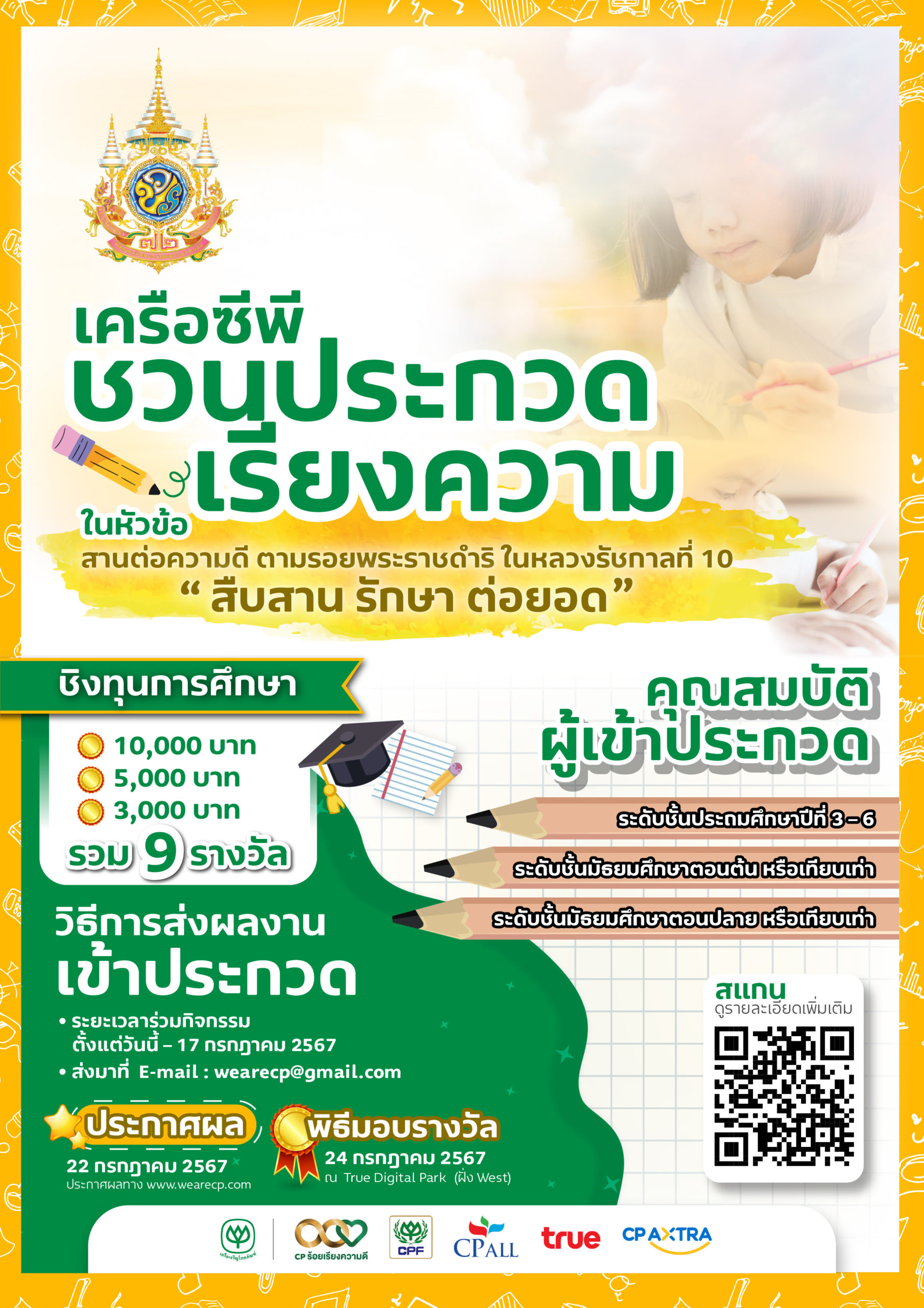 4.5 ส่งไฟล์เรียงความมาที่อีเมล [email protected] ภายในวันที่ 17 กรกฎาคม 2567