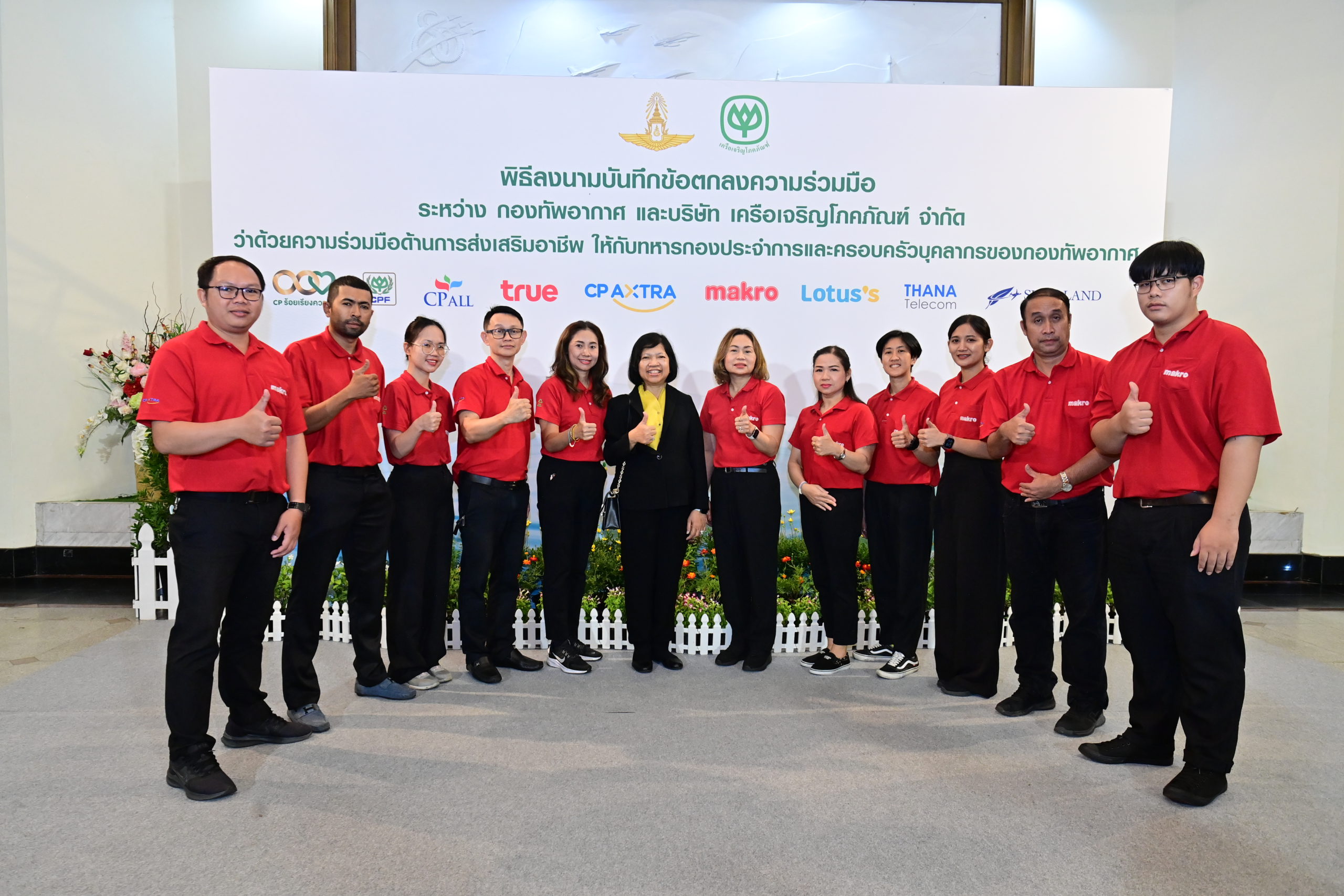 12 กันยายน 2567 – เครือเจริญโภคภัณฑ์ (ซีพี) ร่วมมือกับกองทัพอากาศ สร้างโอกาสทางอาชีพและการศึกษาให้แก่ทหารกองประจำการและครอบครัว ภายใต้บันทึกข้อตกลงความร่วมมือ (MOU) ที่ลงนามโดย พลอากาศเอก พันธ์ภักดี พัฒนกุล ผู้บัญชาการทหารอากาศ และ คุณสุภกิต เจียรวนนท์ ประธานกรรมการบริษัท เครือเจริญโภคภัณฑ์ จำกัด เพื่อส่งเสริมอาชีพให้กับทหารกองประจำการและครอบครัวบุคลากรของกองทัพอากาศ โดยนำร่องโครงการจัดหางานให้แก่ทหารกองประจำการที่ปลดประจำการและครอบครัวของข้าราชการกองทัพอากาศ รองรับตำแหน่งอาชีพได้มากกว่า 12,000 อัตราทั่วประเทศ พร้อมให้ทุนการศึกษาฟรีตั้งแต่ระดับ ปวช. ปวส. และปริญญาตรี ที่สถาบันการจัดการปัญญาภิวัฒน์ (PIM) วิทยาลัยเทคโนโลยีปัญญาภิวัฒน์ (PAT) มากกว่า 2,000 ทุนต่อปีโดยเน้นการพัฒนาทักษะให้สอดคล้องกับตลาดแรงงานยุค 5.0 ทั้งนี้ภายในงานมีนายทหารชั้นผู้ใหญ่กองทัพอากาศ และผู้บริหารเครือเจริญโภคภัณฑ์และบริษัทในเครือฯ อาทิ คุณประสิทธิ์ บุญดวงประเสริฐ ประธานคณะผู้บริหารซีพีเอฟ คุณเสาวลักษณ์ ถิฐาพันธ์ ประธานคณะผู้บริหาร กลุ่มธุรกิจค้าส่งแม็คโคร ผู้บริหาร บริษัท ซีพี แอ็กซ์ ตร้า จำกัด (มหาชน) คุณประสิทธิ์ ดำรงชิตานนท์ รองประธานกรรมการ ธุรกิจพืชครบวงจร ข้าว ขนส่งและบริการ เครือเจริญโภคภัณฑ์ (CPCRT) คุณพิมลรัตน์ รีพัฒนาวิจิตรกุล ประธานผู้บริหารทรัพยากรบุคคล เครือเจริญโภคภัณฑ์ ดร.ธีระพล ถนอมศักดิ์ยุทธ ประธานคณะผู้บริหาร ด้านความยั่งยืนองค์กรและการพัฒนากลยุทธ์ เครือเจริญโภคภัณฑ์ คุณมนัสส์ มานะวุฒิเวช ประธานคณะผู้บริหาร บริษัท ทรู คอร์ปอเรชั่น จำกัด (มหาชน) คุณฐิติ ลุจินตานนท์ ประธานคณะผู้บริหาร กลุ่มธุรกิจการค้าวัตถุดิบอาหารสัตว์ และ ประธานผู้บริหารฝ่ายปฎิบัติการ ธุรกิจข้าว คุณวิชัย จันทร์จริยากุล กรรมการผู้จัดการ (ร่วม) บมจ.ซีพี ออลล์ คุณวิเชียร จึงวิโรจน์ กรรมการผู้จัดการ (ร่วม) บมจ. ซีพี ออลล์ เข้าร่วมในพิธีลงนาม ณ ห้องชัยพฤกษ์ หอประชุมกองทัพอากาศ (อาคารทองใหญ่) ถนนพหลโยธิน กรุงเทพมหานคร